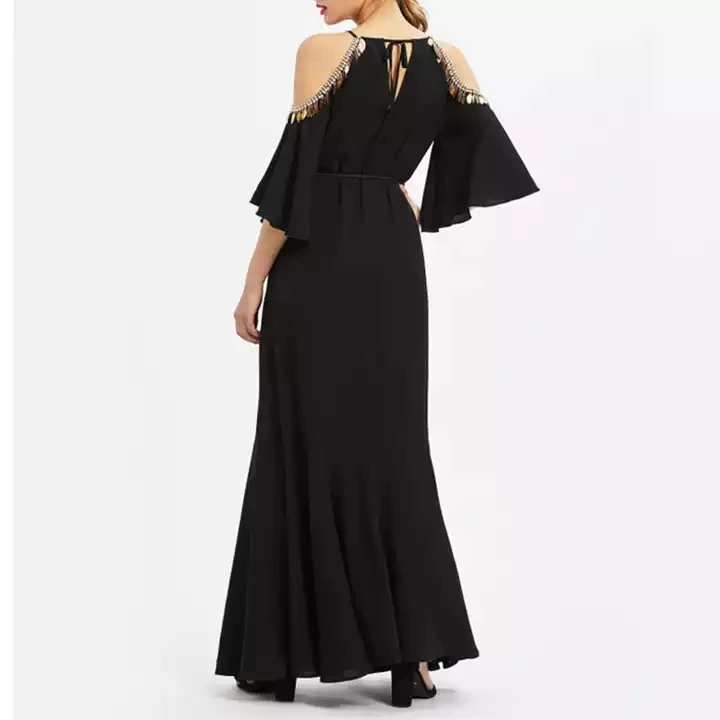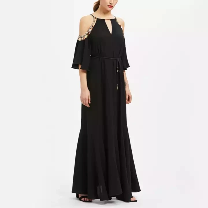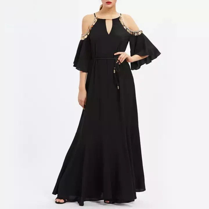 Autumn 2026 Designer Sexy Crystal Chiffon Boho Vestido Maxi Elegant Women Dress Hollow Out off the Shoulder Maxi Dress Women