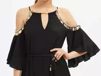 ZYHT 21938 Black Velvet Mini Dress Square Neck Long Puff Sleeves with Pearl Trim & Crystal Dess Flared Scalloped Hem Dresses