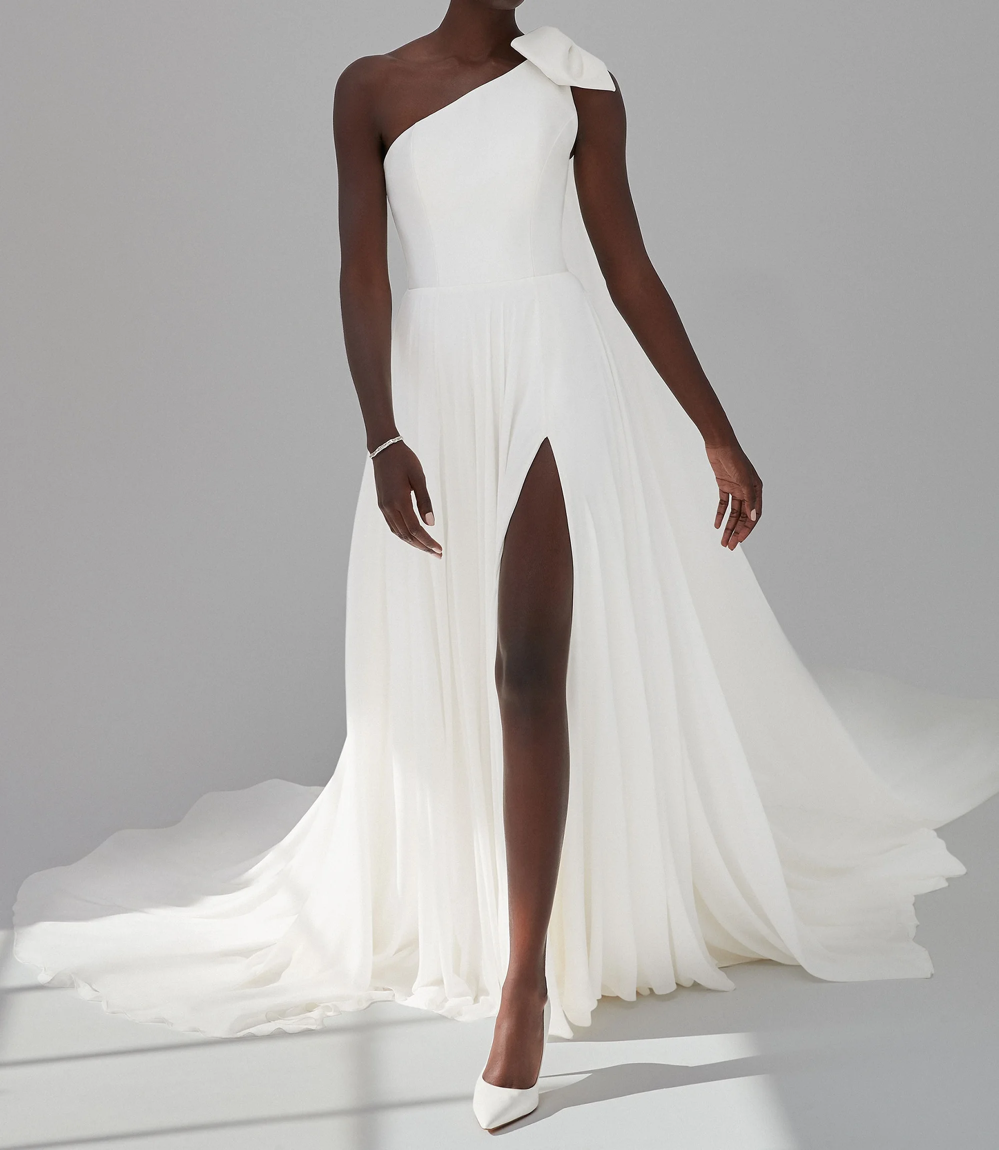 ZYHT 73903 Gemstone Crystal 3D Flower Decoration Ruched One Shoulder High Slit Long Sleeve Maxi Simple Elegant Evening Dress