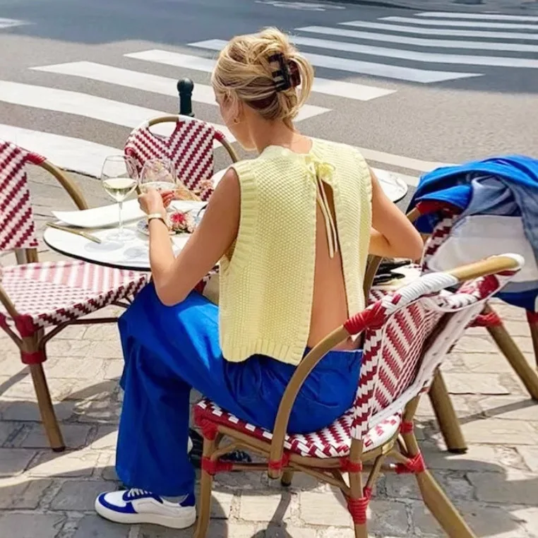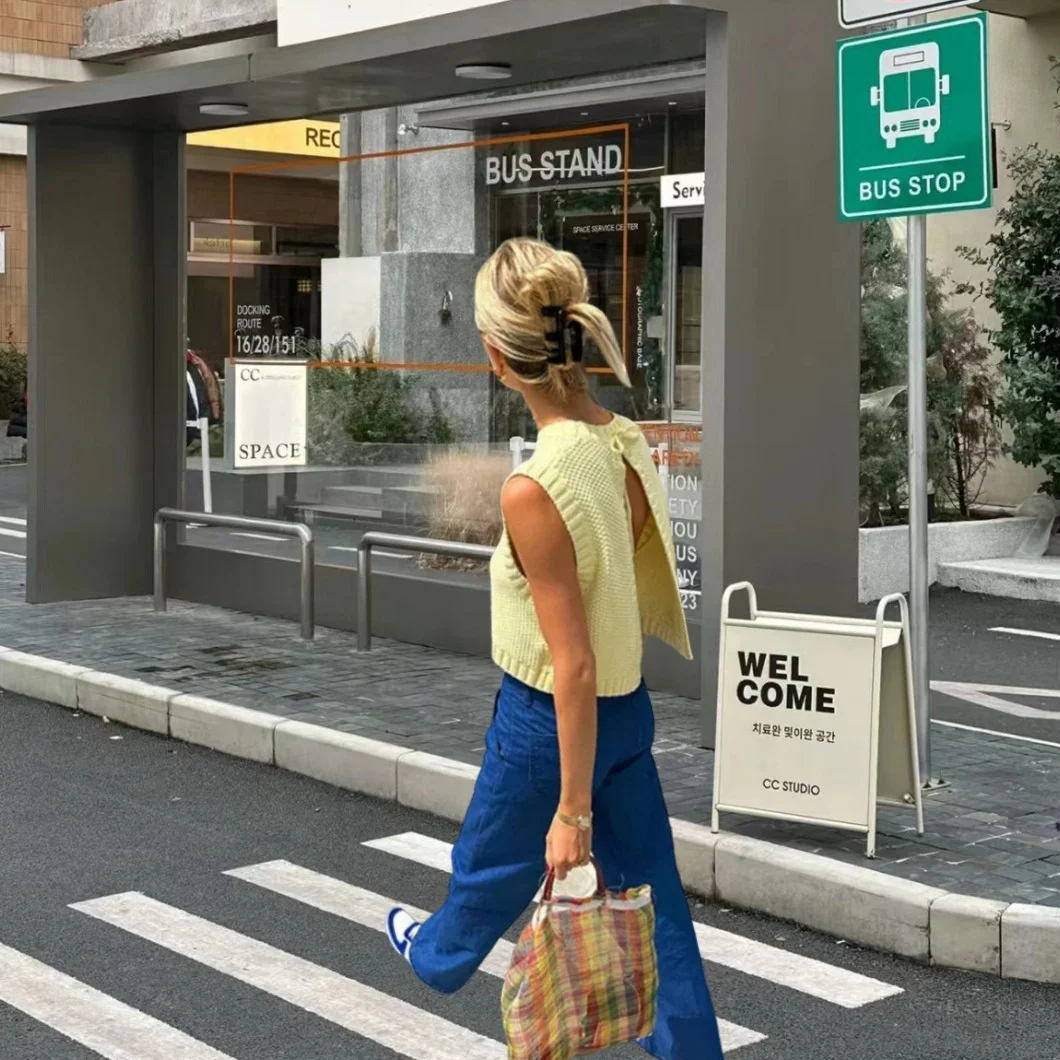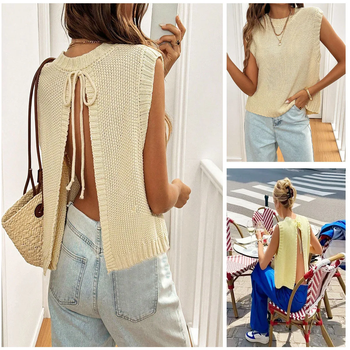 Women's Vintage Ice Silk Knitted Vest Spring Summer Casual Cross-Border Fashion Solid Layered Sleeveless Top Apricot Thin