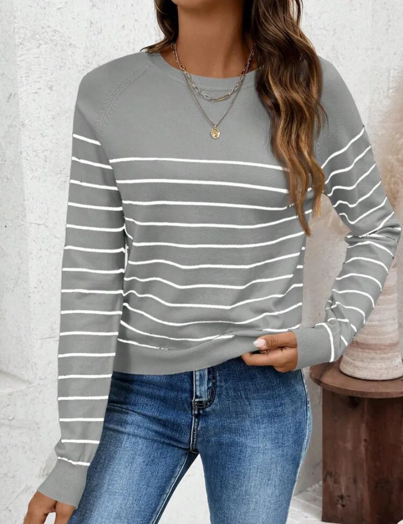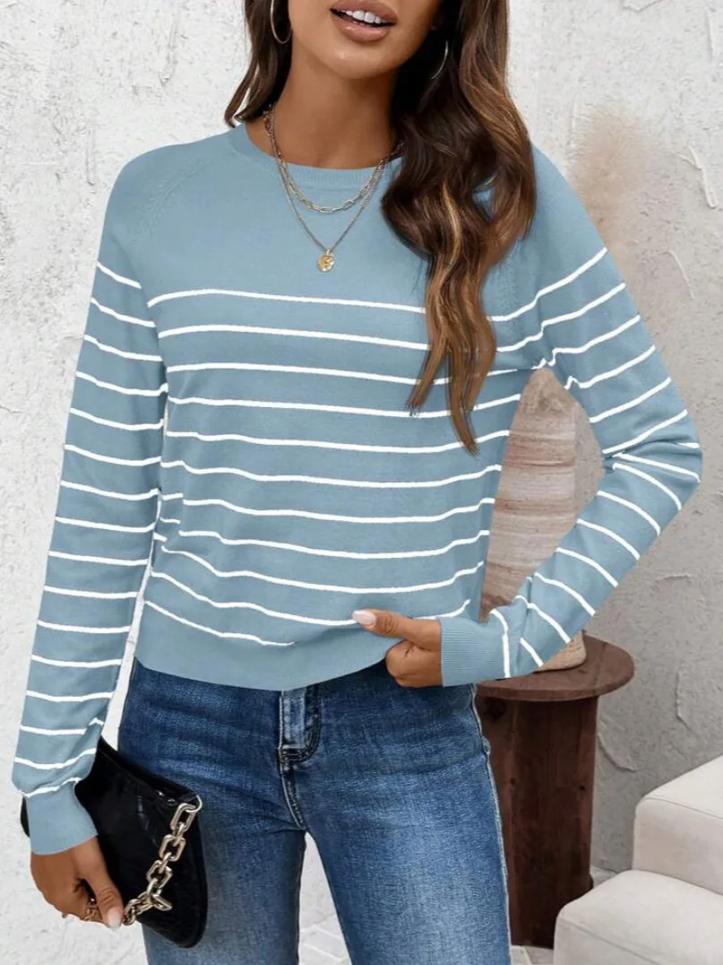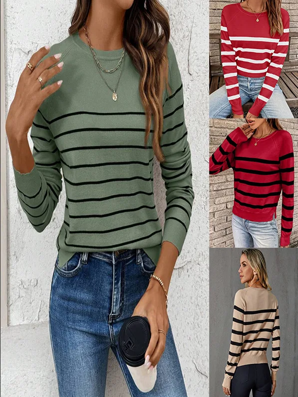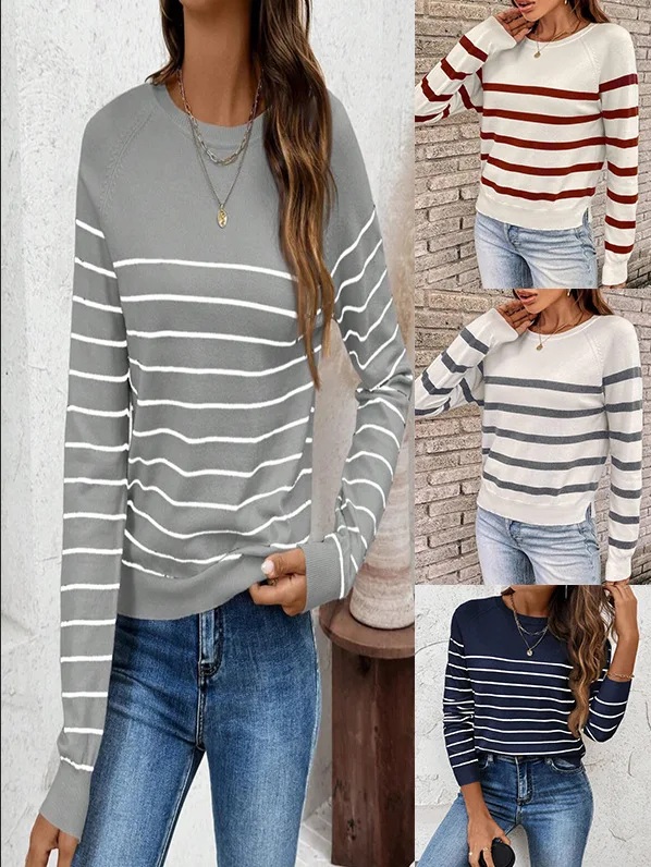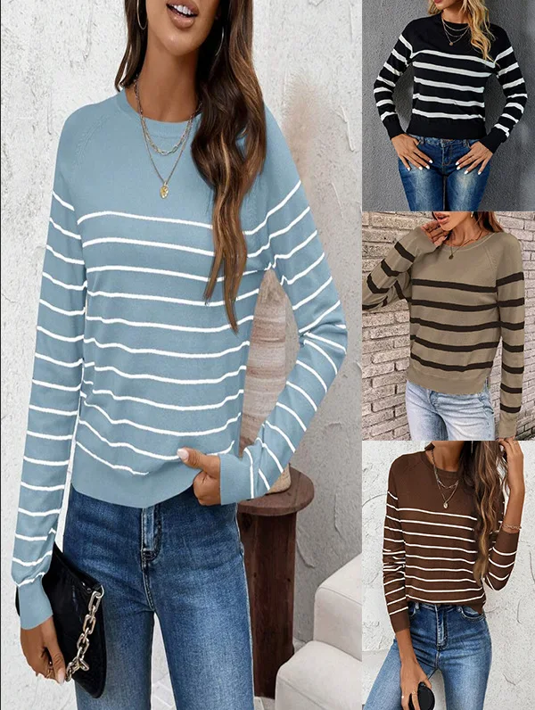 2025 Women's All-Season Pullover Top with Lined Striped Knitted Long Sleeves Viscose Material for Autumn Season with Front Logo