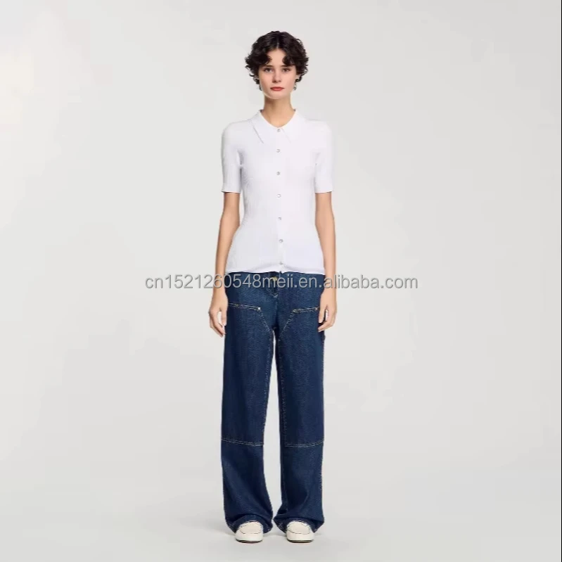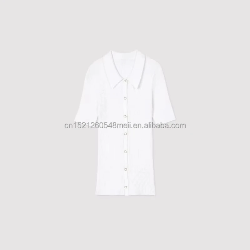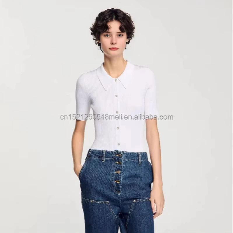 2025 Summer New Women's Classic Joker Knitted Fit Shirt Solid Color Casual Style Thin for Comfort