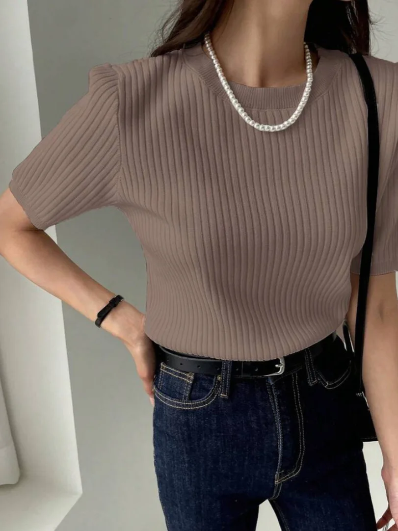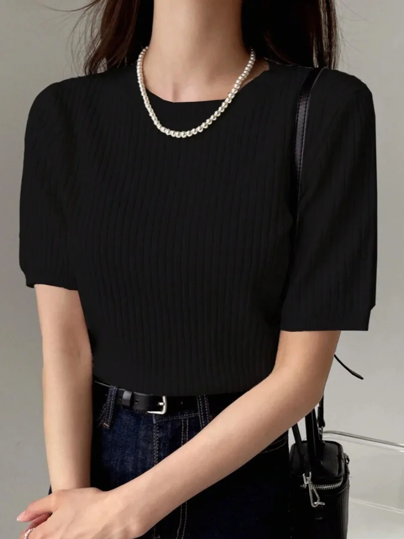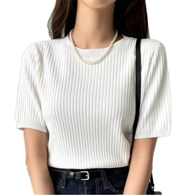 Women's Basic Short-Sleeved O-Neck T-Shirt Slim-Fit Knitwear All-Season Casual Top New for Spring/Summer Solid Pattern Thin