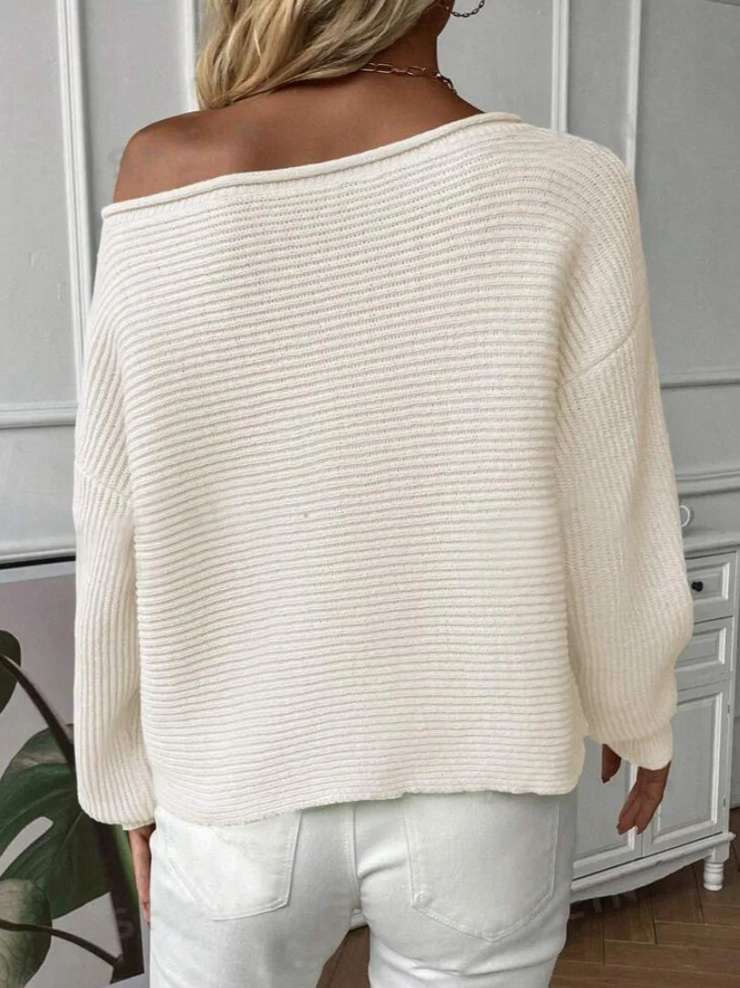 Women's Casual Boat Neck Solid Color Knitted Sweaters for Autumn Winter Front Logo Design