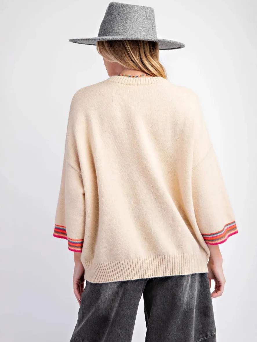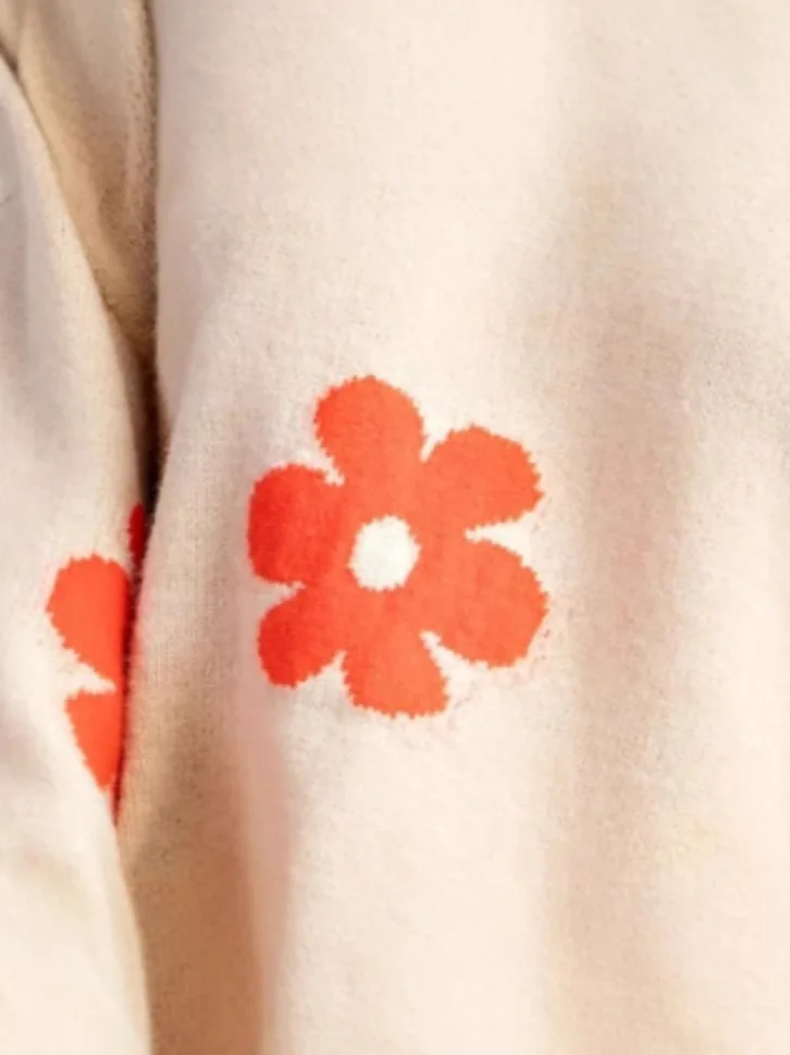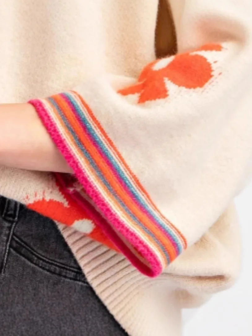 Autumn Women's Long Knitted Pullover New Spring Jacquard Floral Pattern Contrast Colors Stylish for Office Lady