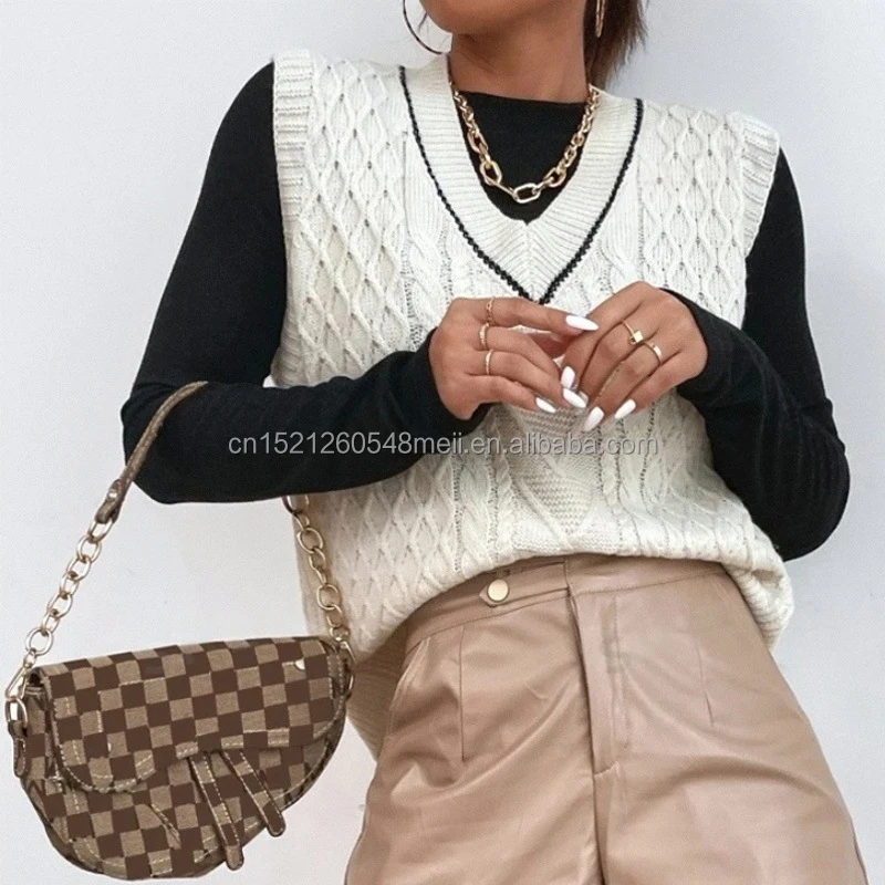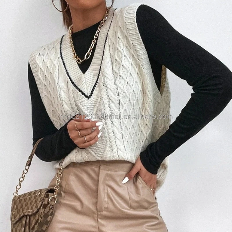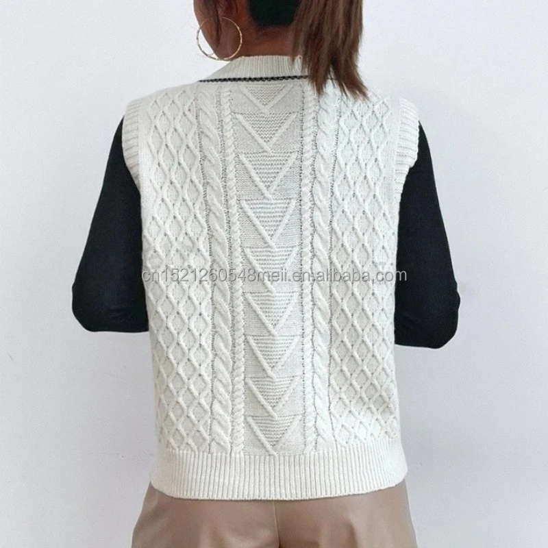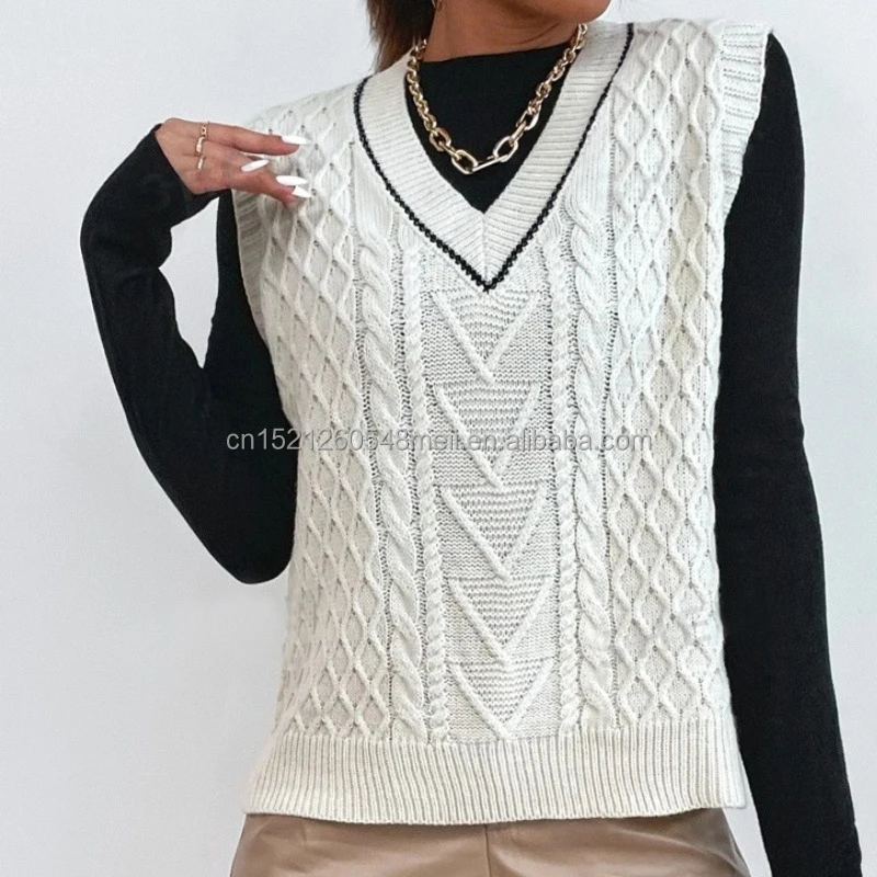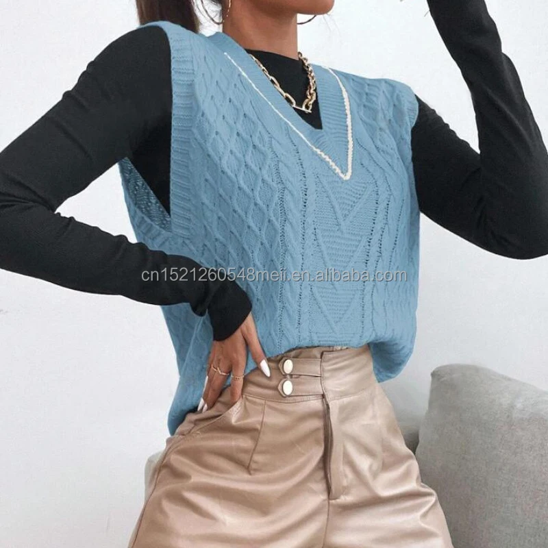 2025 New Fashion Sweater Vest Women's Knitted Casual Sweater Custom Women's Sweater Short Top Vest with V-Neck Sleeveless Design