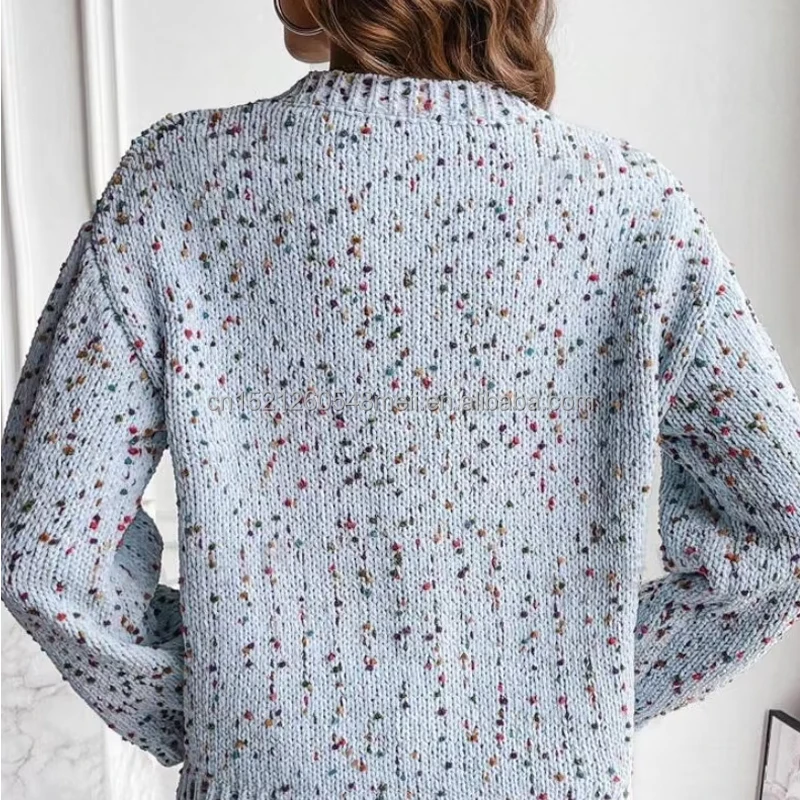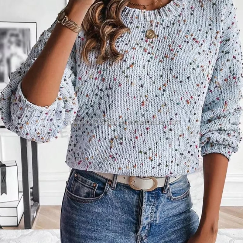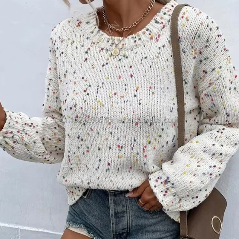 2025 Hot Sale Women's Korean Style Autumn Winter Knitted Pullover Dot Special Yarn Sweater with Front Logo