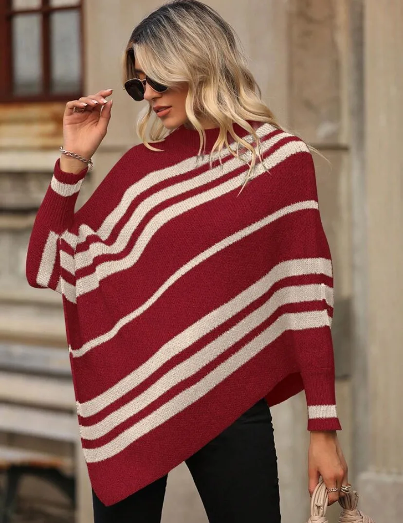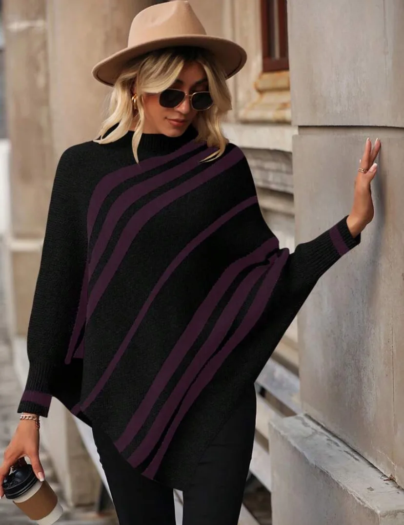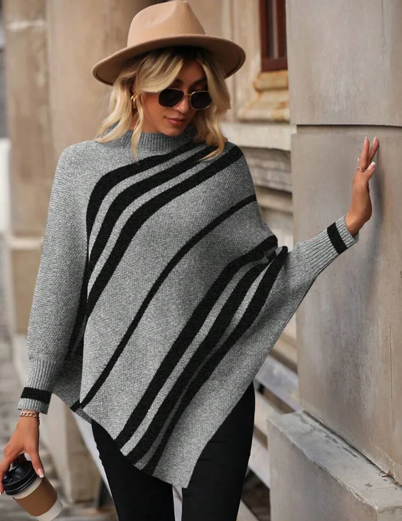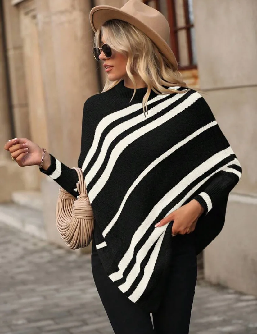Women's Ins Casual Puncho Long Breathable Knitted Striped Shawl Jacquard Embroidered Anti-Wrinkle Formal Sweater
