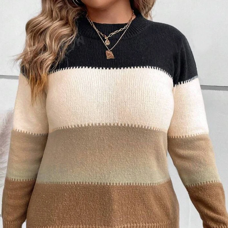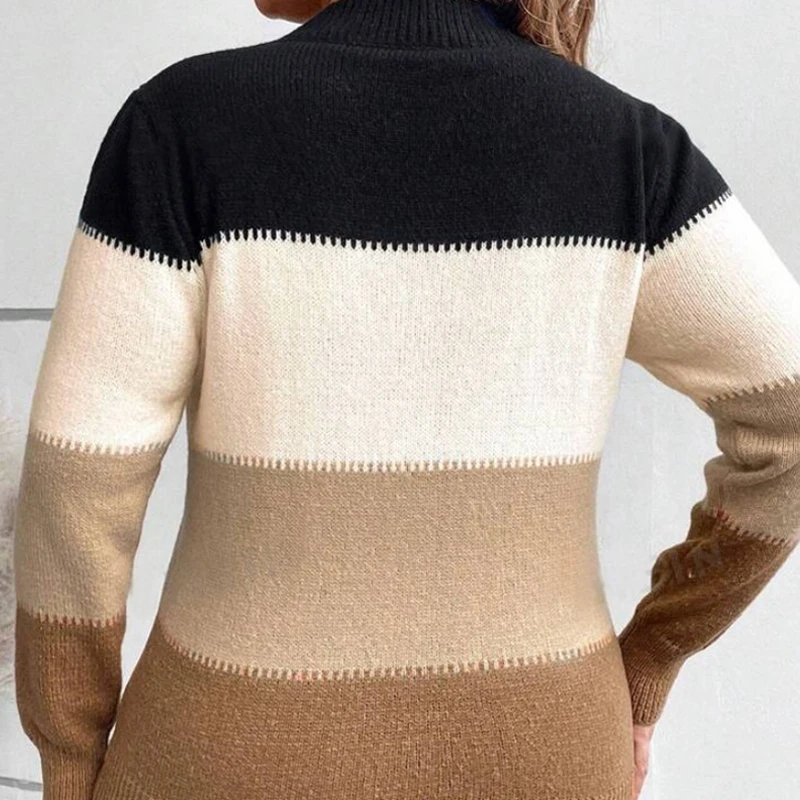 Factory Price Women's Long Sleeve Knitted Pullover Casual Cross-Border Sweater with Patchwork Pattern and Contrast Color