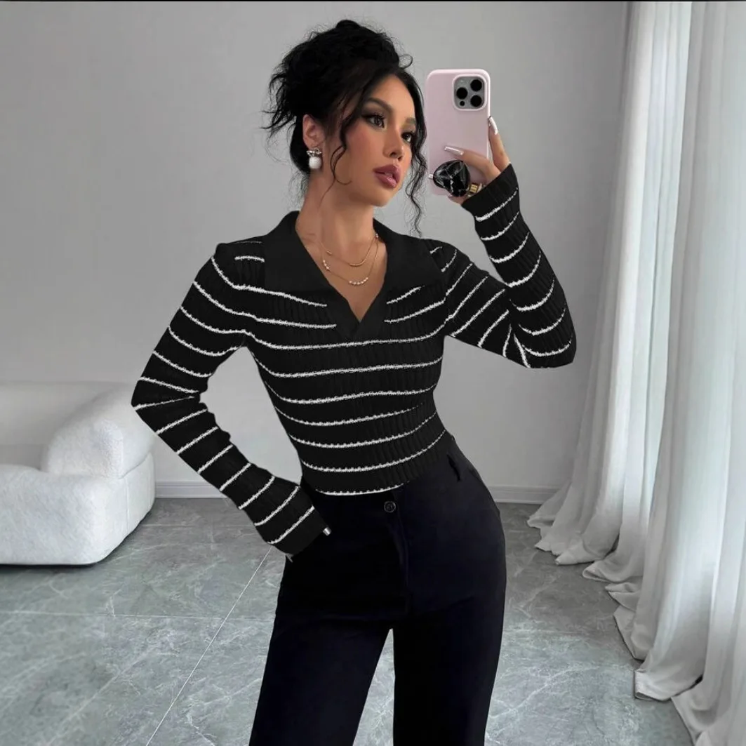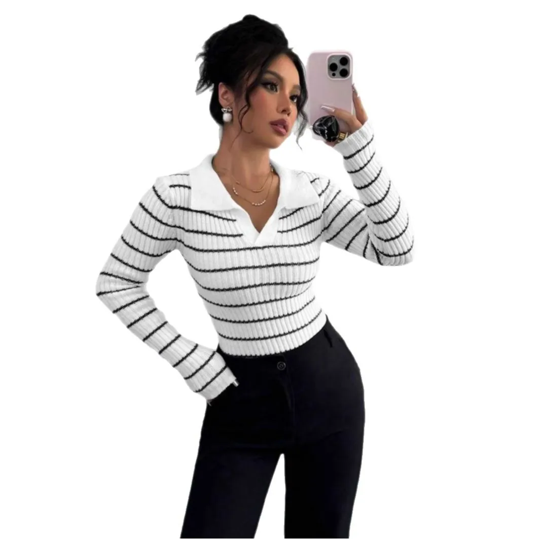 Wholesale Price Spicy Girl Striped Long Sleeve T-Shirt Fashion Style Women's Slim Fit Base Knitted Sweater for Winter