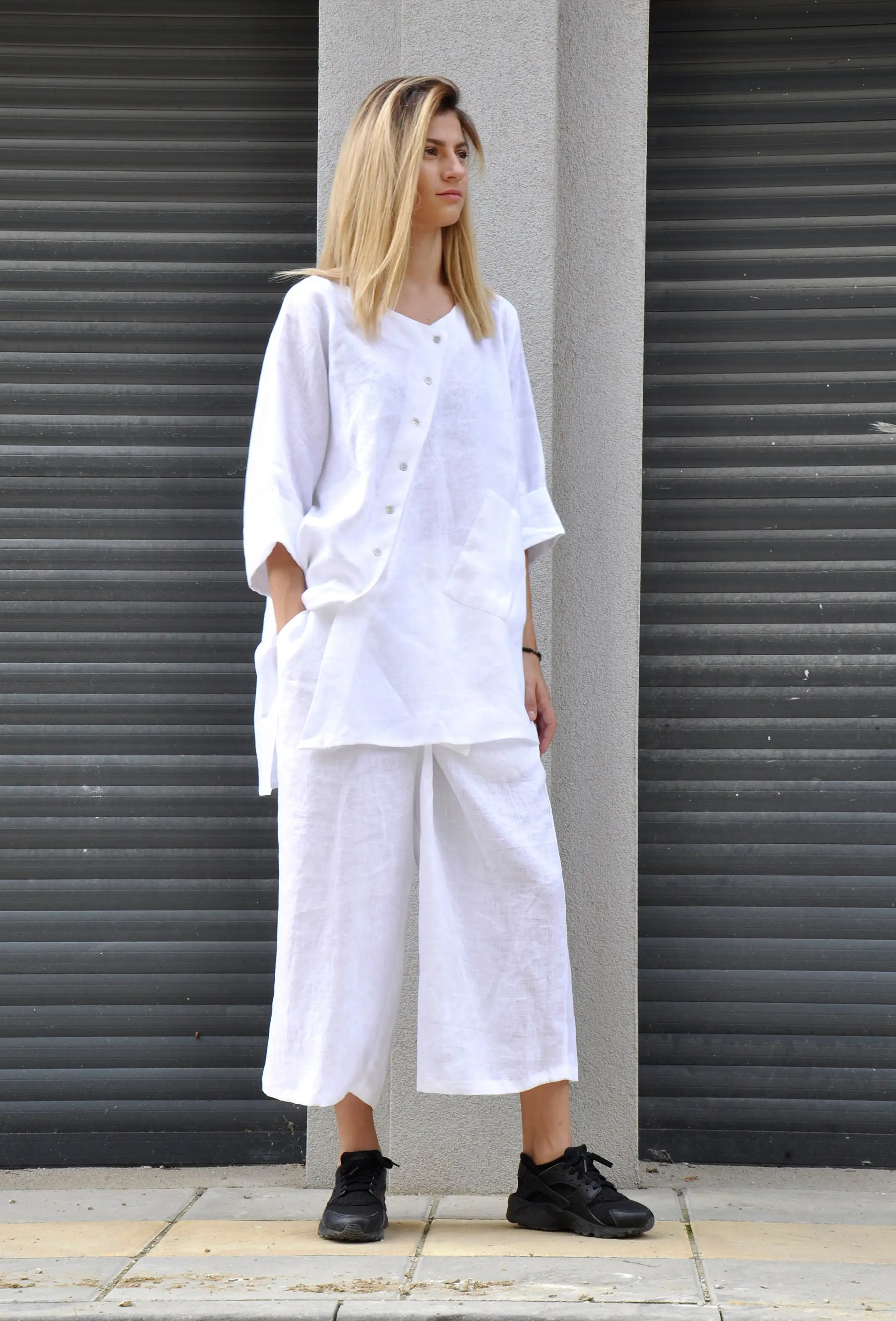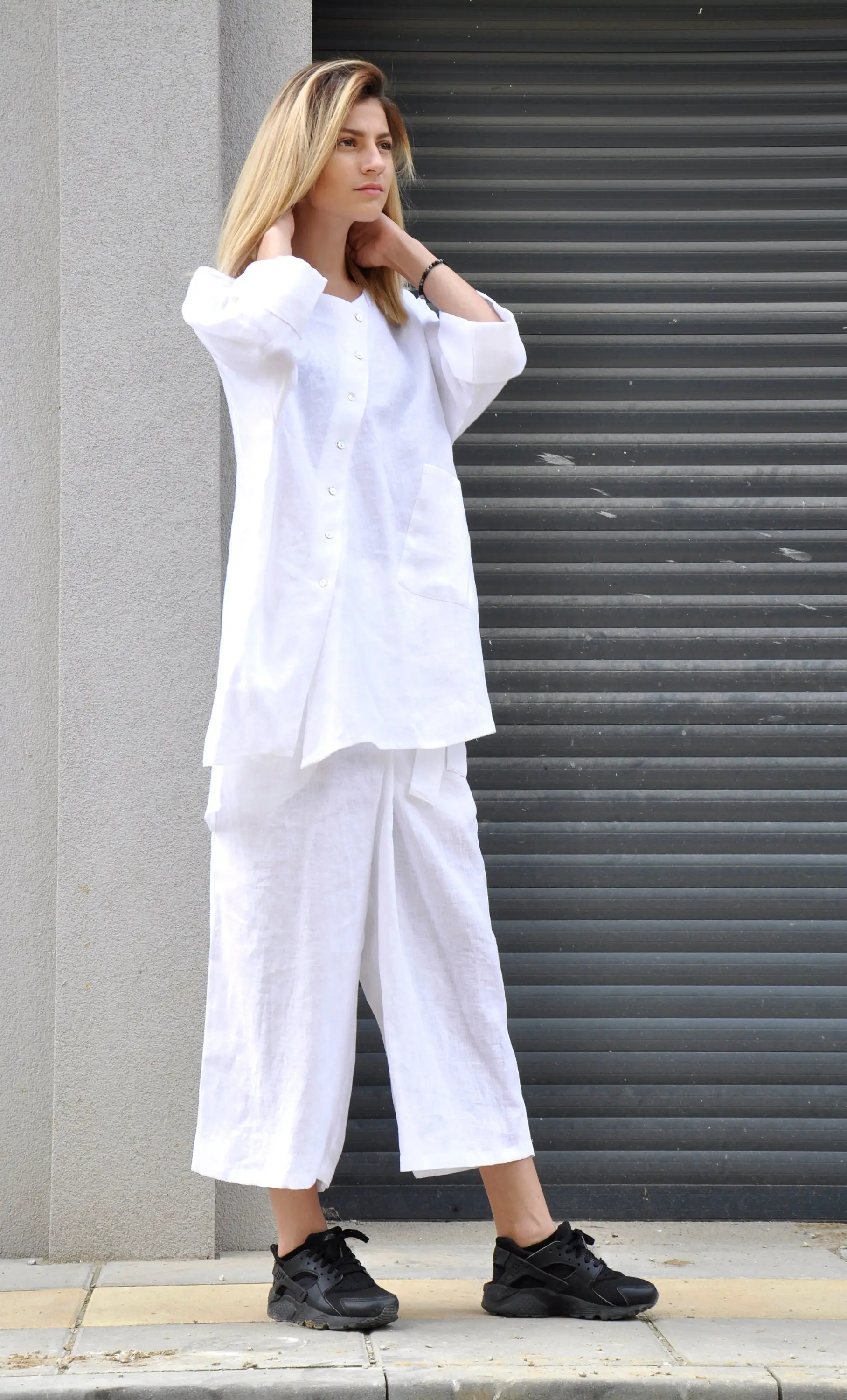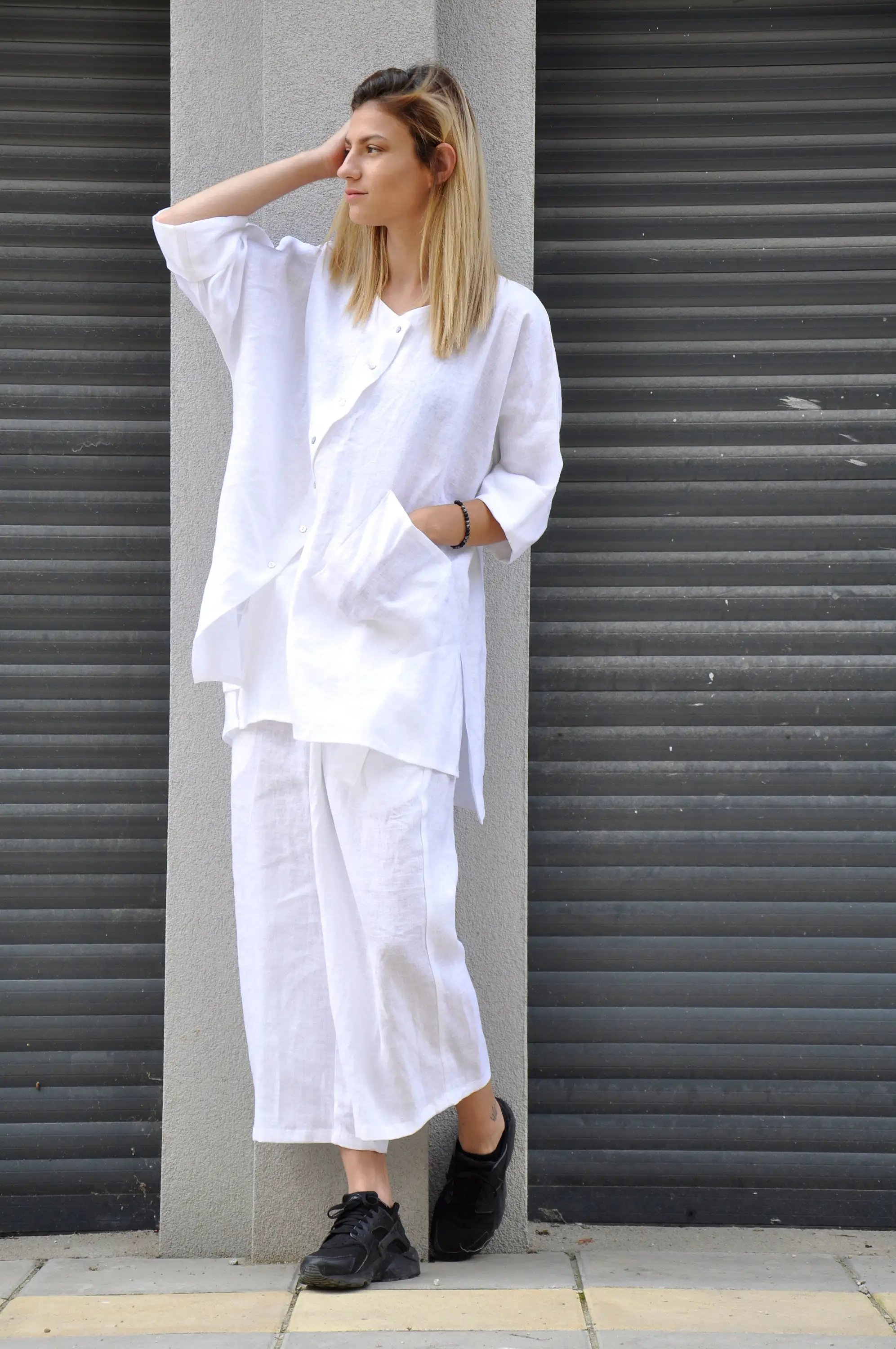 White Natural Linen Shirt Plus Size Tunic Clothing Linen Shirt for Women Linen Top Plus Size Clothing Loose Fitted Tunic Shirt