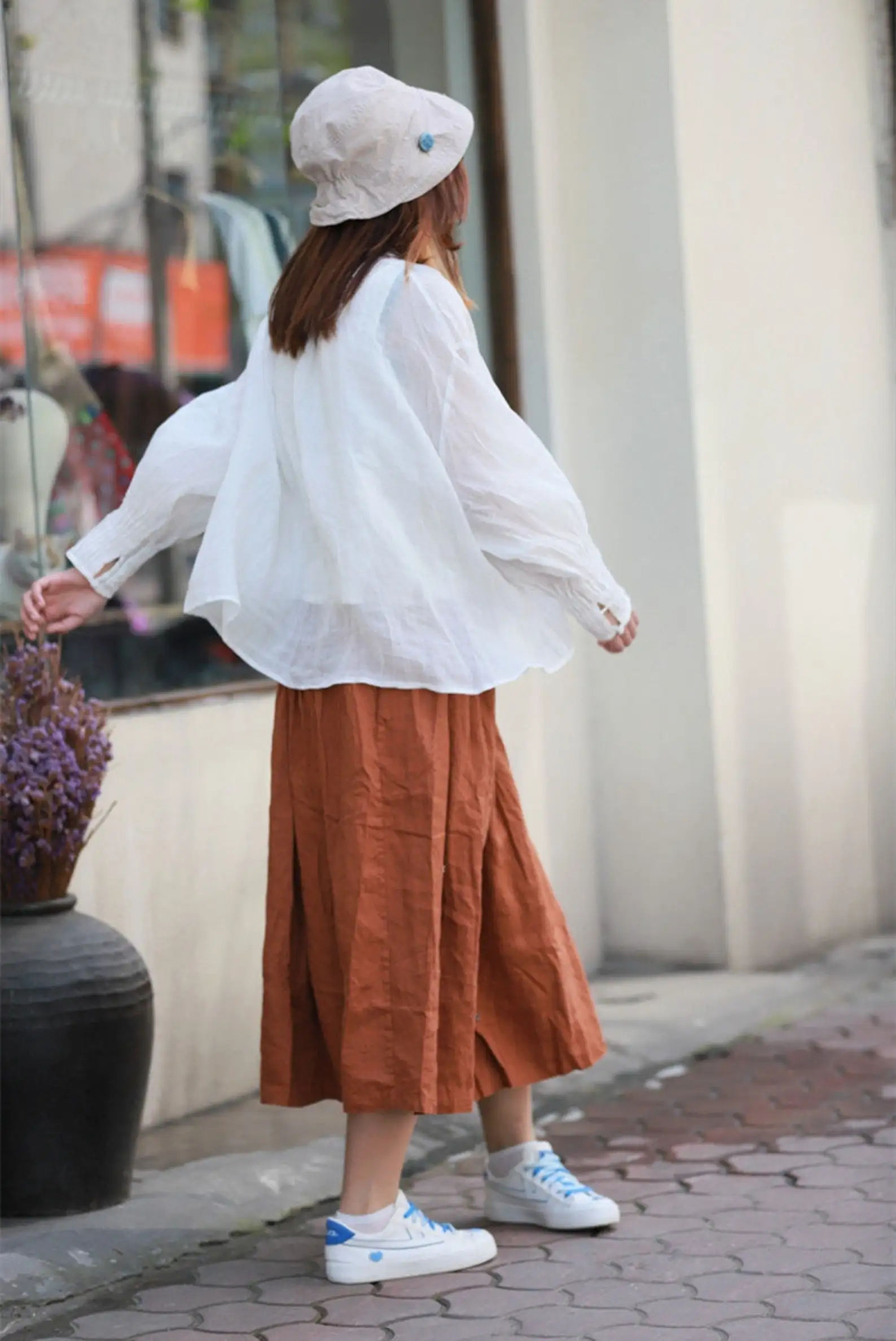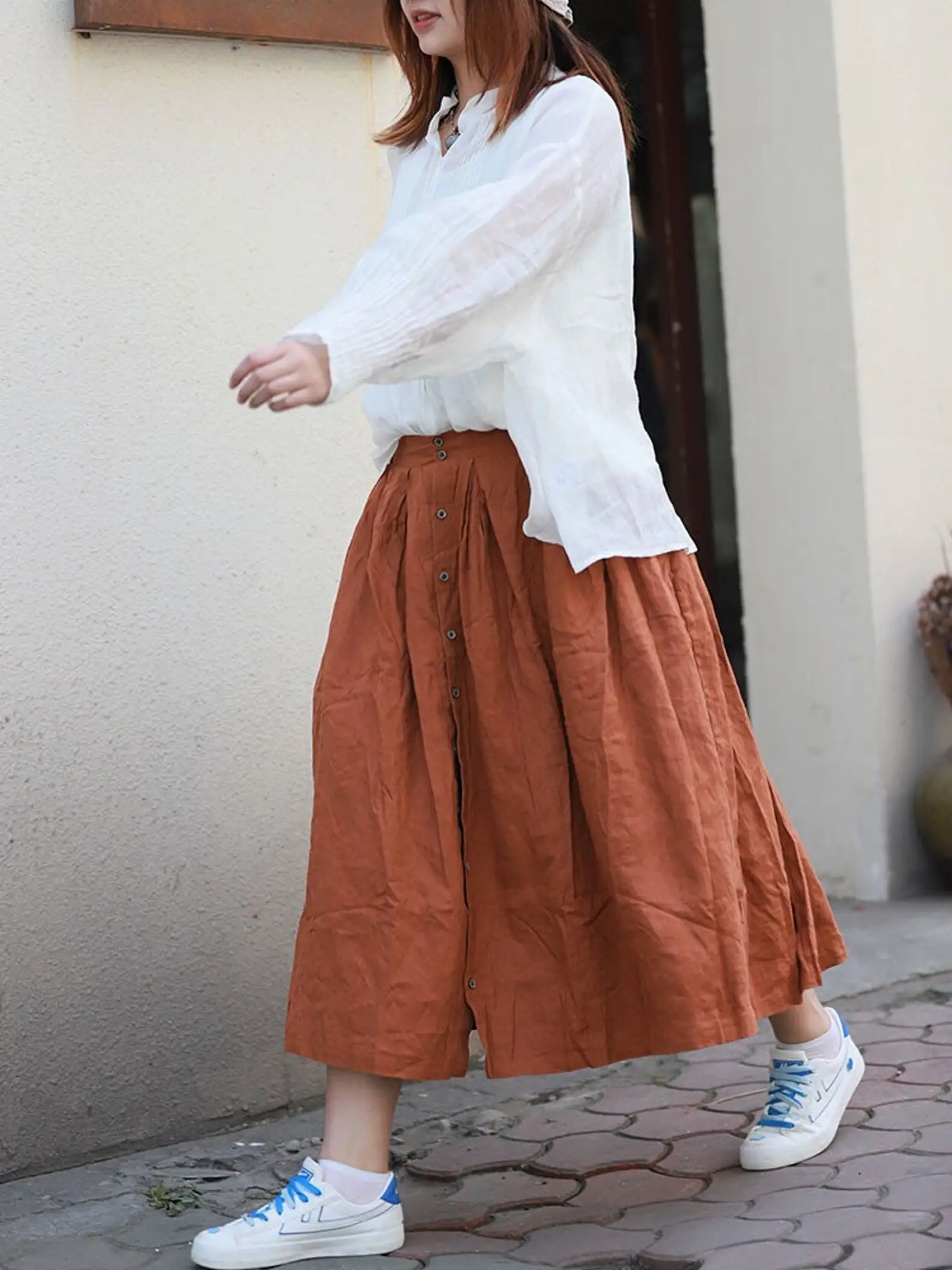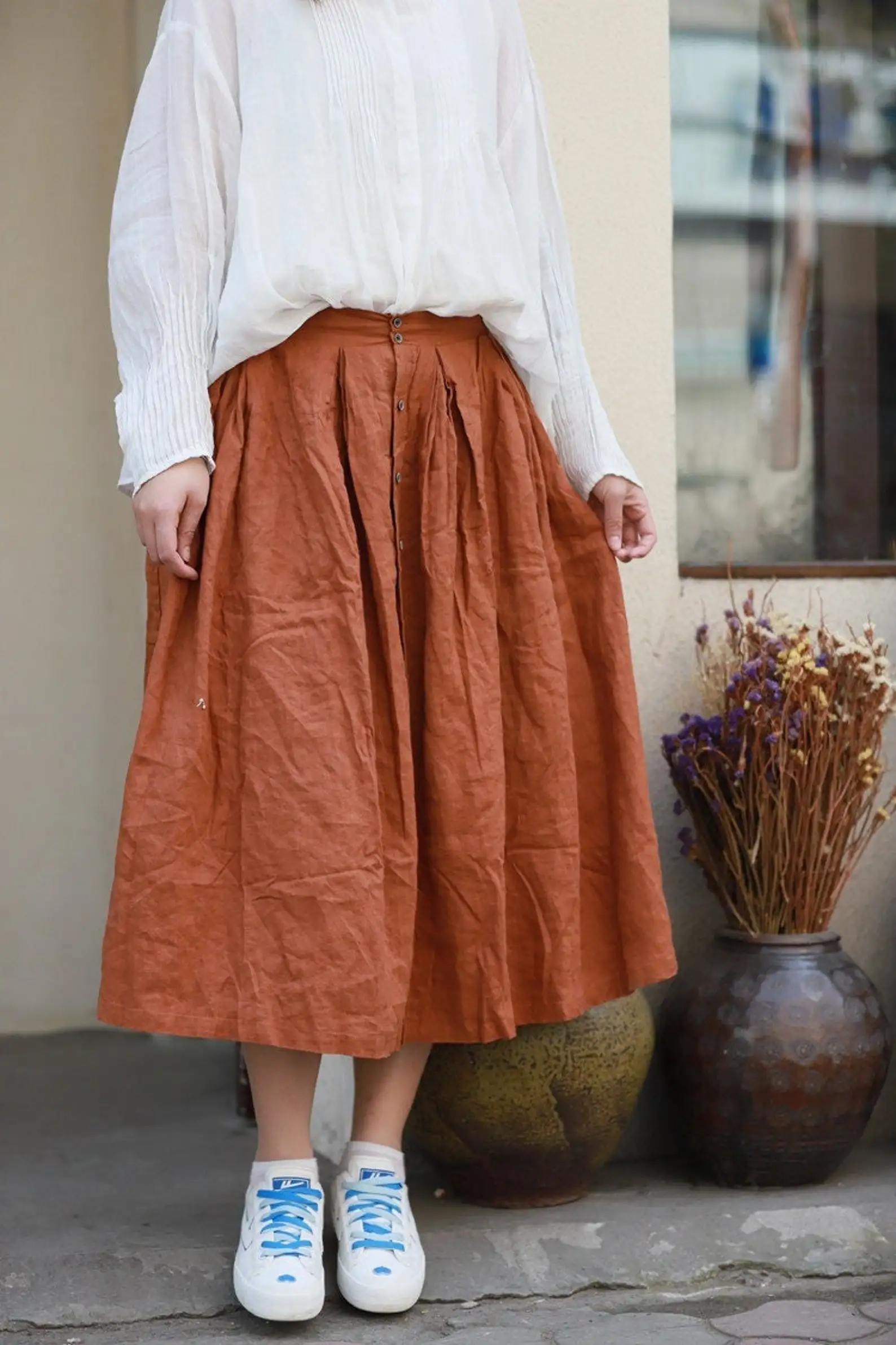 Women Linen Skirt Plus Size Summer Spring Vintage Casual A-line Maxi Skirts Linen Custom Loose Casual Elastic Available Big Size