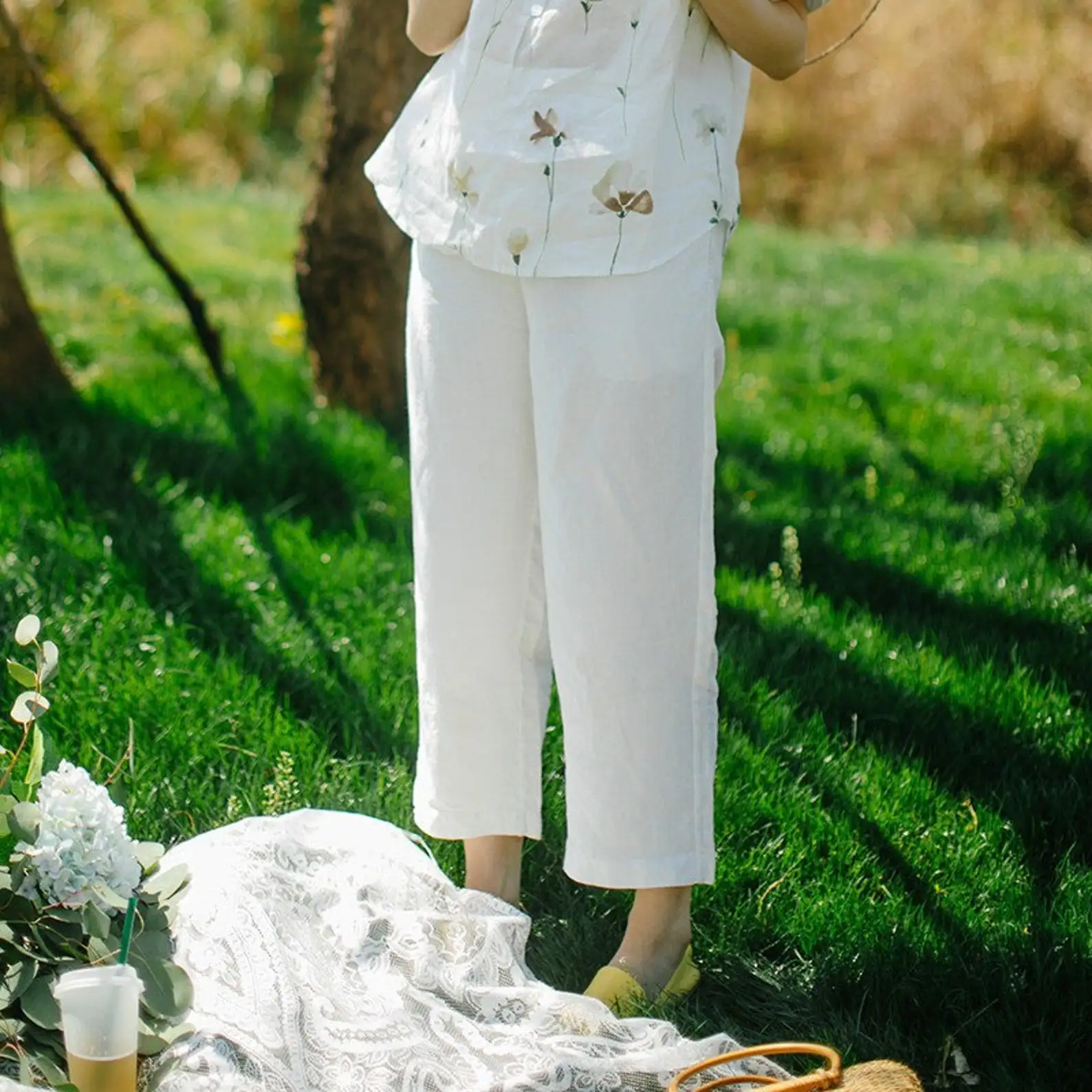 Breathable Lightweight Women's Cotton Linen Pants Midi Culottes Loose Pant Wide Leg Loose Long Bottoms Summer Available Big Size