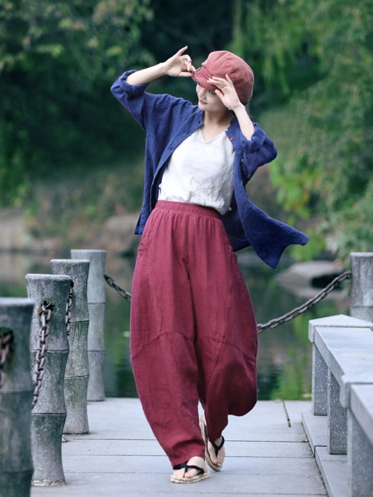 Women's Natural Cotton Linen Pants With Pockets Spring Summer Loose Casual Harem Soft Yoga Pants Plus Size Available Big Size