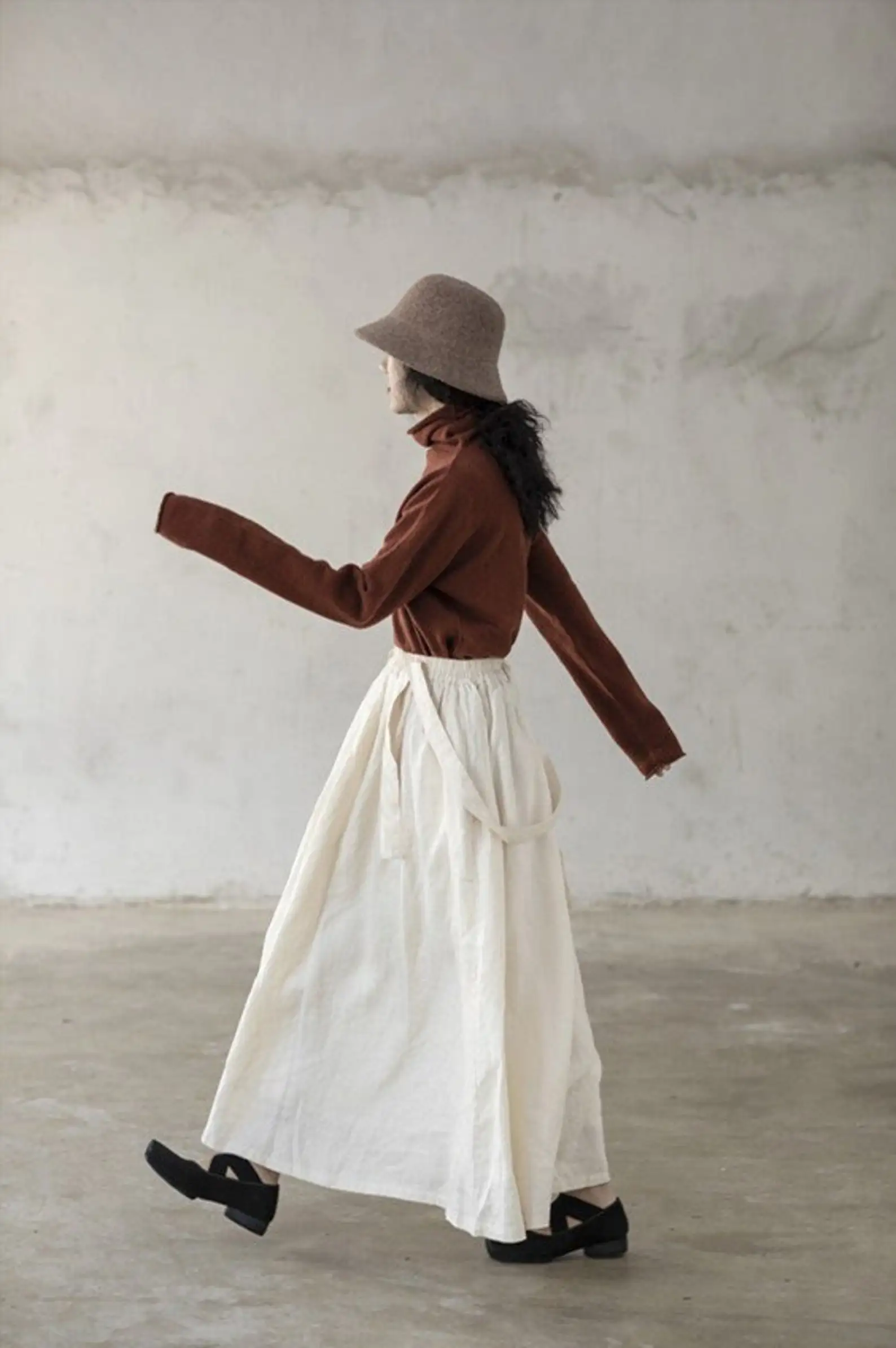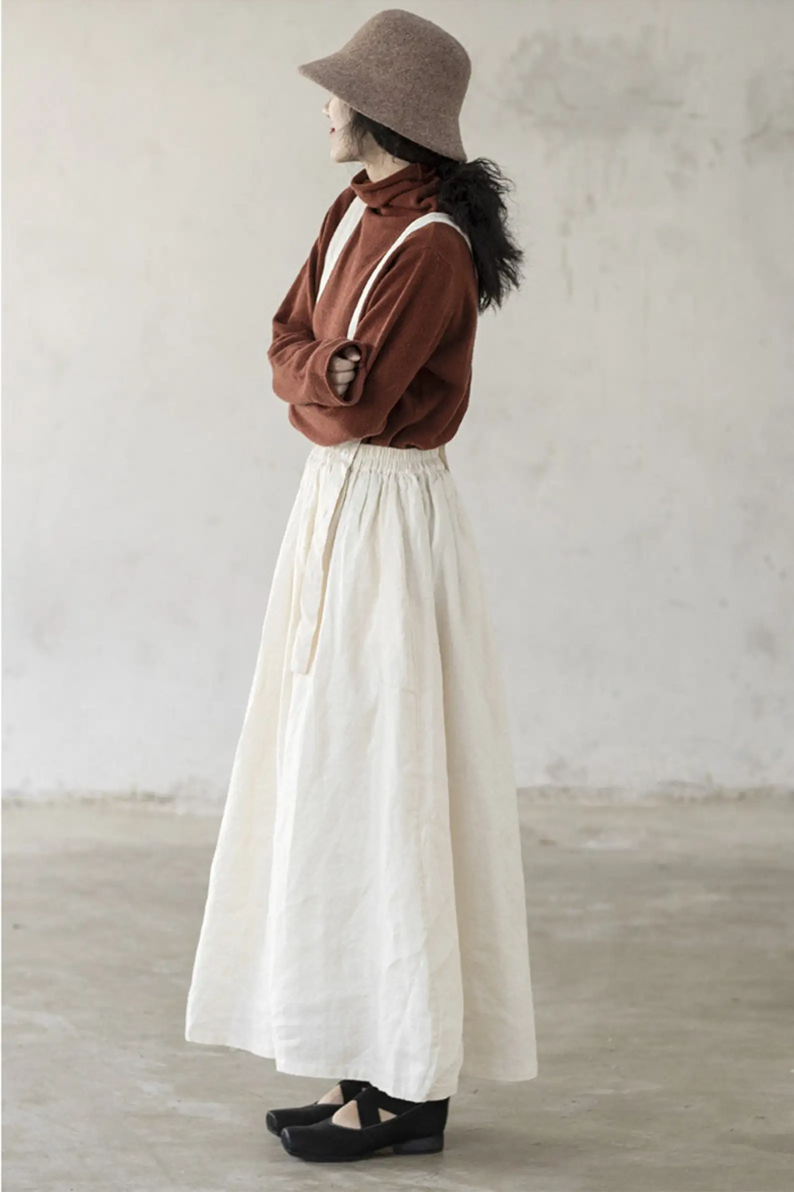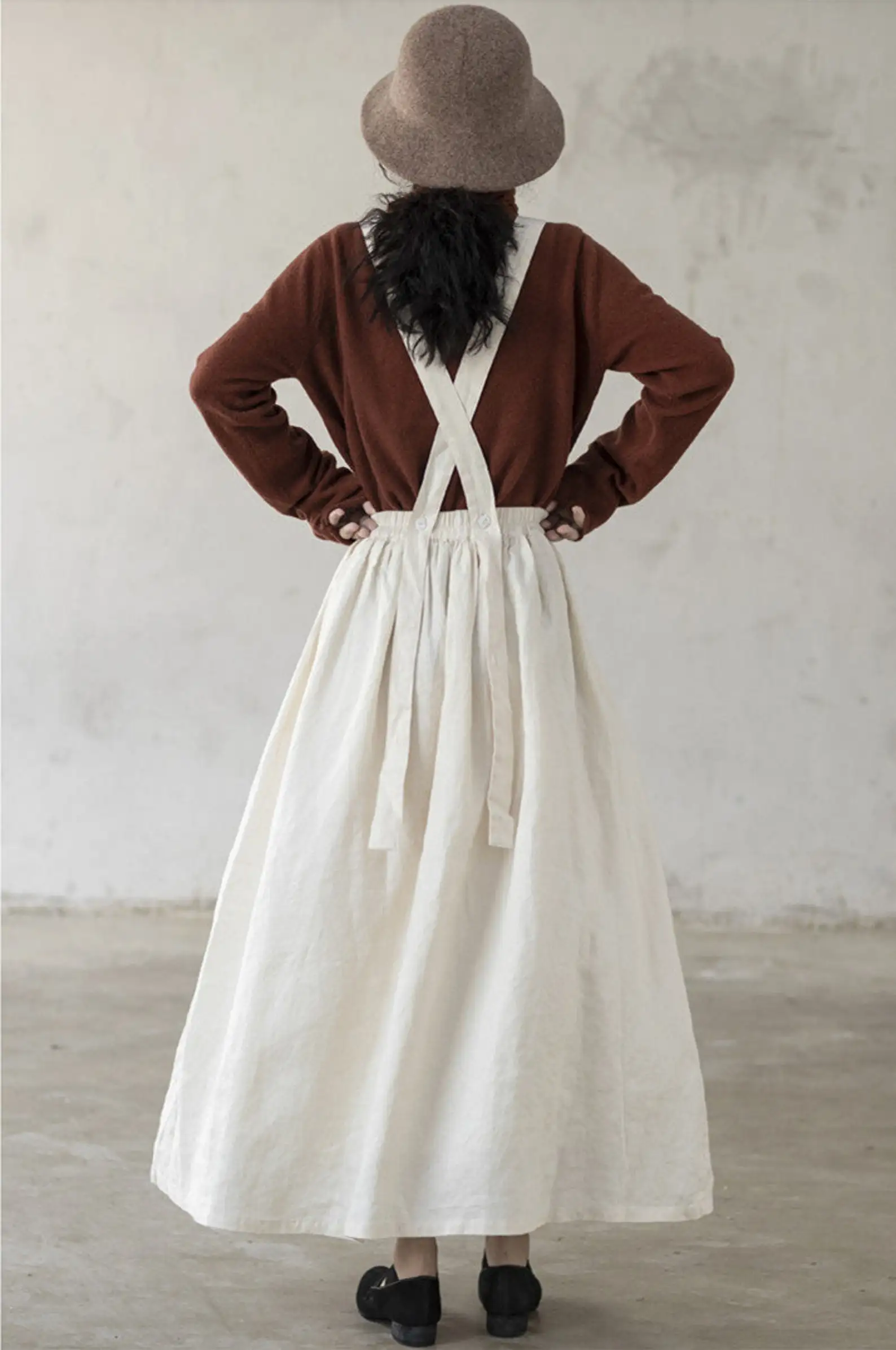 Stylish 100% Linen Casual Breathable Split Apron Dress with Pockets Cooking Gardening Cozy Kitchen Apron Available Big Size