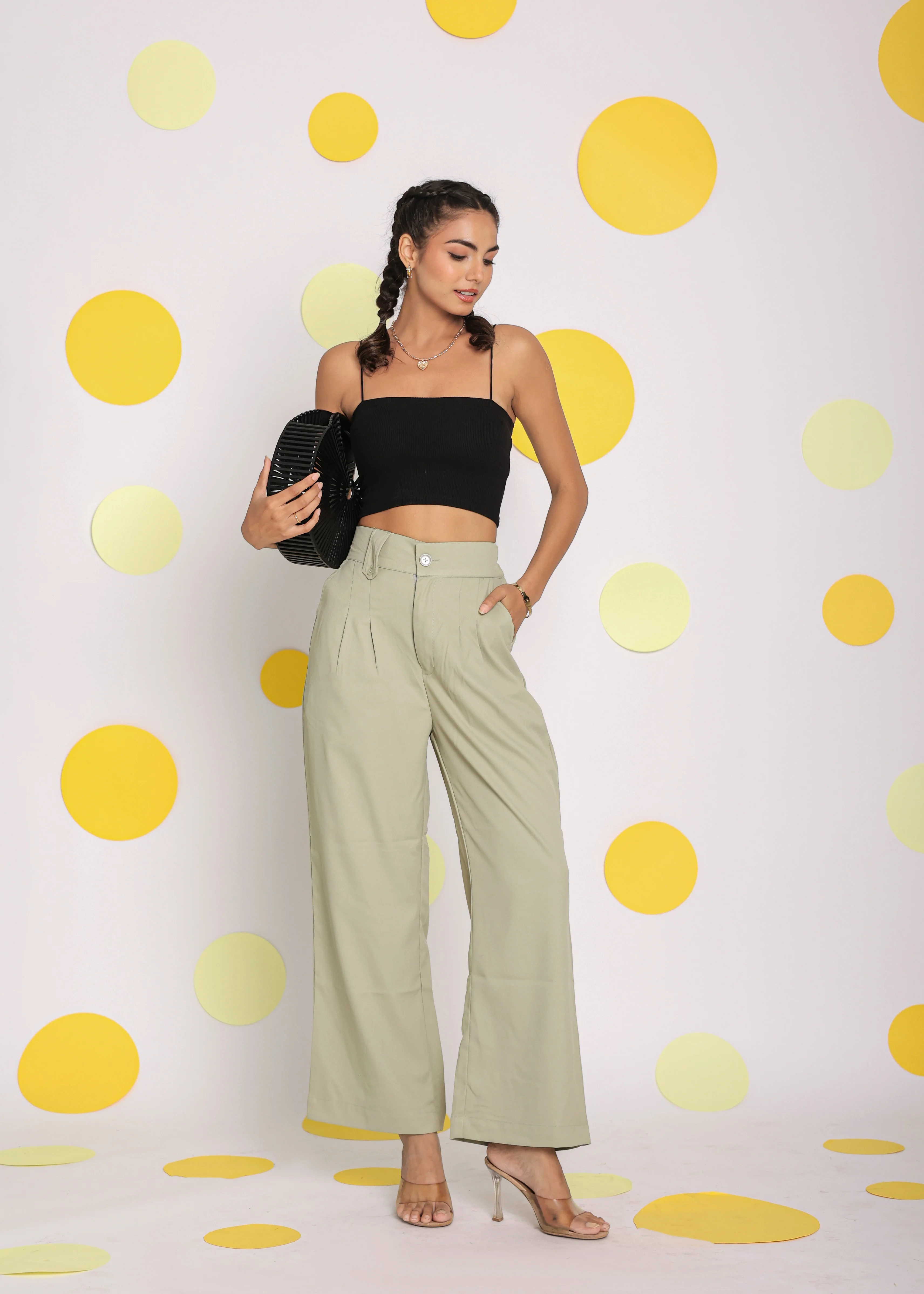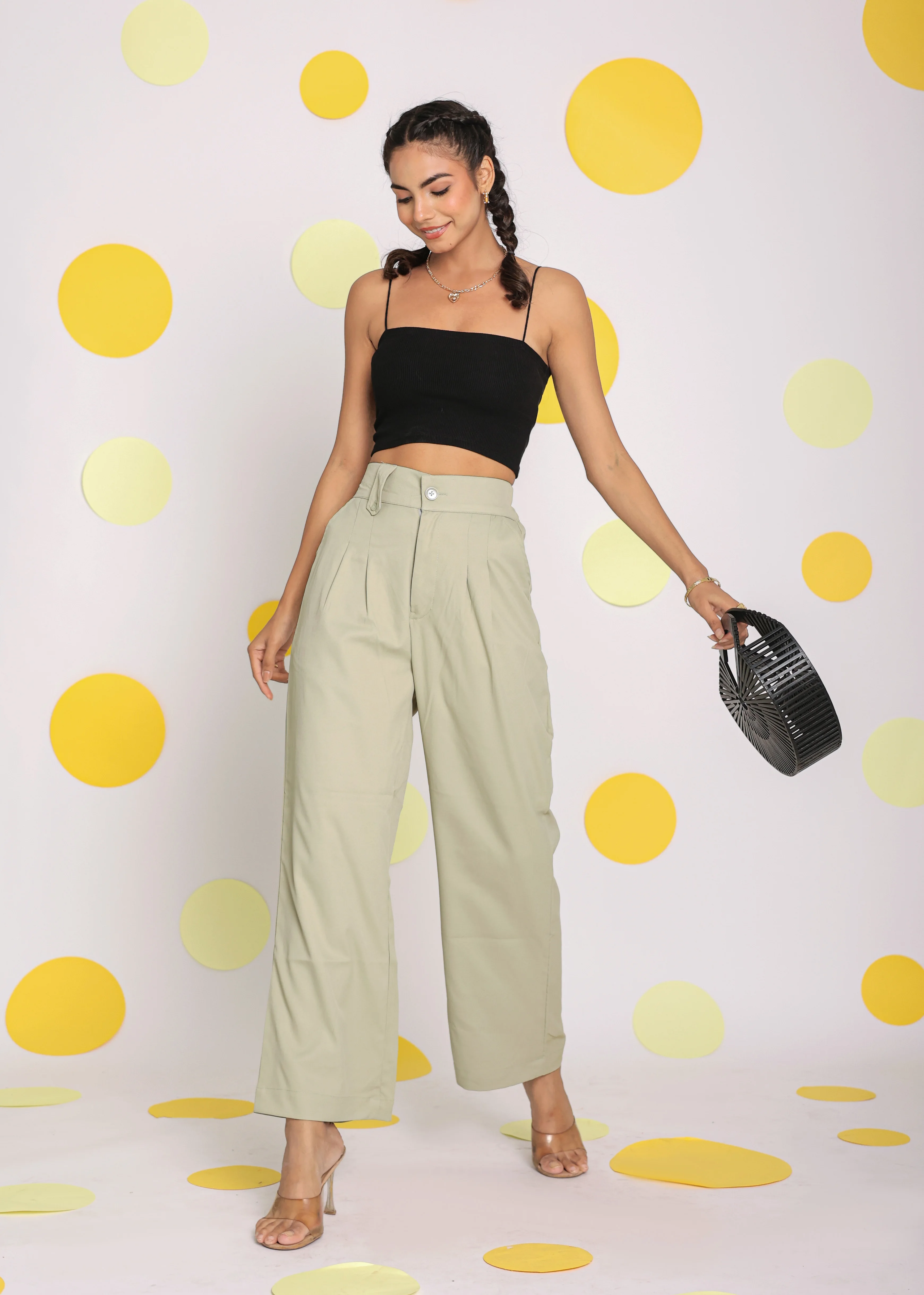 New Women's Mint Green Softstreme Split Wide Leg Pants Dropping High Elasticity Korean Relaxed Pants Women Available Big Size
