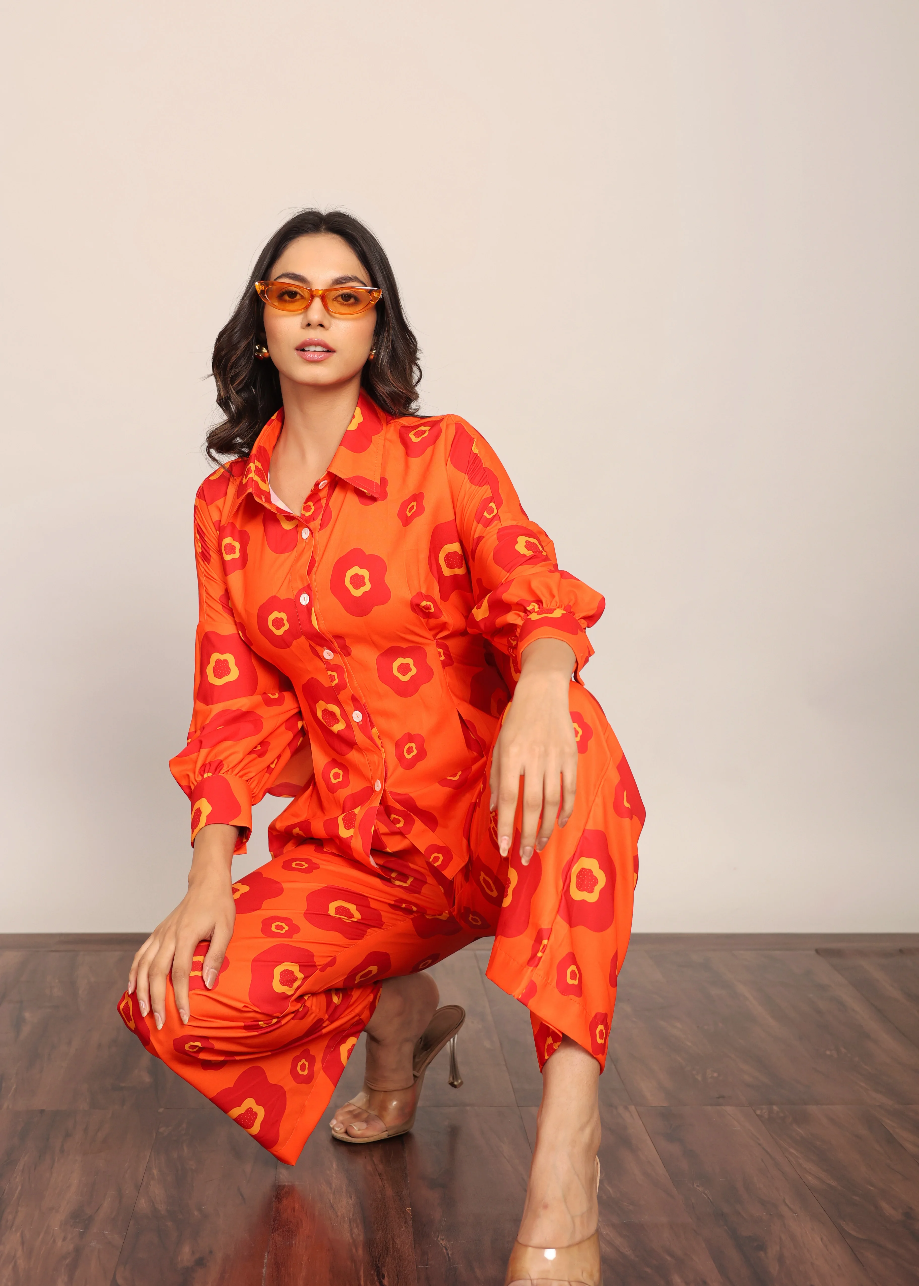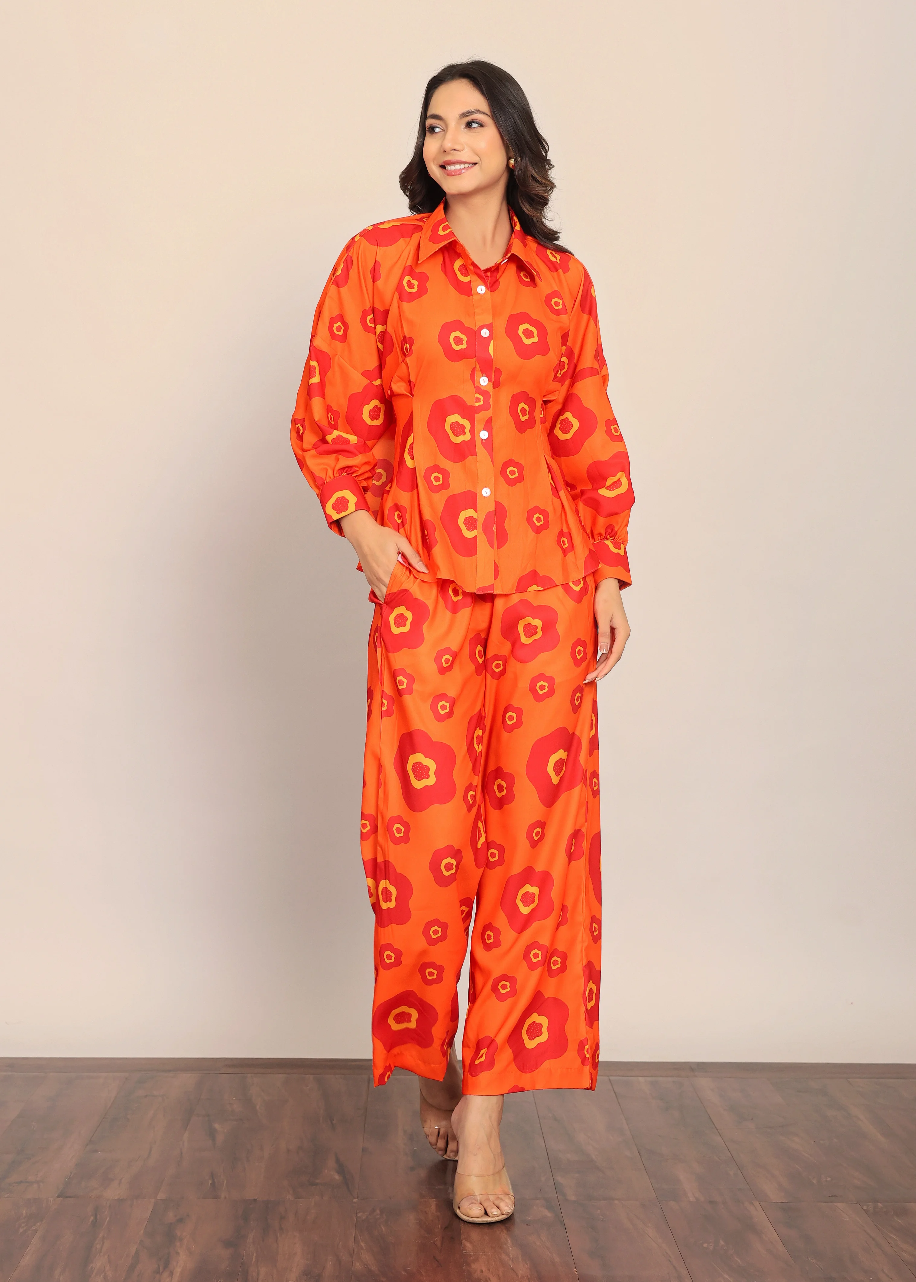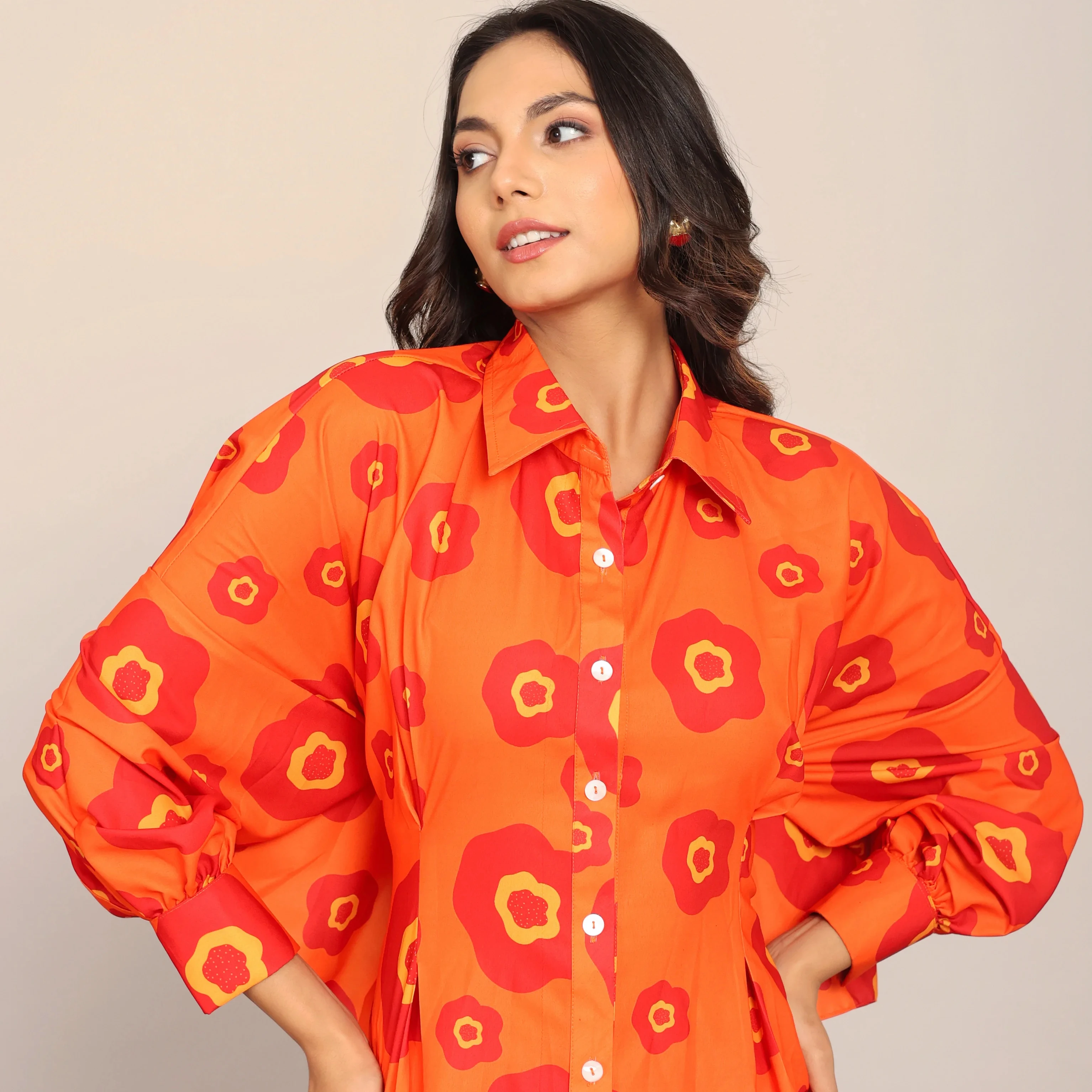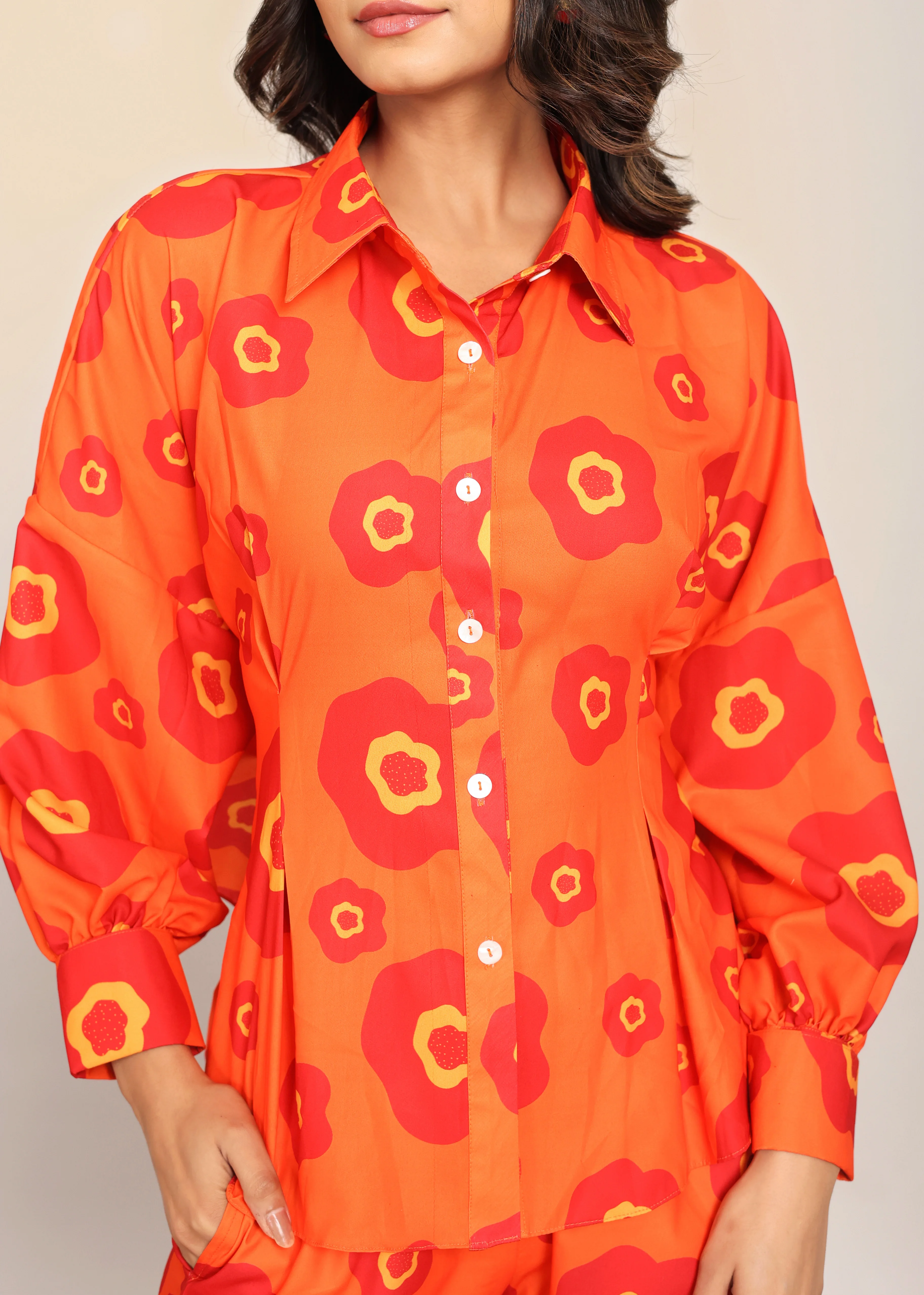 The Mesmerizing Orange Floral Printed Relaxed Shirt With Attached Belt Tie in Back Dress for Women and Girls Available Big Size