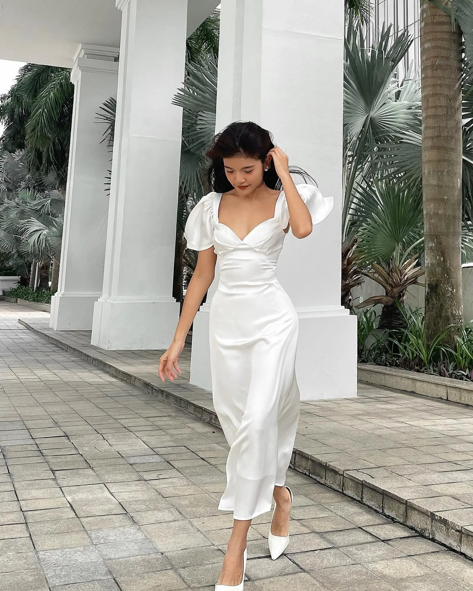 ZYHT 82024 White Blouse with Ruffled Cap Sleeves V-Neck Blouses Et Chemises Pour Femmes White Blouses for Women