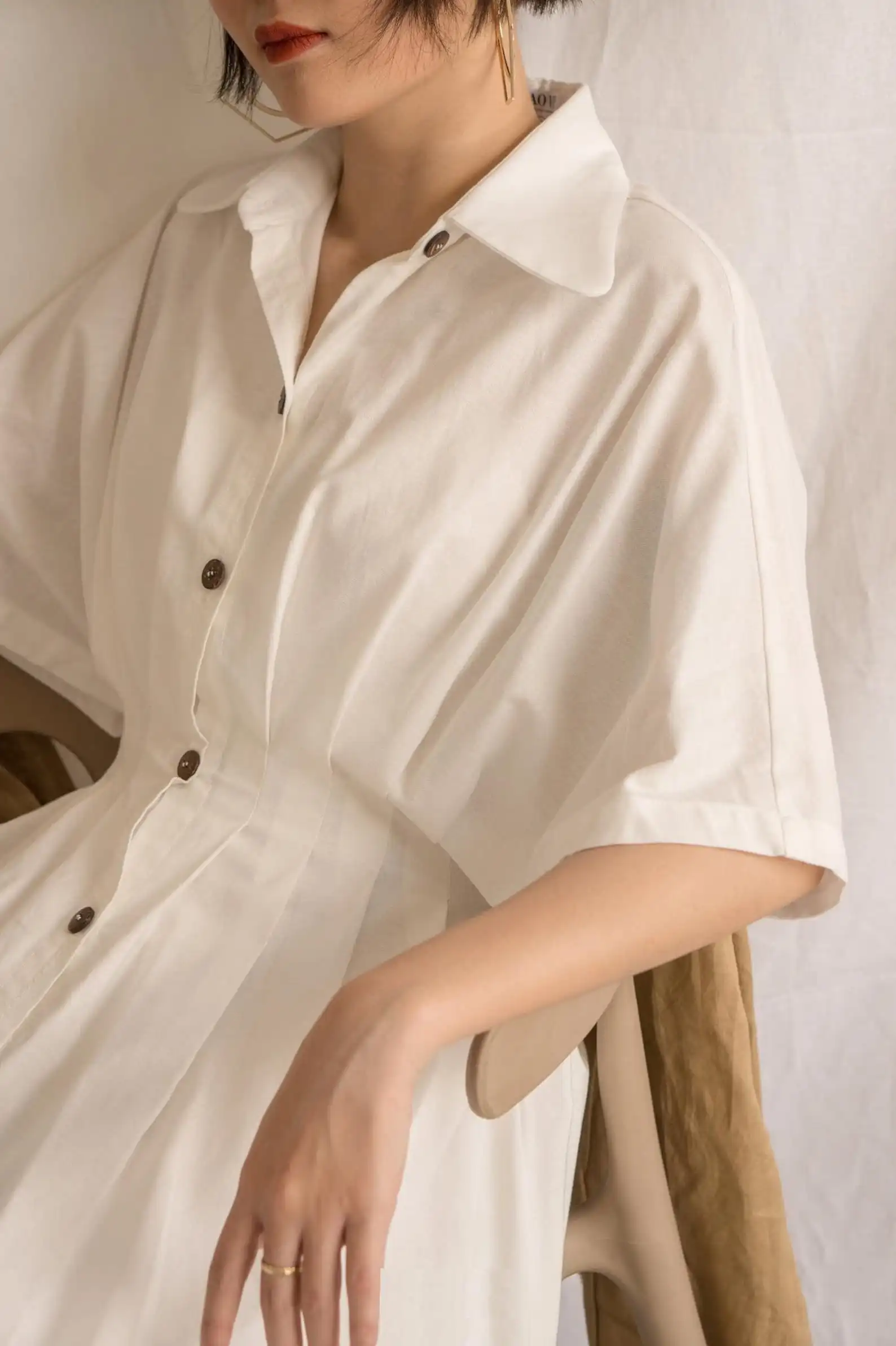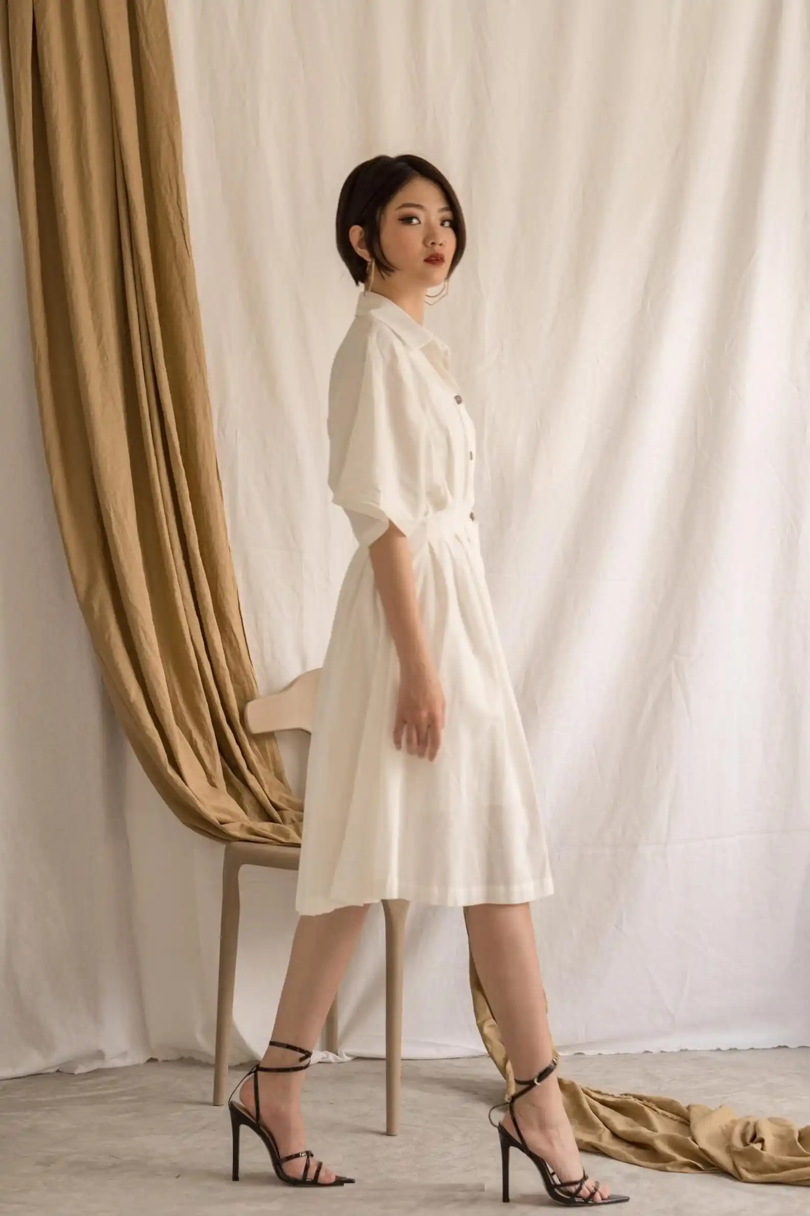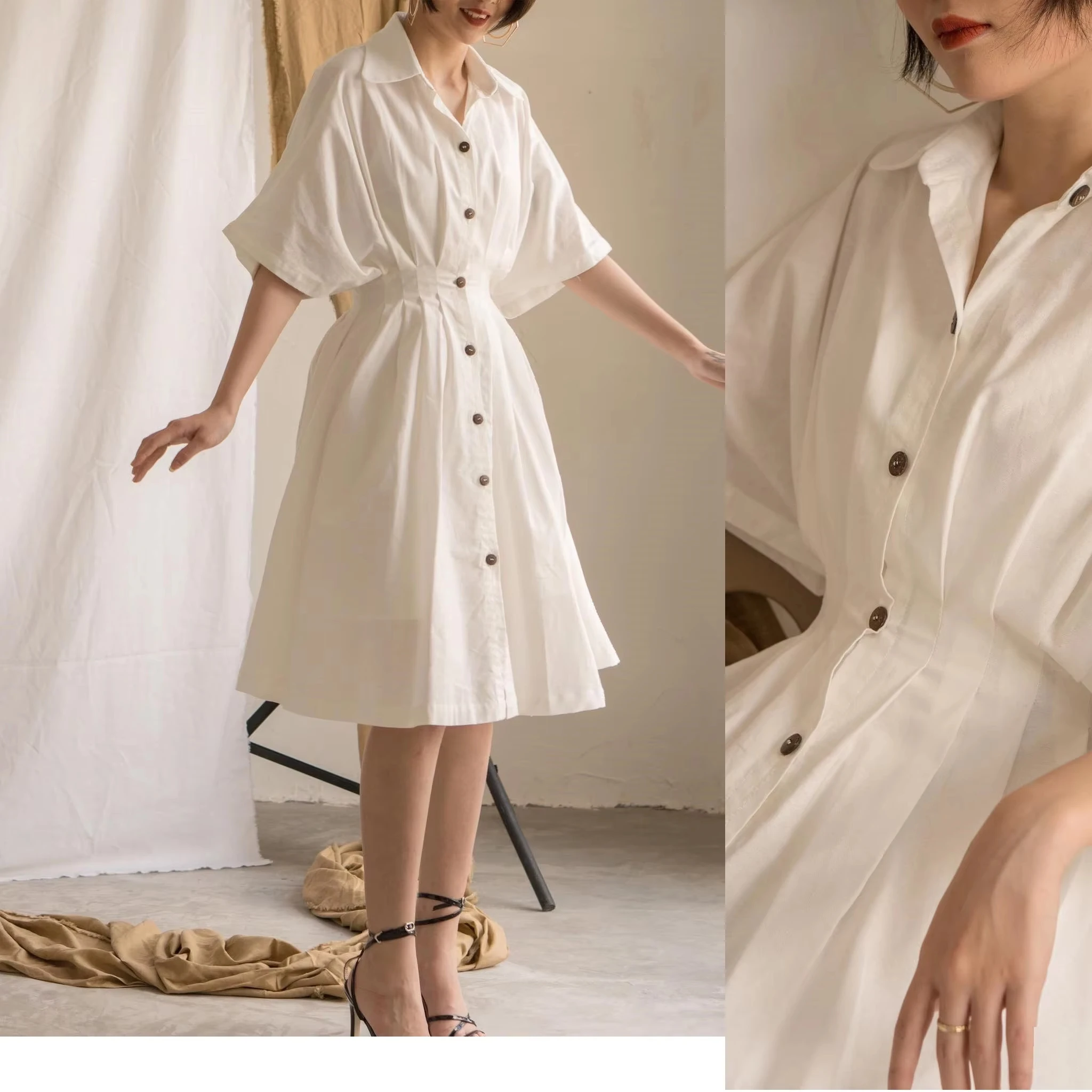 Cute Women's Custom Cotton Linen Summer Half Sleeves Midi Shirt Dress With Front Buttons Custom Colors Available Big Size