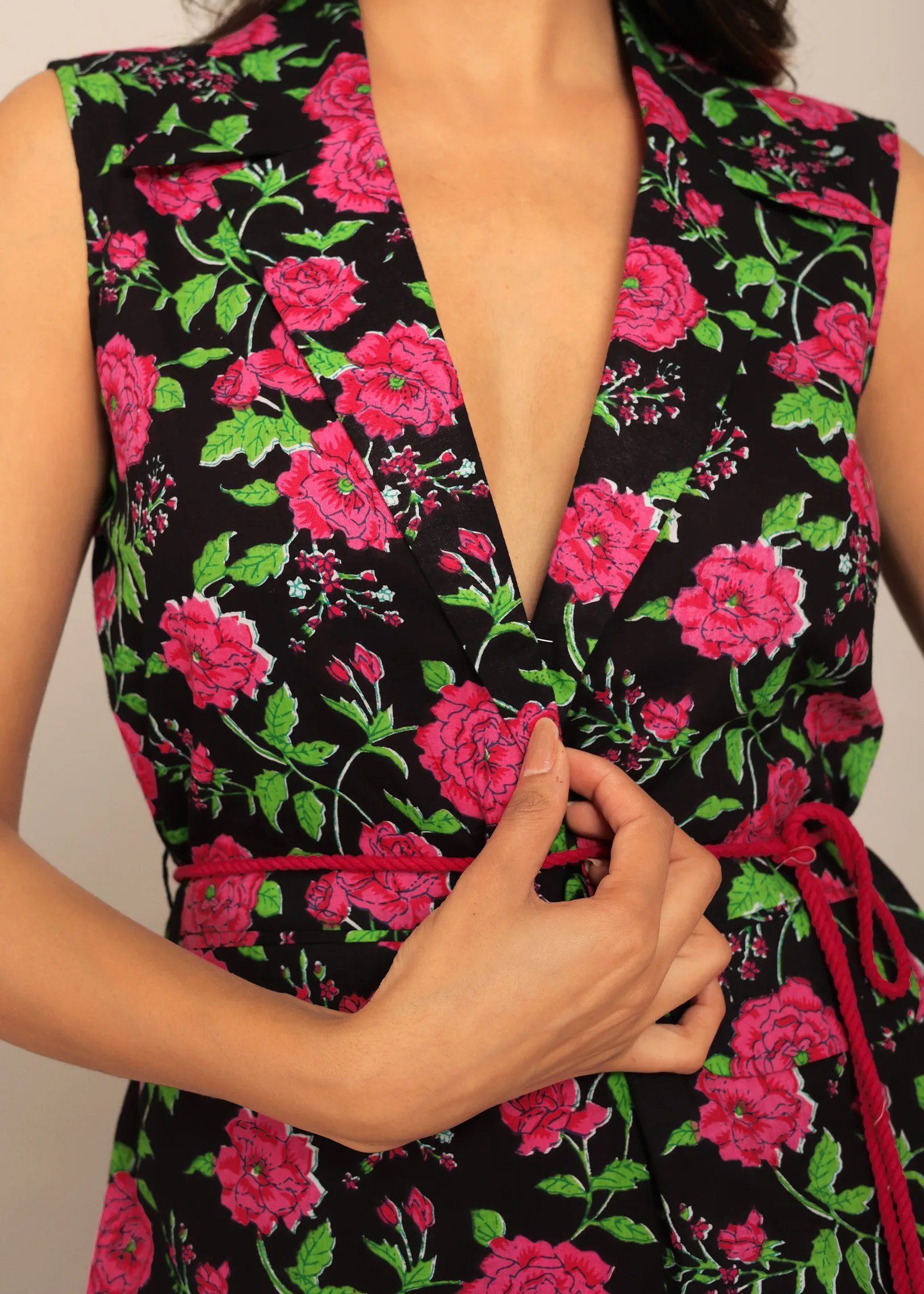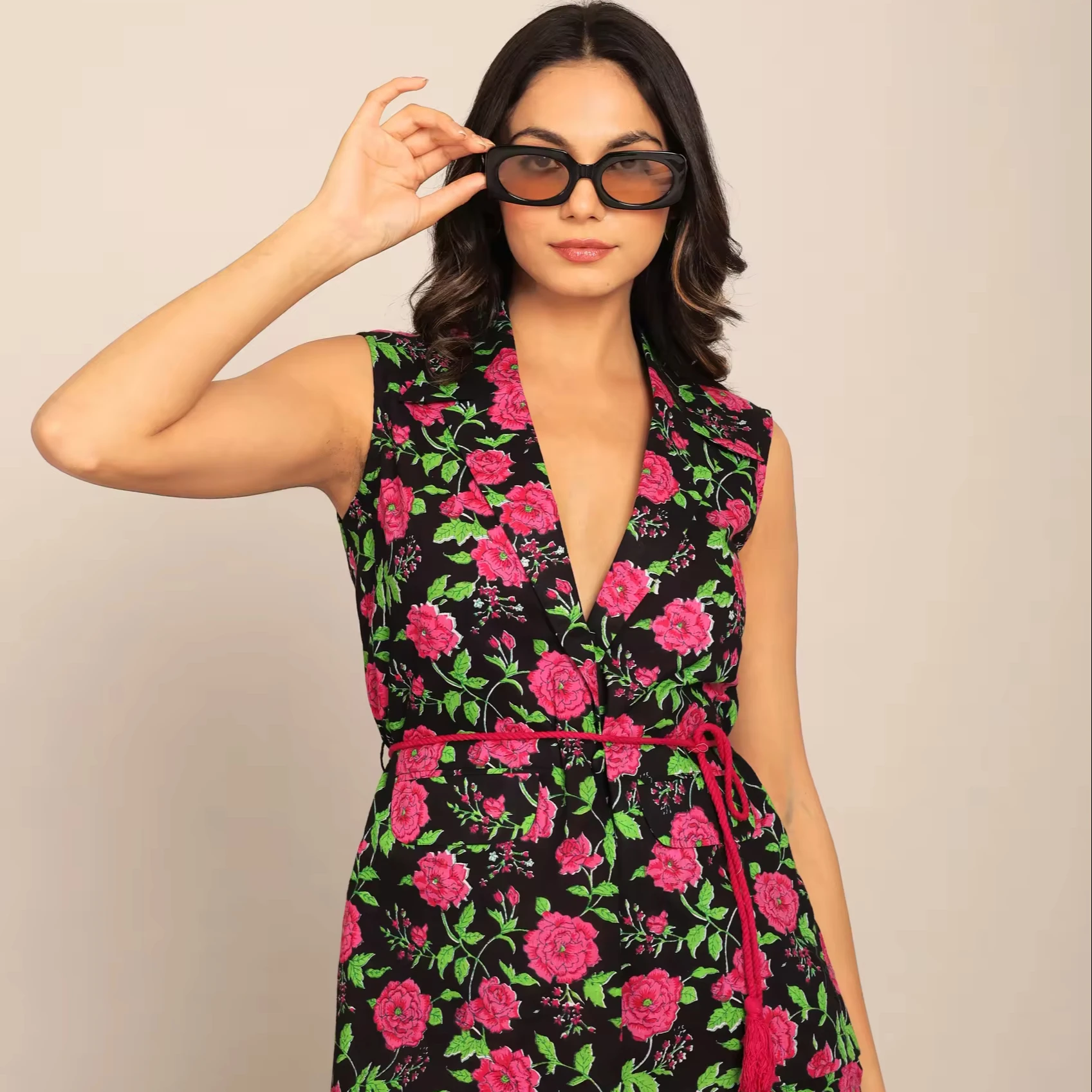 Women's Elegant Pure Cotton Summer Tops Multicolor Floral Printed Relaxed Collar Shirt Wholesale V-neck Sleeveless Top Dress