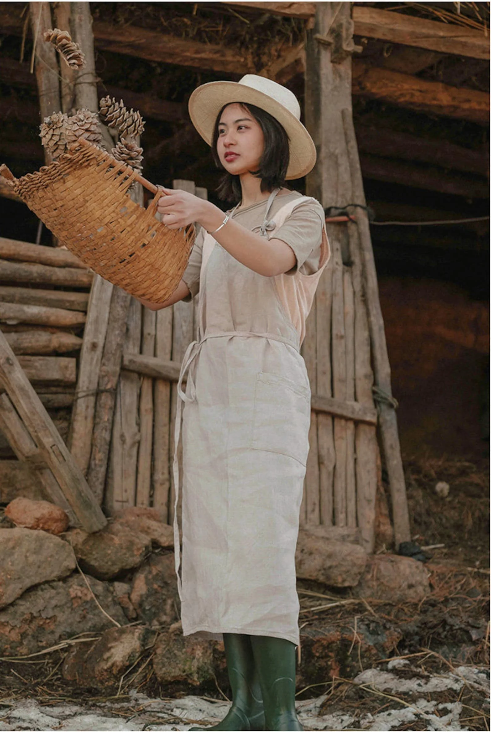 Linen Apron Dress. Pure Linen Apron for Cooking Gardening Full Apron for Women and Men Plus Size Clothing Available Big Size