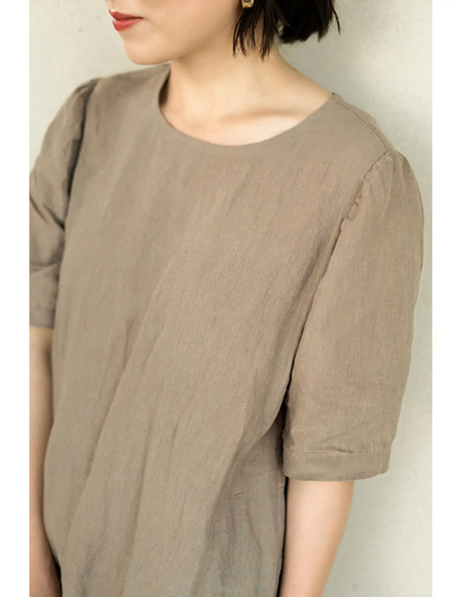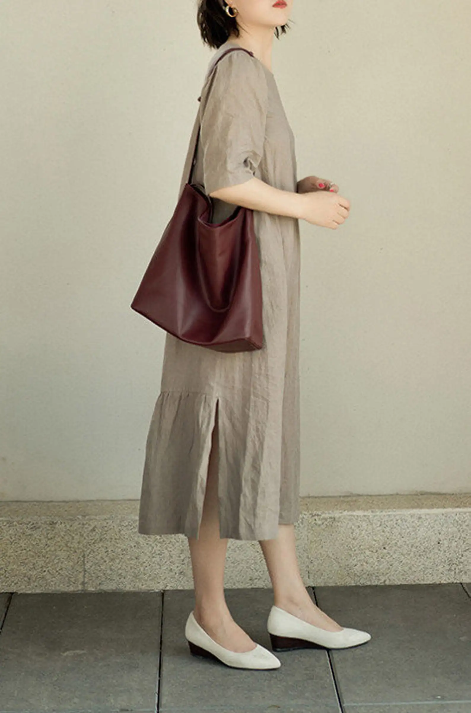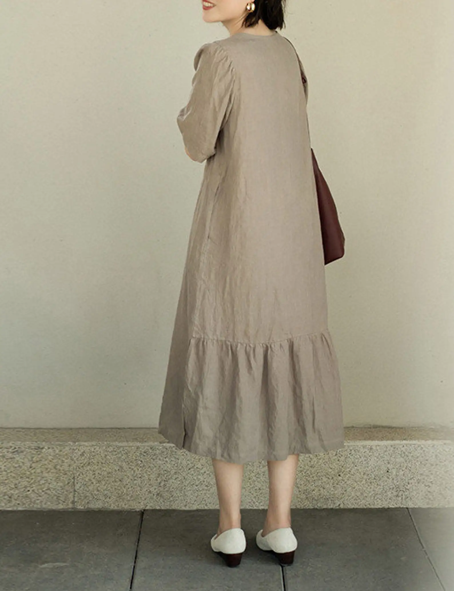 Women Linen Dresses Fall With Pocket Washed Clothing Loose Casual Linen Long Sleeve Dress Sewing Clothing Available Big Size