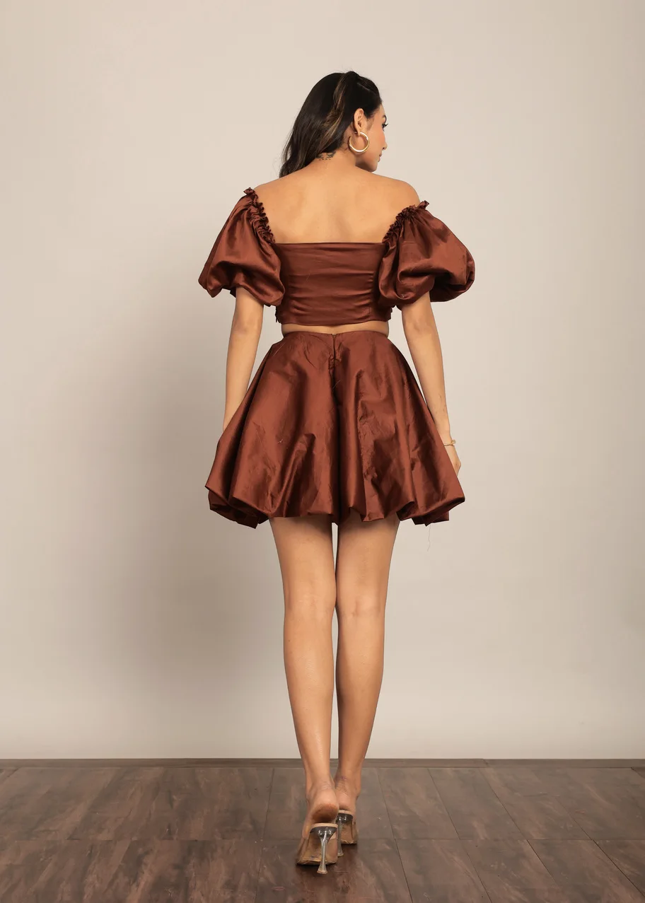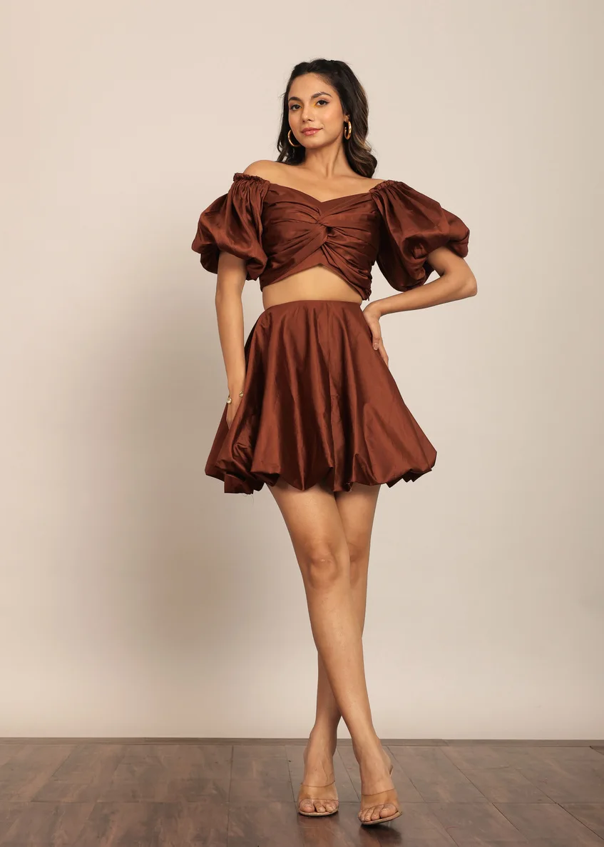 Manufacturer Hot Selling Solid Coffee Brown Linen Co Ord Set Summer Women Trending Stylish Bust Fitted Top Available Big Size