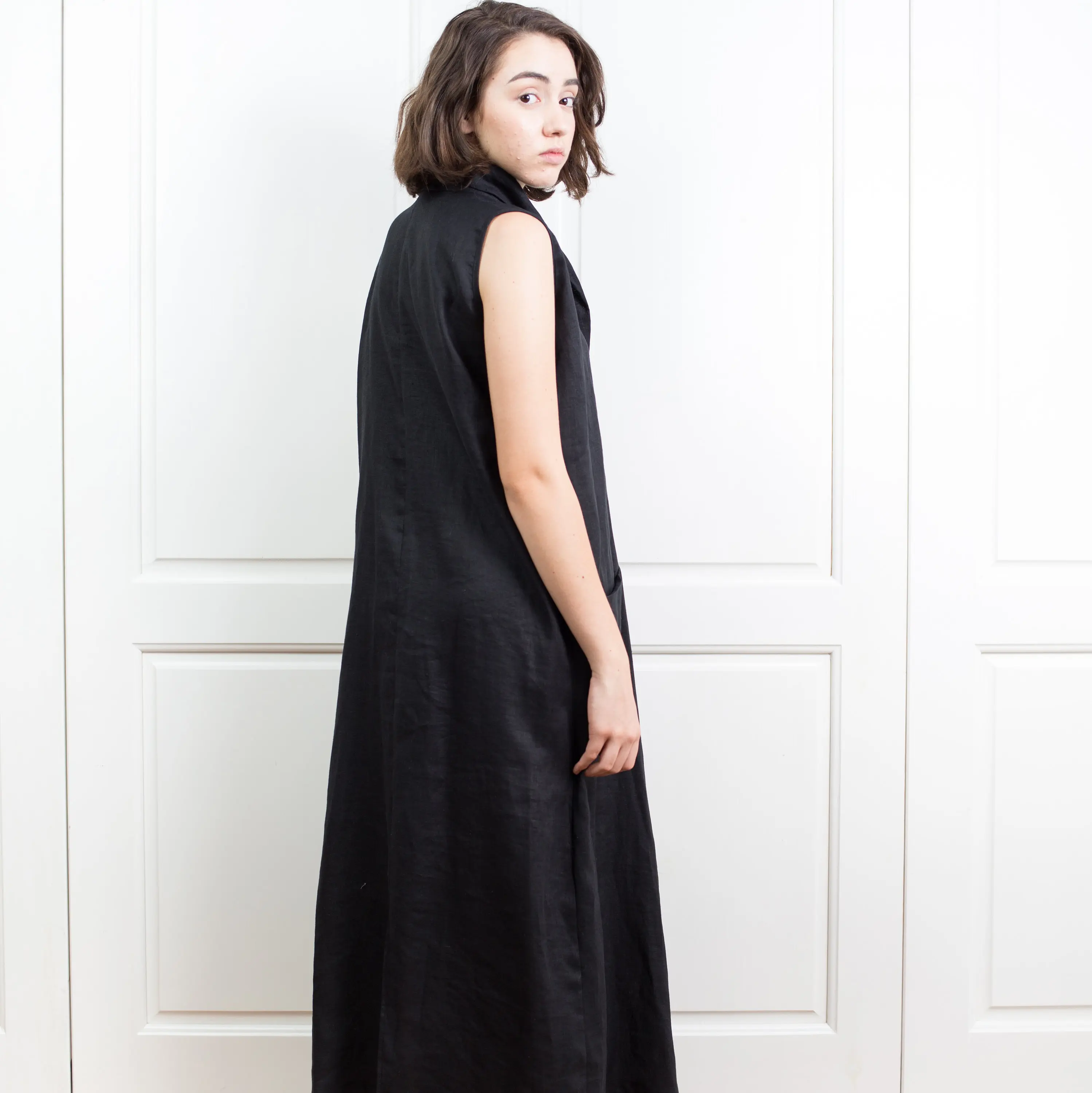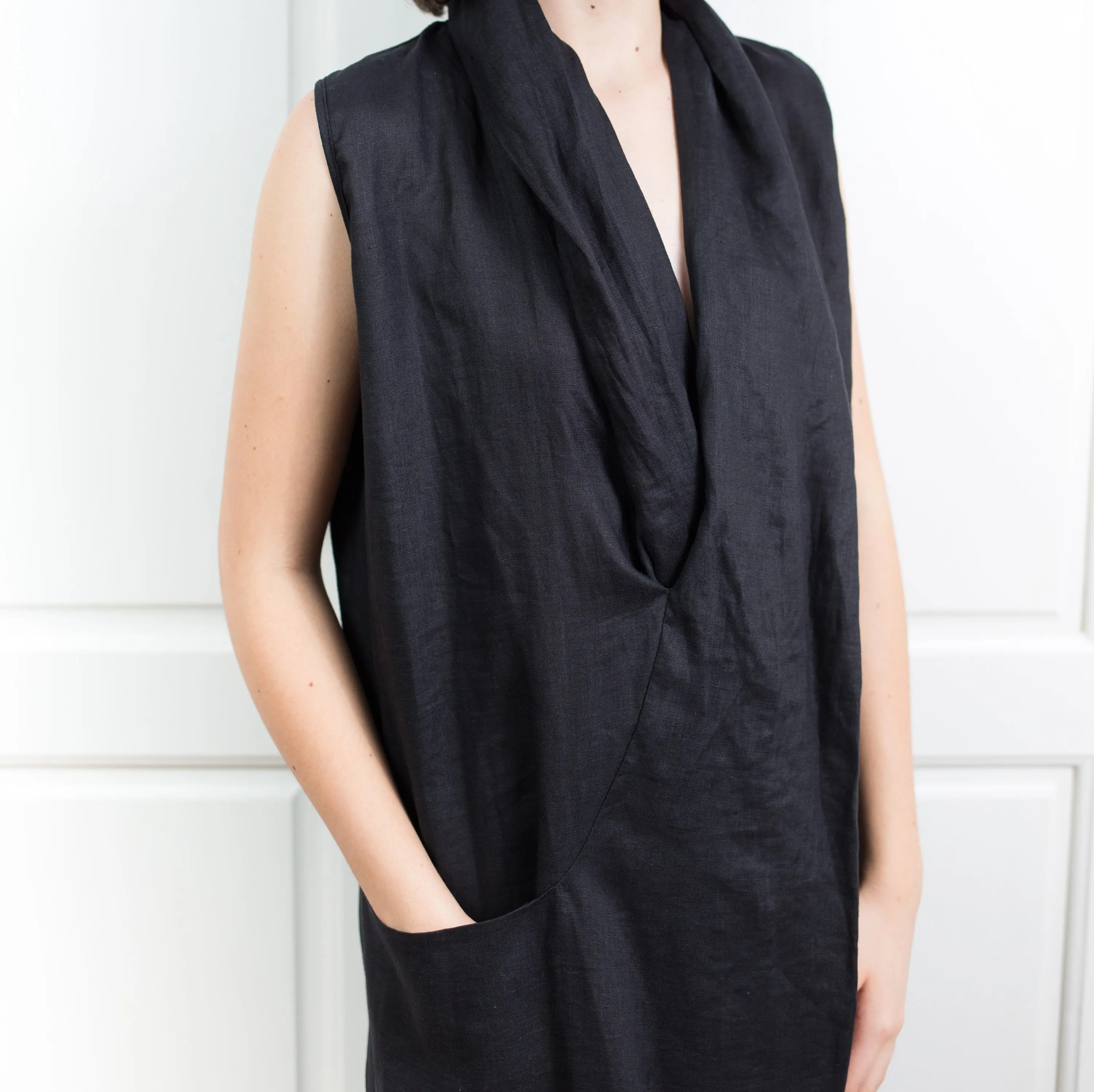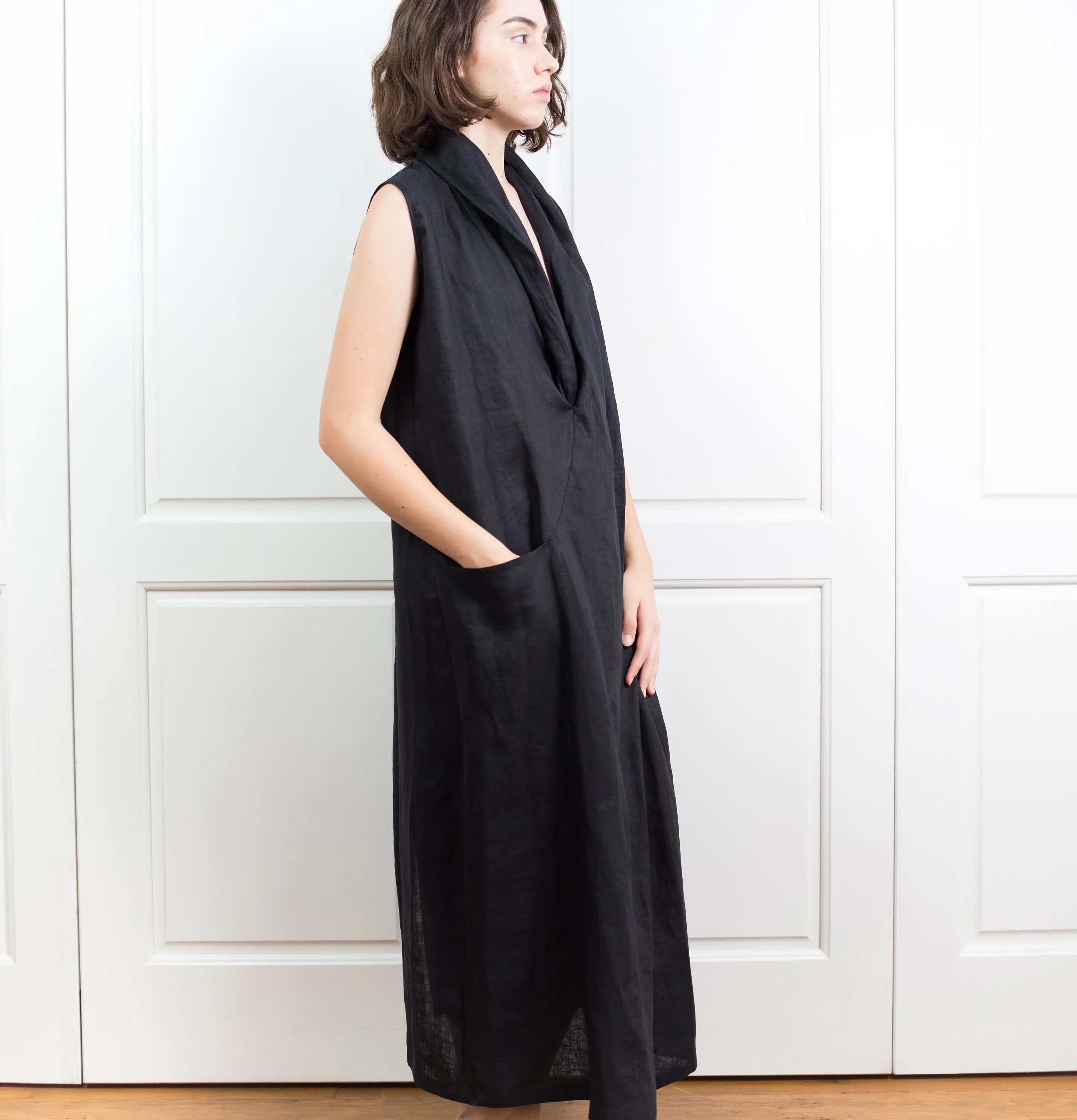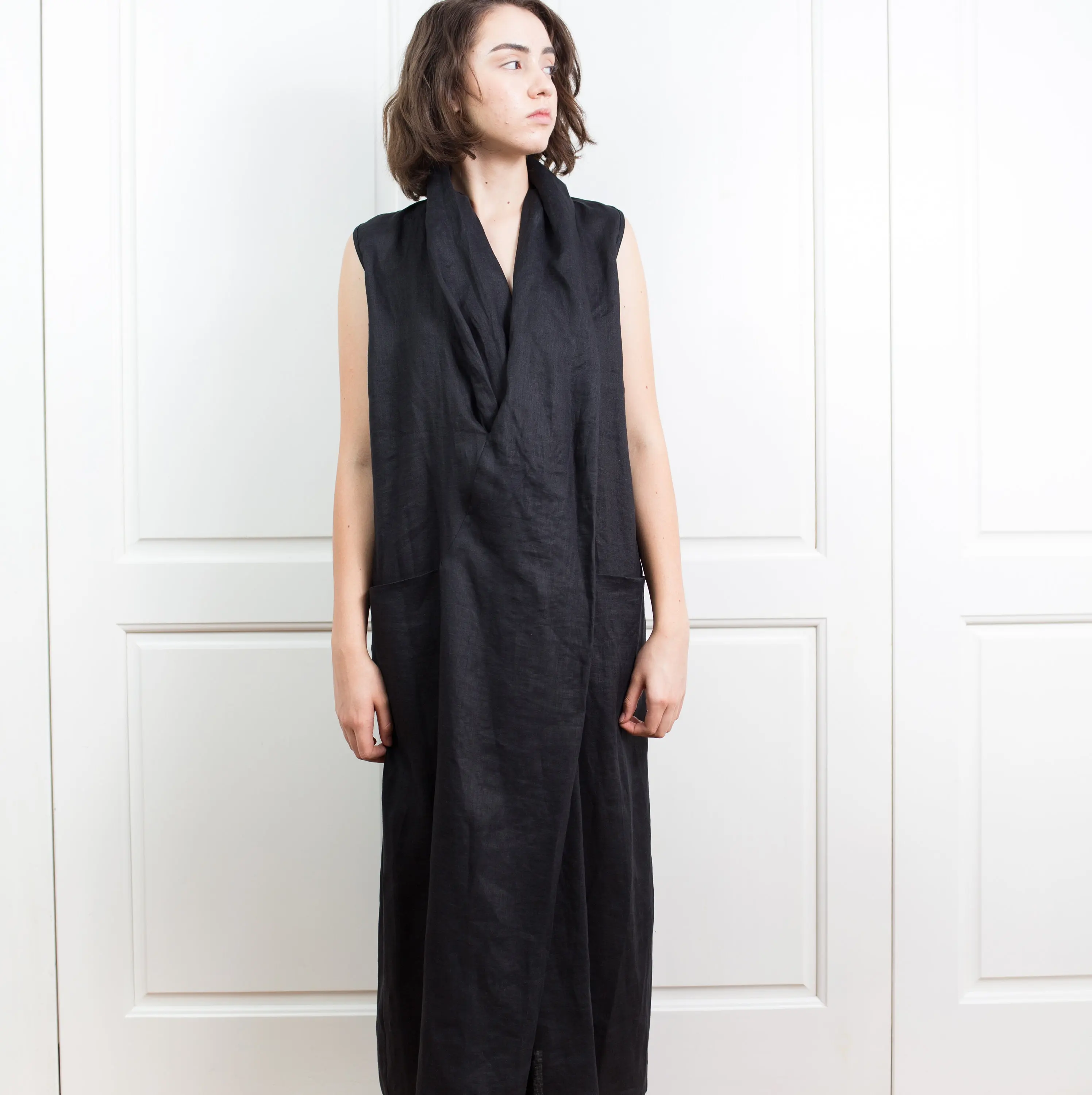 Romantic Japanese Style Linen Kimono Dress Multiway Midi Length Sleeveless Kimono with Belt Pockets Eco-Friendly Woven Waistline