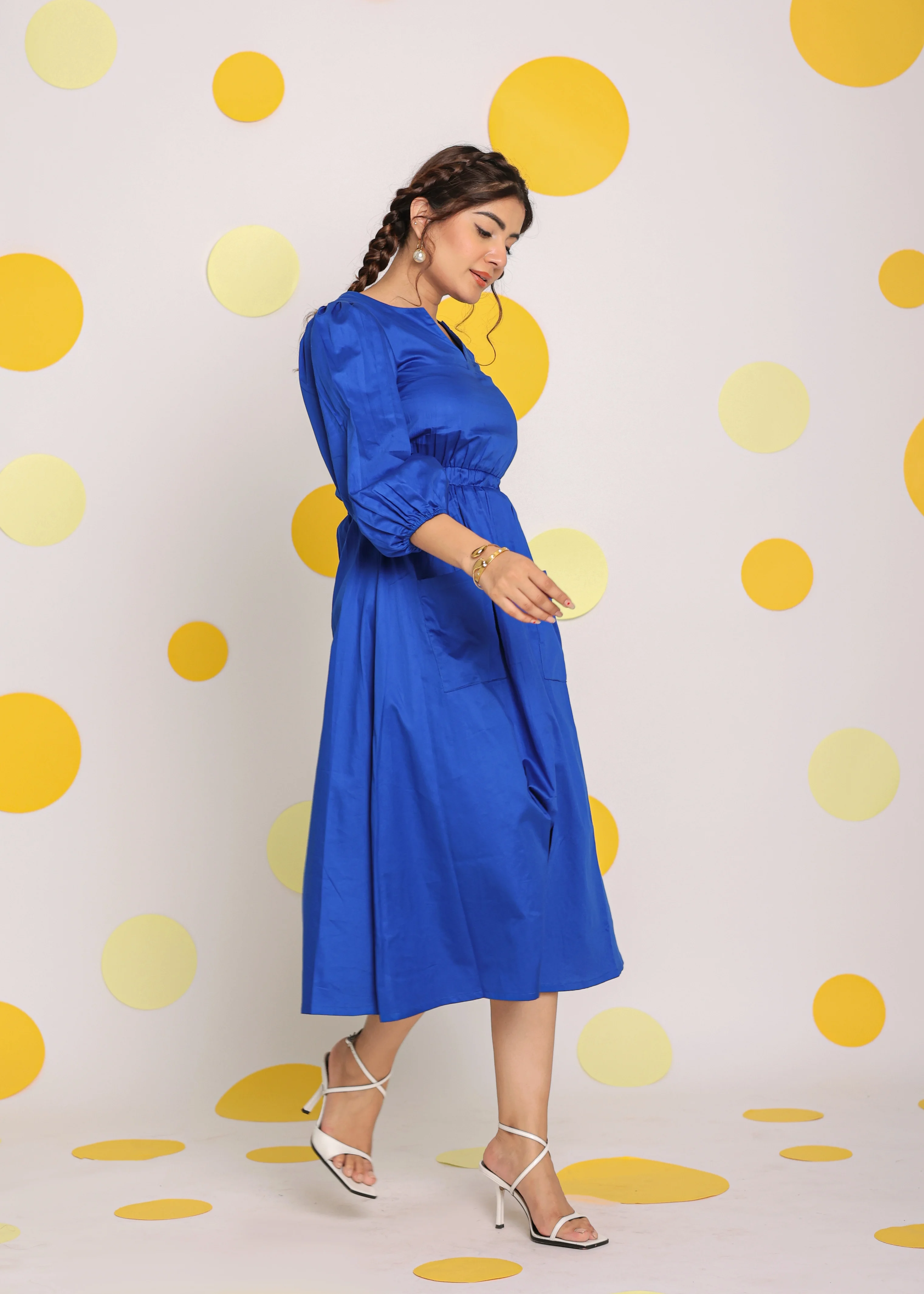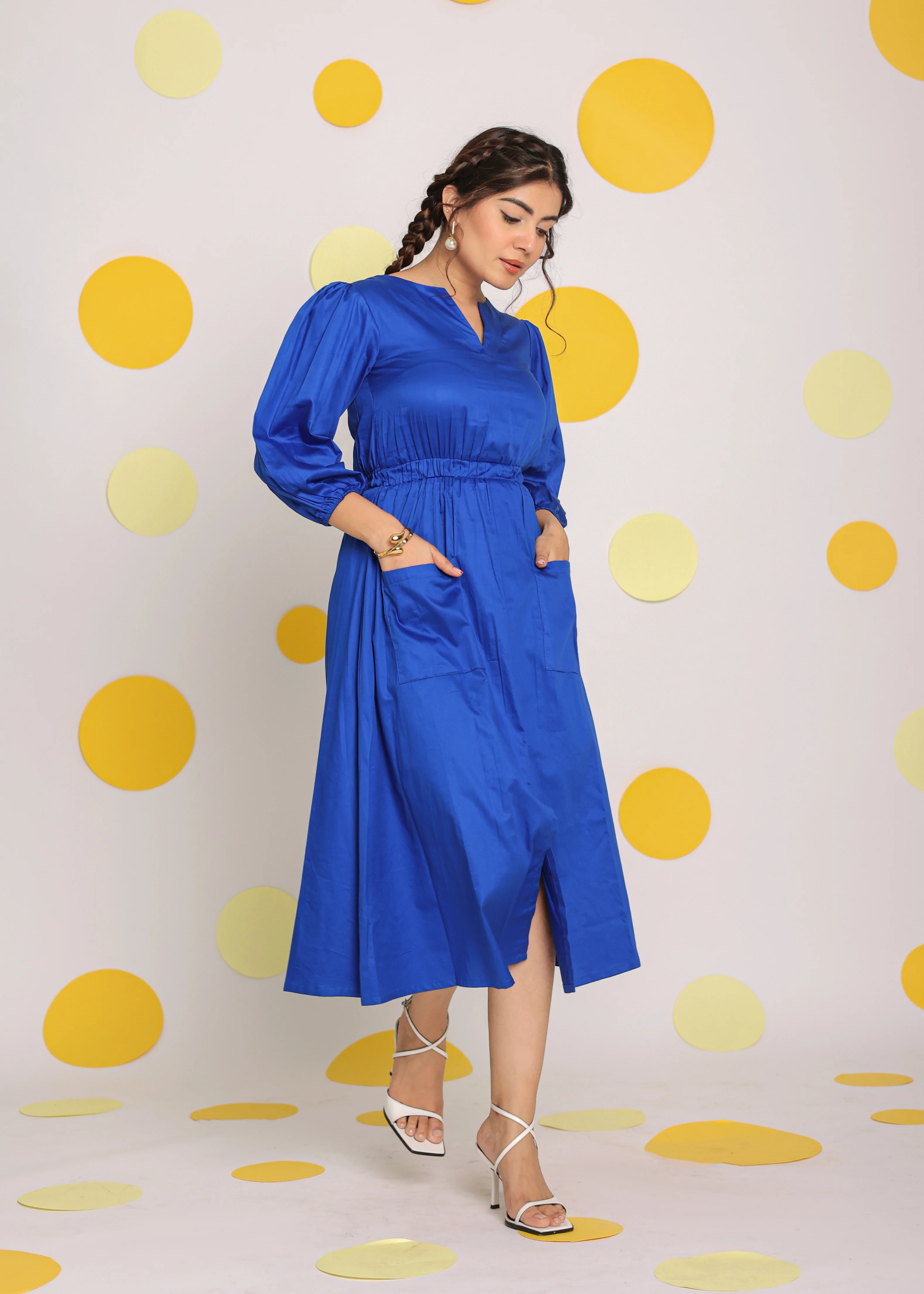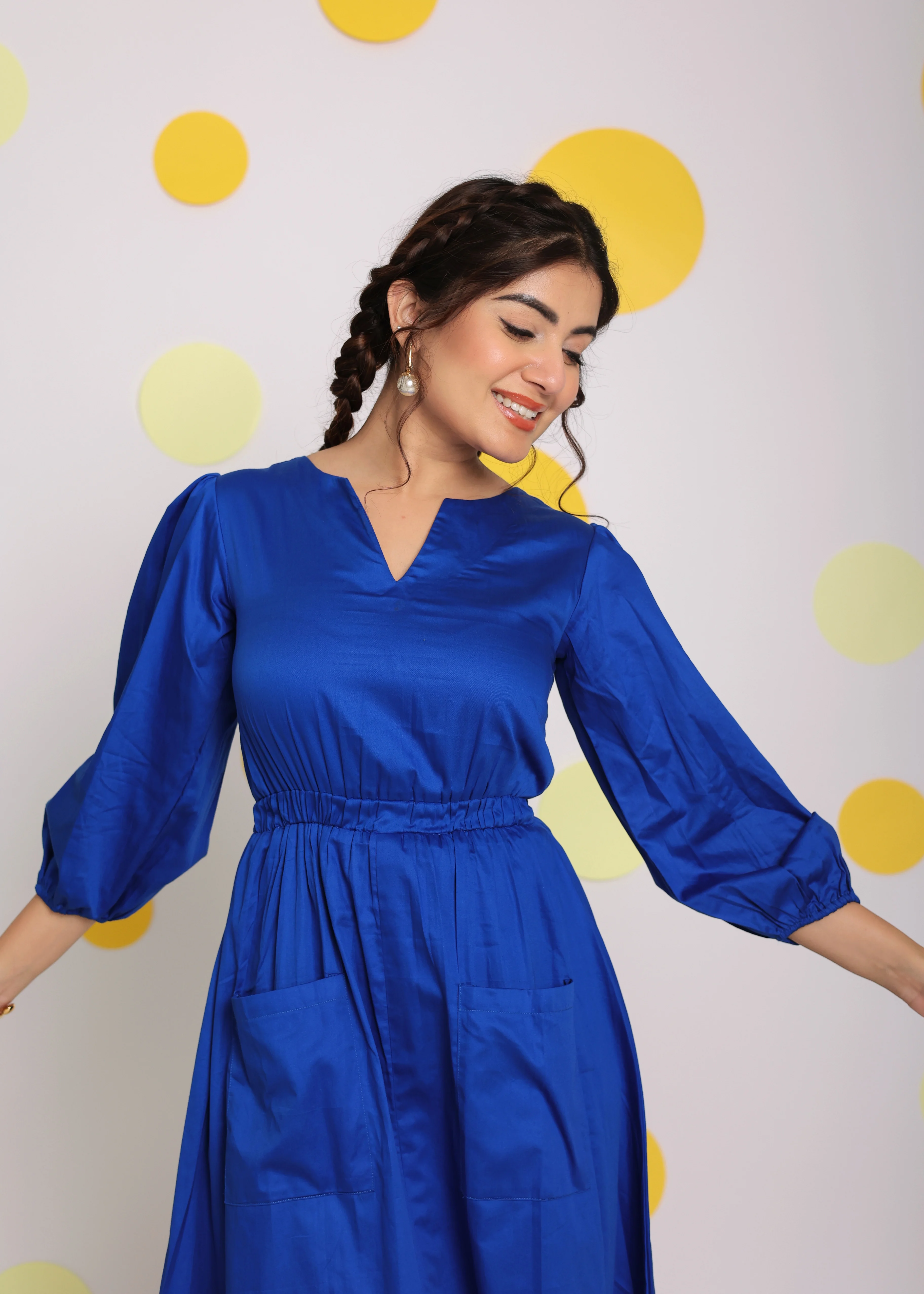 Natural Cotton Midi Dress Royal Blue Burst Fitted V -Neck Midi Dress Summer Dress Cotton Midi Western Pattern Available Big Size