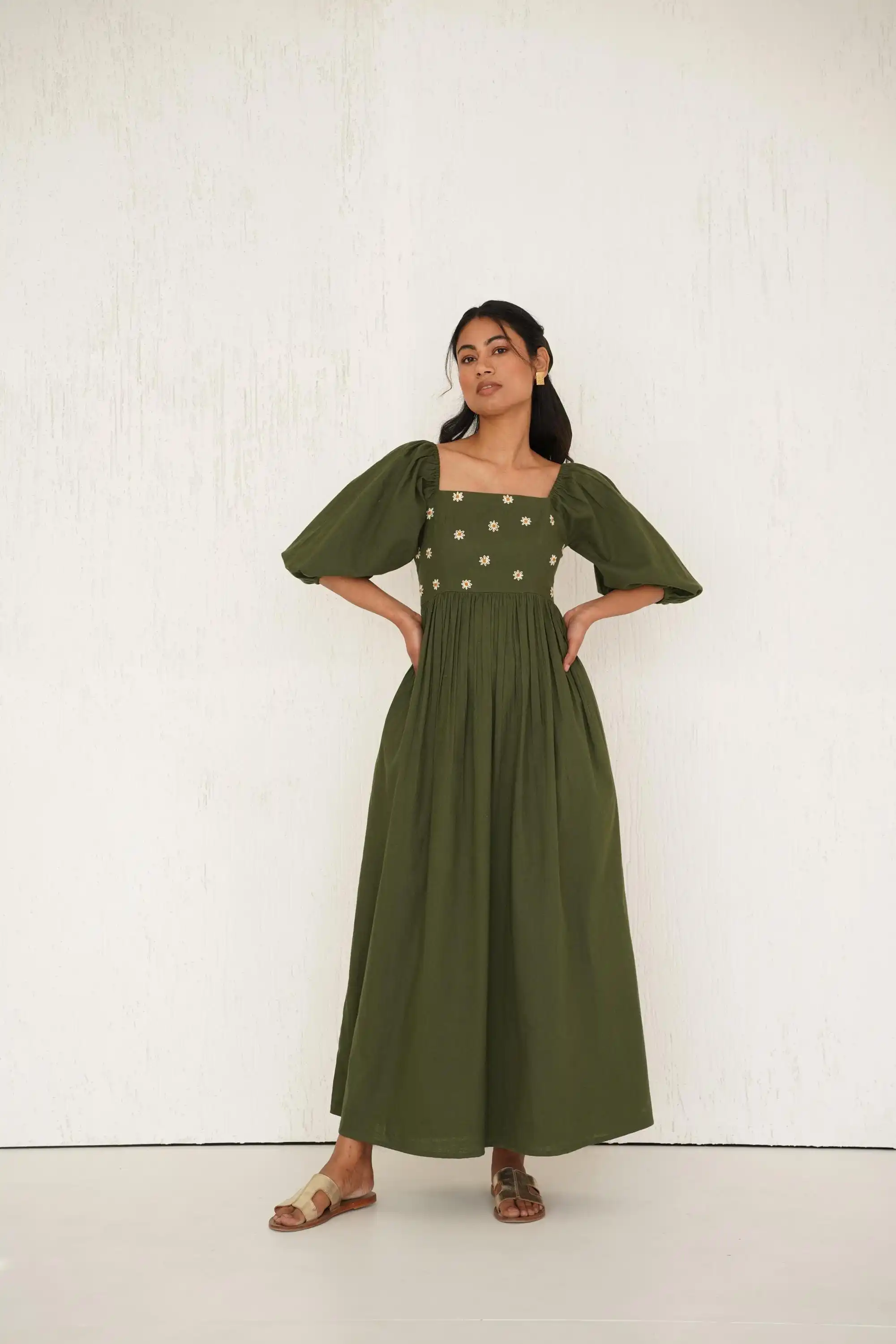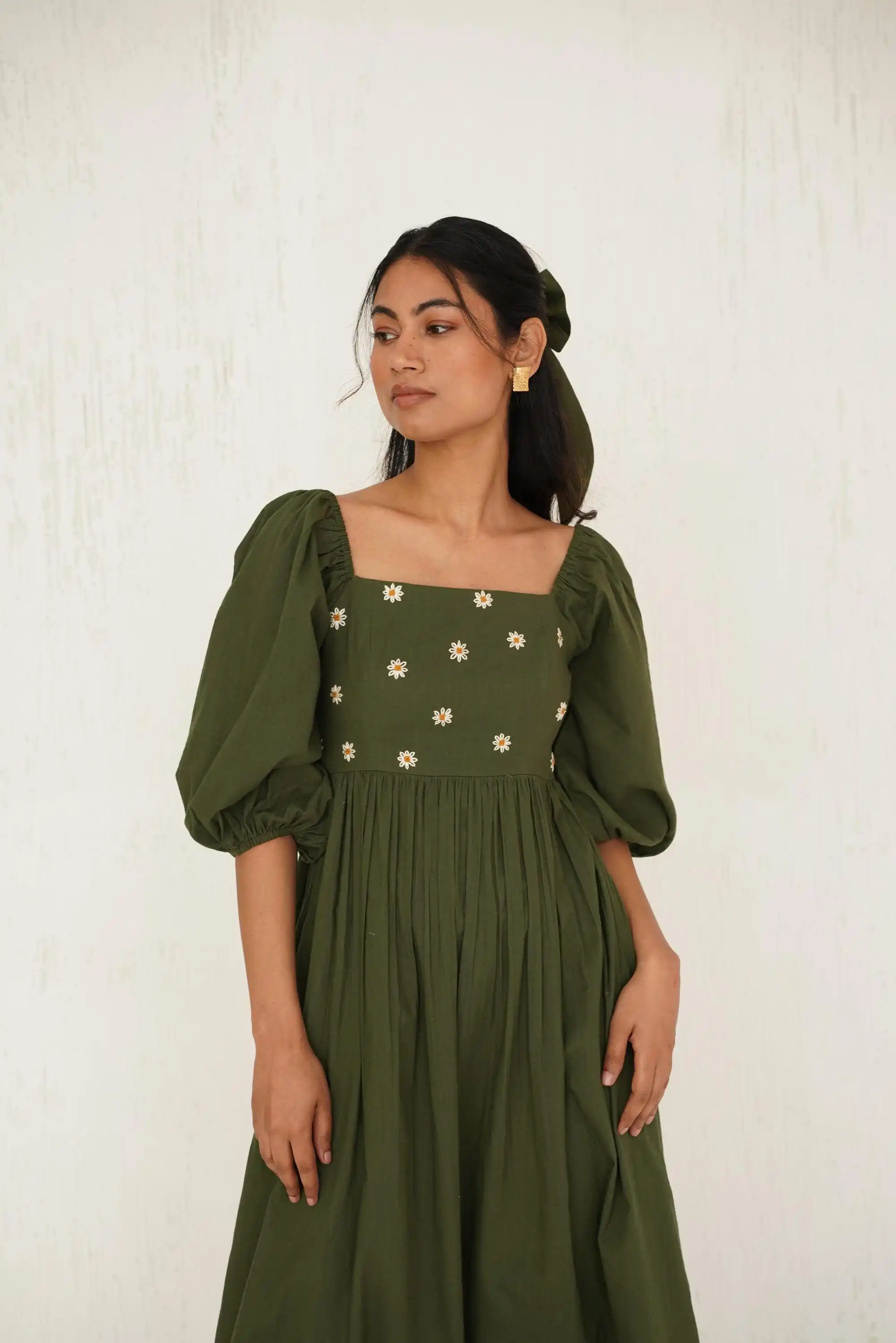 Factory Wholesale Summer Women's Solid Color Dress With Floral Embroidery Pattern Reasonable Price Customizable Washable