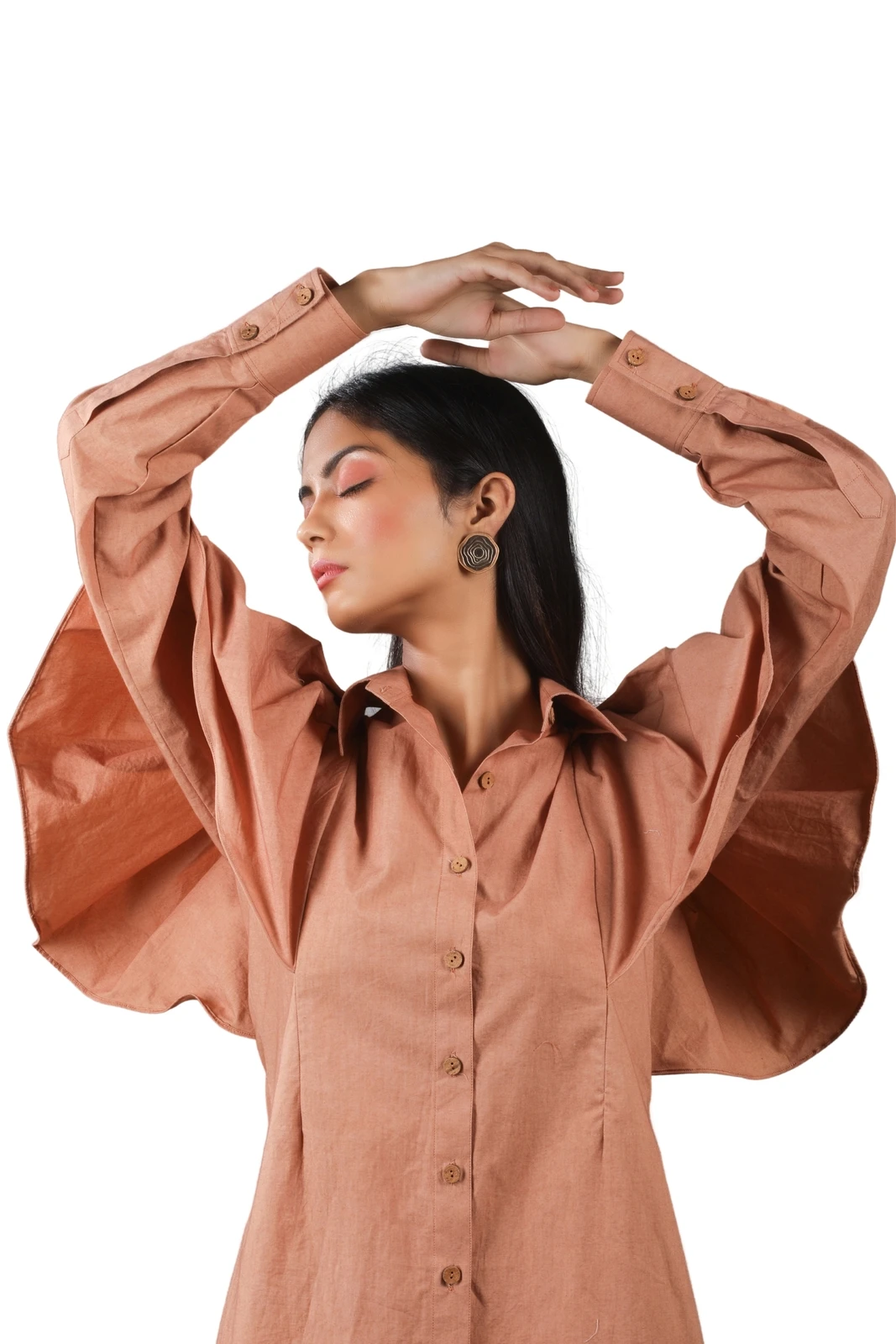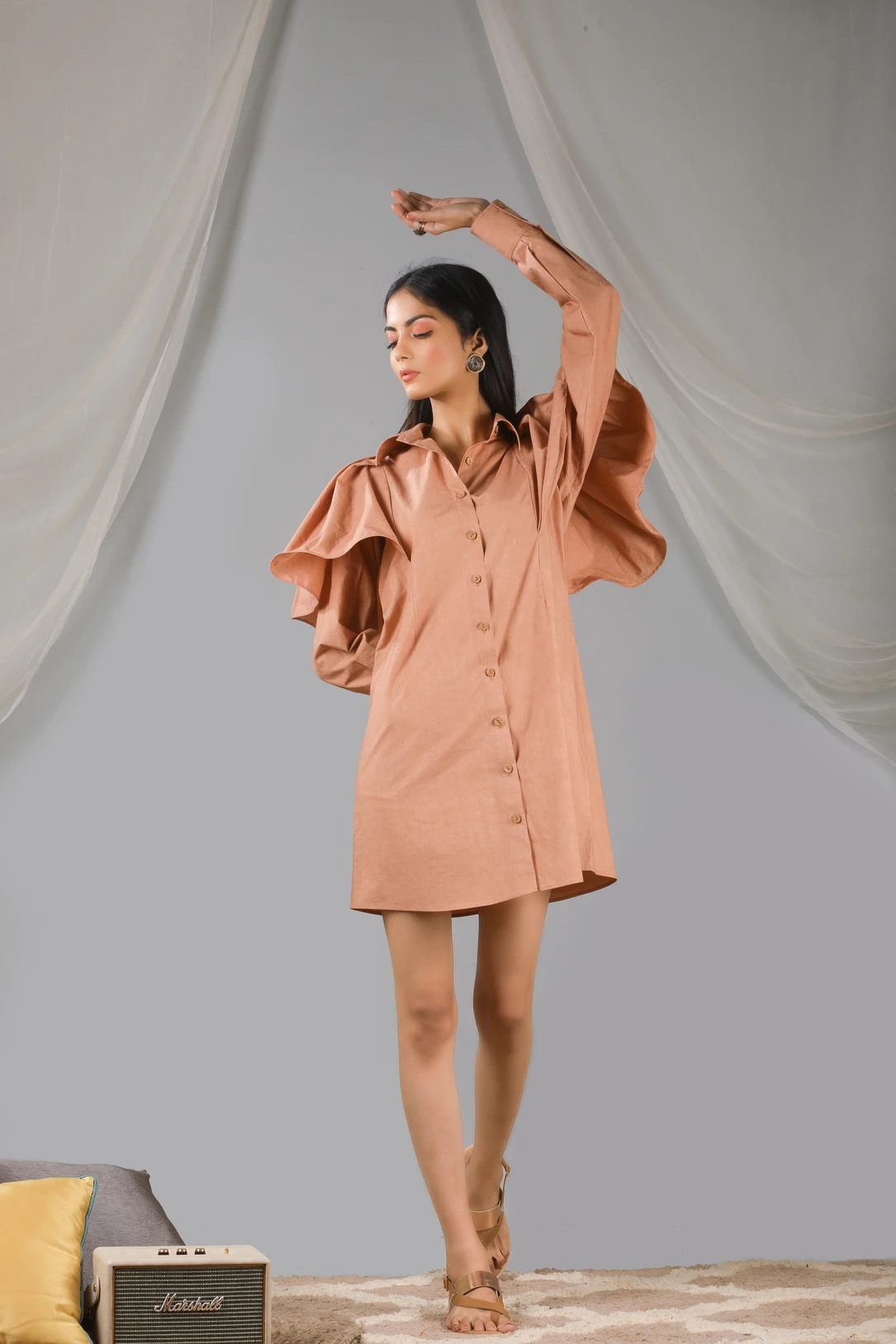 Roasted Almond Shoulder Ruffle Shirt Tunic Dress New Arrival Trending Design Western Wear Fancy Ladies Top Available Big Size