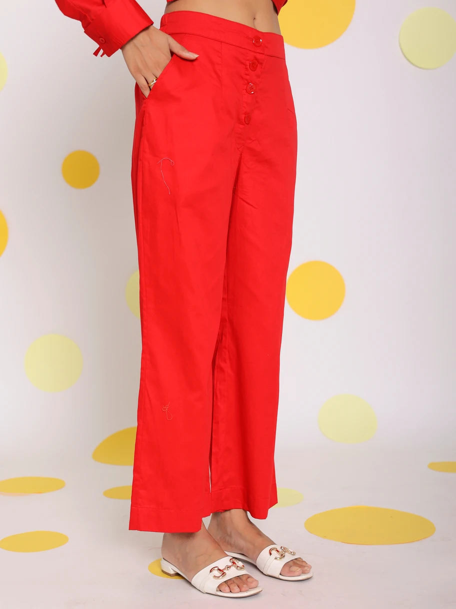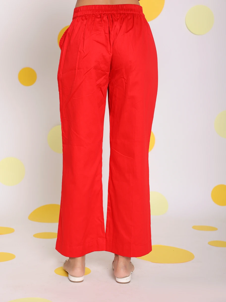 Natural Pure Cotton Red Pant Solid Stylish Long Western Pattern Cotton Pant With 2 Pockets Perfect for Women Available Big Size
