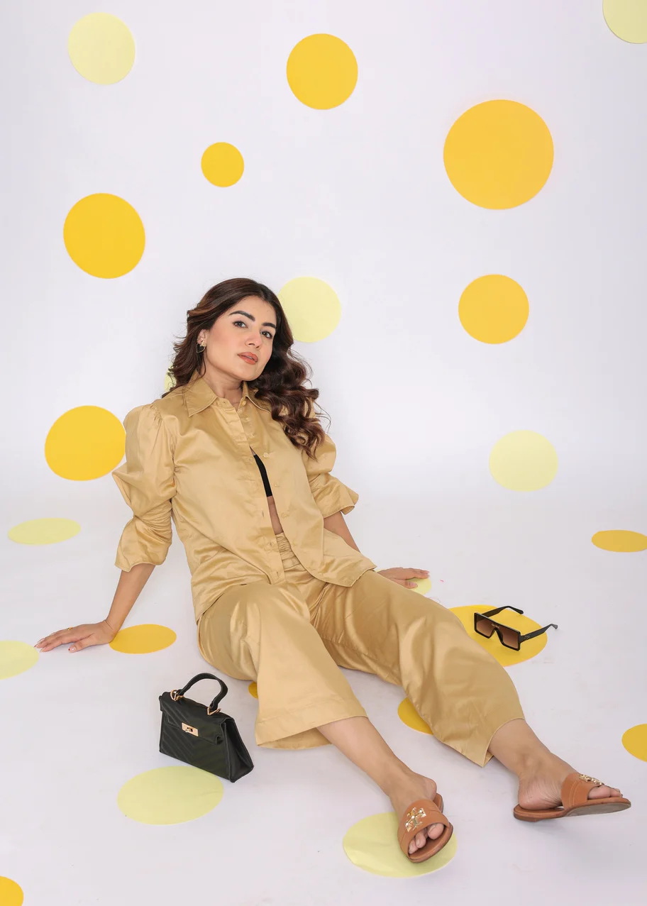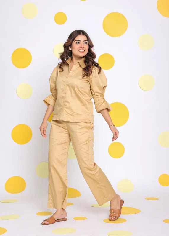 Beige Solid Western Co-ord Set Relaxed Shirt and Pant With Waist Tie up Belt and 2 Pockets Available Big Size At Wholesale Price