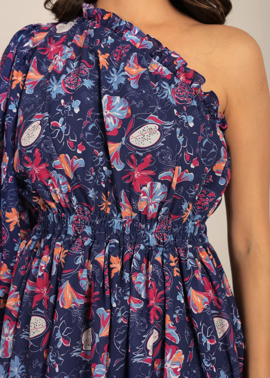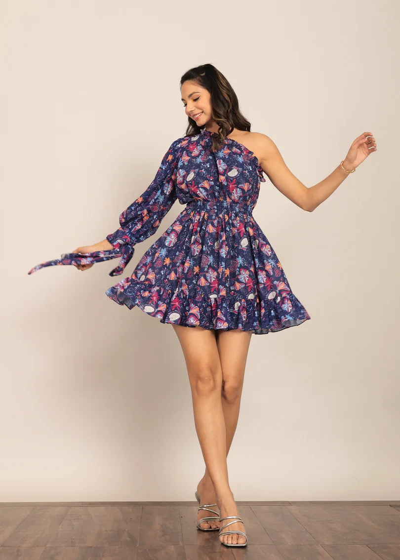 Multicolor Floral Printed One Shoulder Off Short Dress Fitted One Piece Stylish Summer & Spring Comfortable Available Big Size