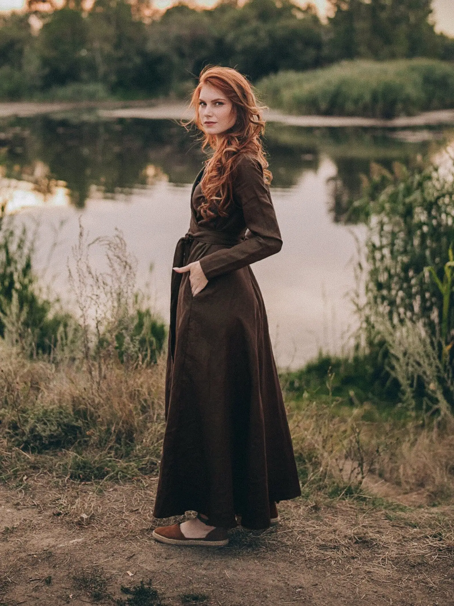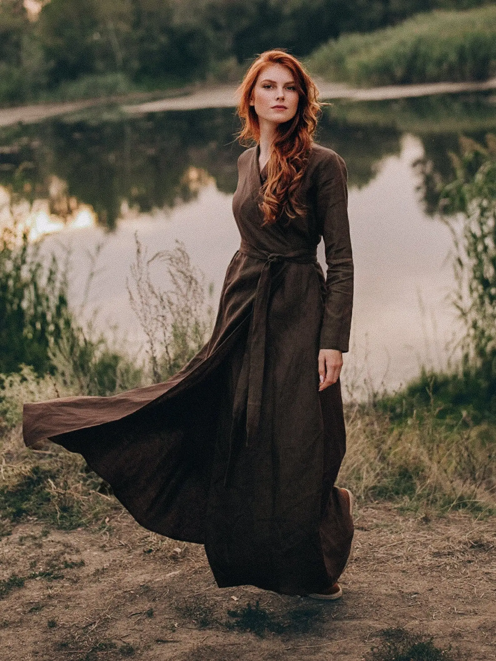2025 Summer Linen Cotton Loose Women Clothing Wrap V-Neck Linen Dresses Summer Linen Maxi Dress With Belt Long Sleeves Maxi