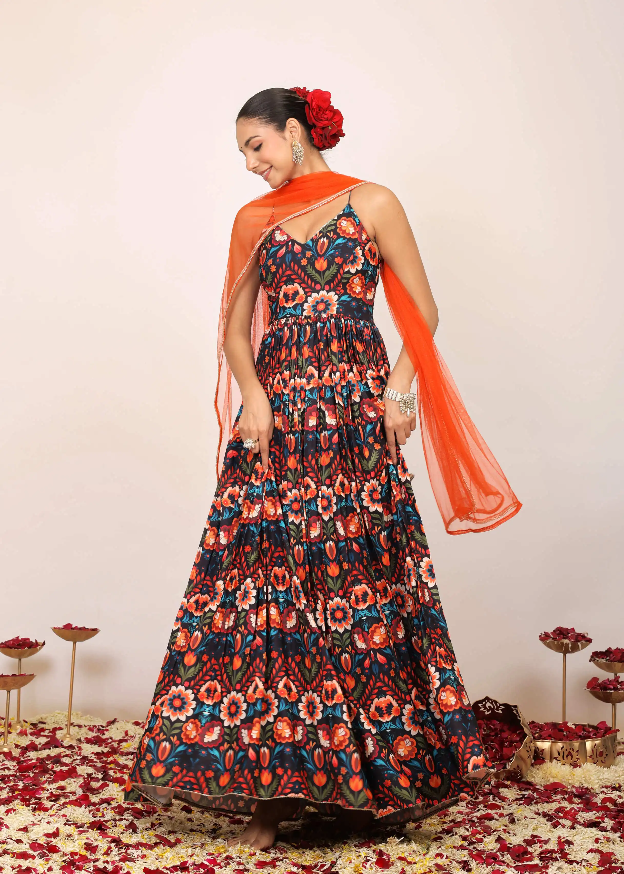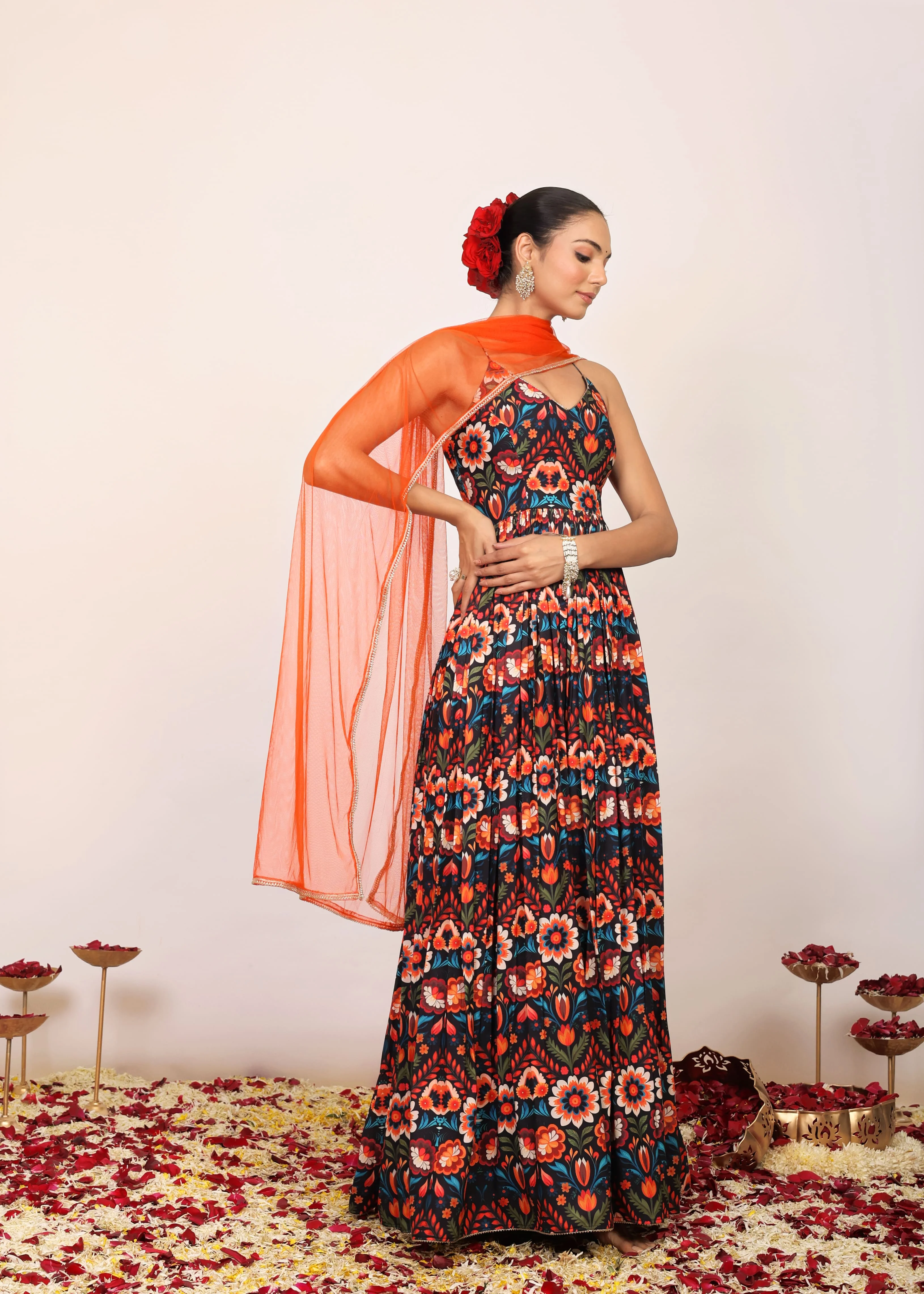 Flonna Georgette Multicolor Print Dances Kurta Sleeveless Gracefully Anarkali Kurta Across The Floor Length Anarkali Kurta