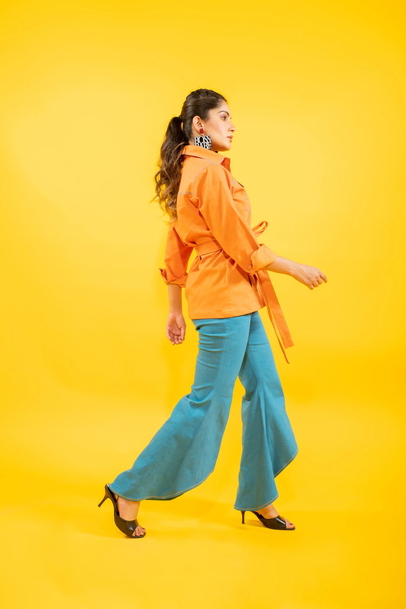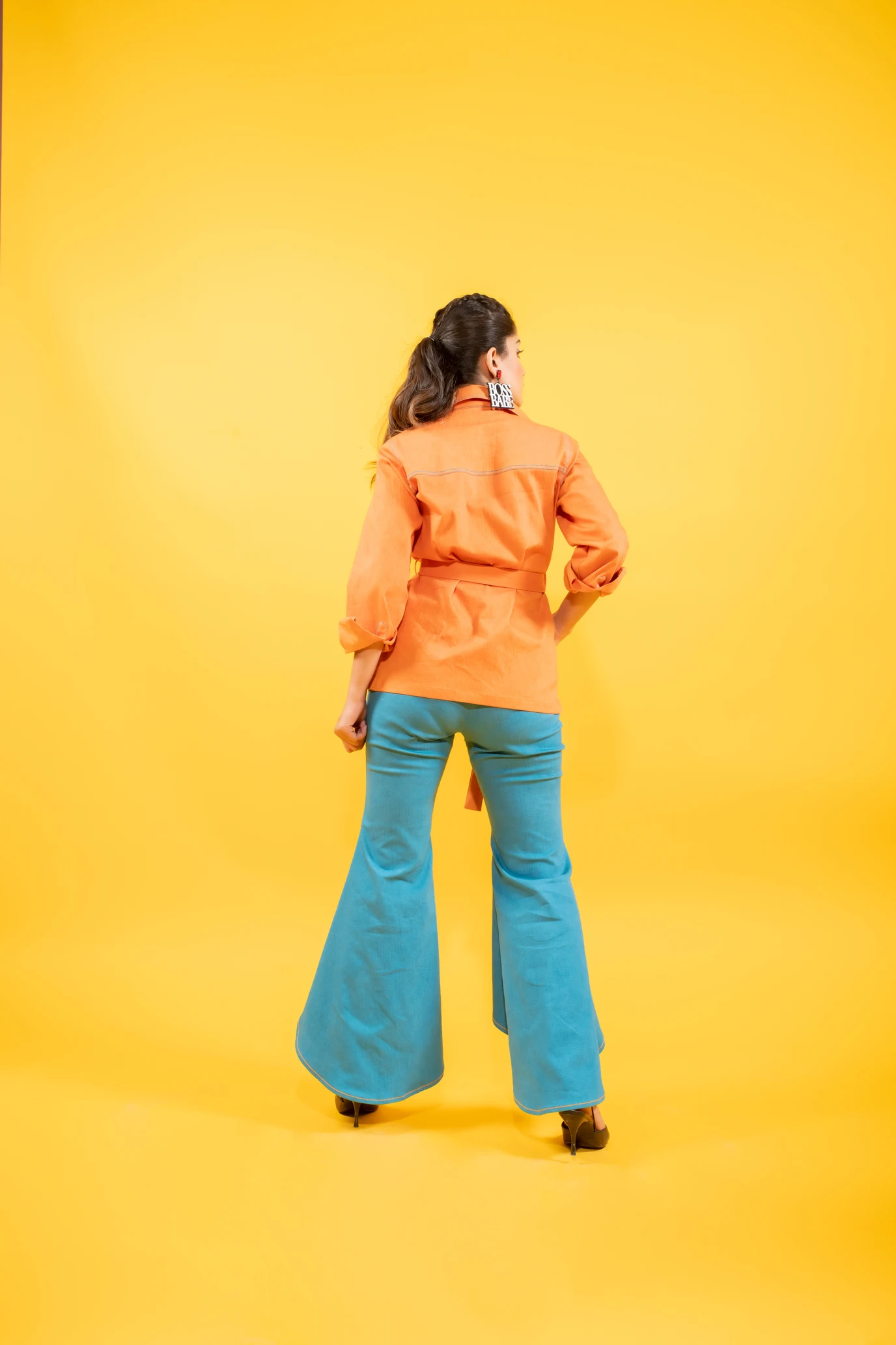Sunrise Orange Shirt Jacket With High-low Denim Pants Set New Arrival Trending Design Two Piece Co Ord Set For Women & Girls