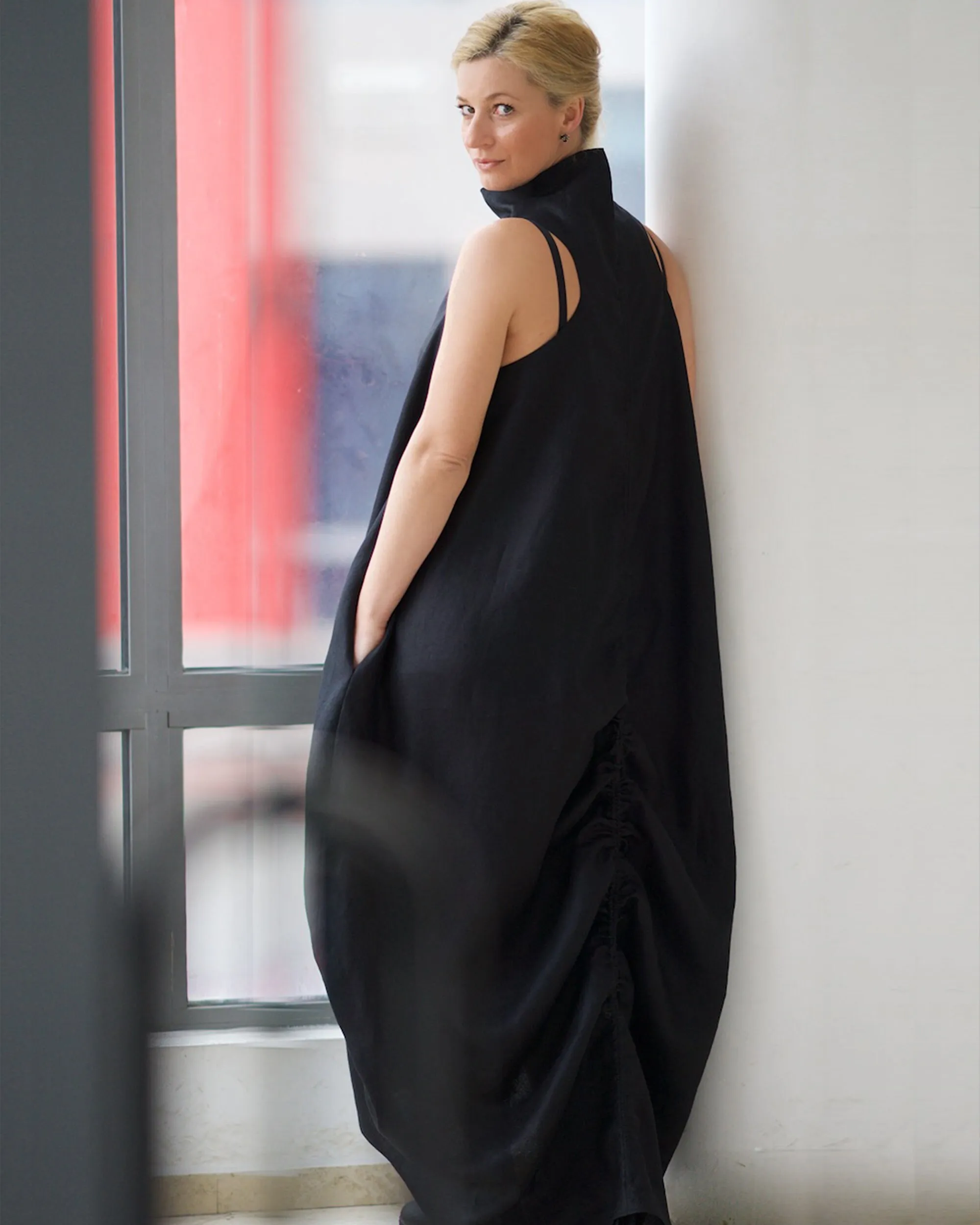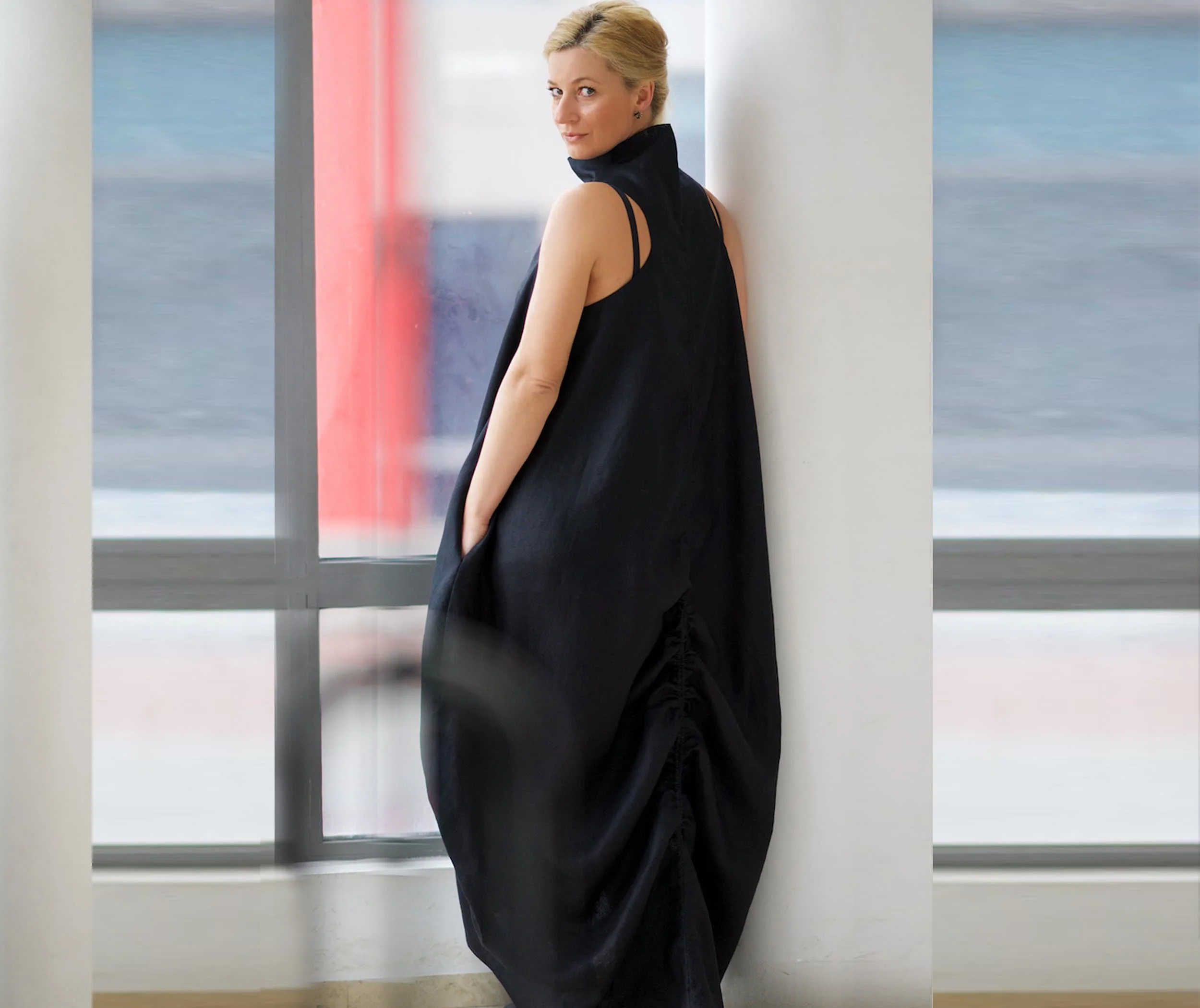 ZYHT 73849 European Wholesale Fashion Casual One Shoulder Ruched Maxi Dress Side Slit Pleated Long Sleeve Dresses for Women
