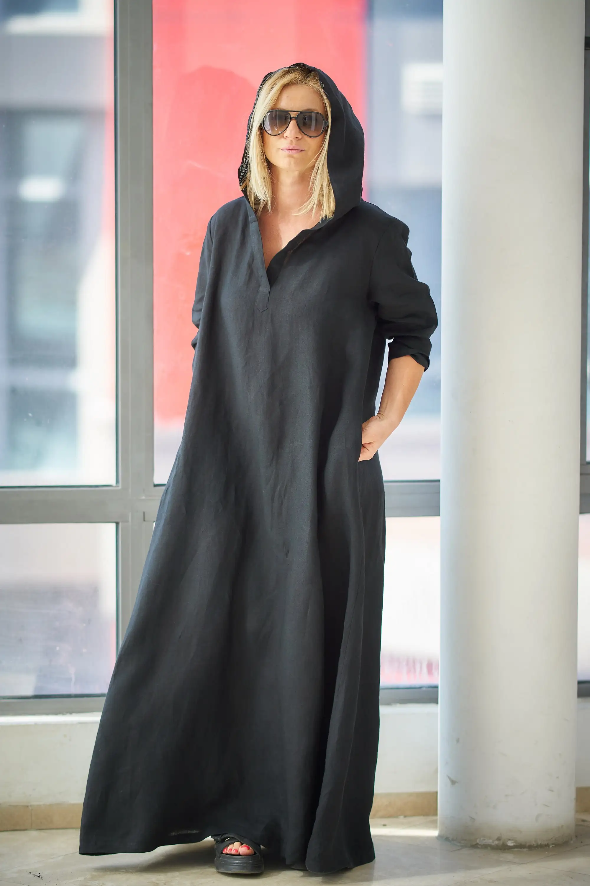 Linen Maxi Dress Black Long Dress Linen Dress Black Maxi Dress Linen Clothing Plus Size Gothic Clothing Linen Kaftan Dress