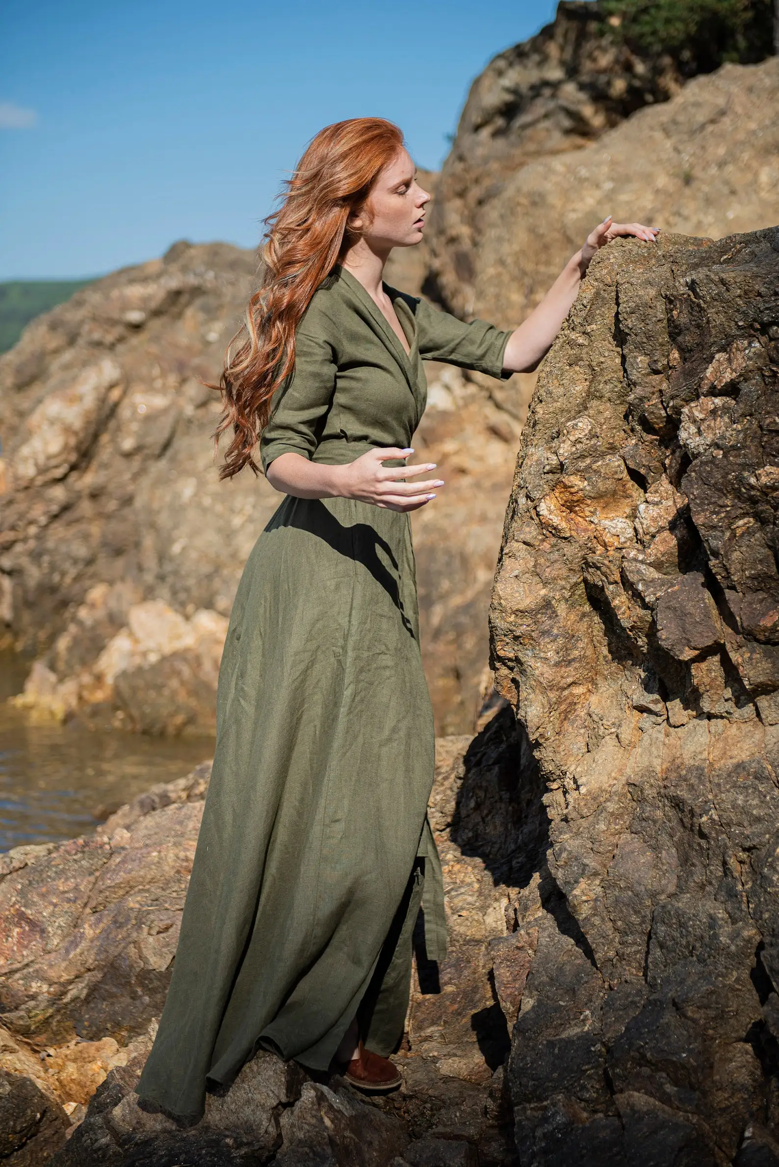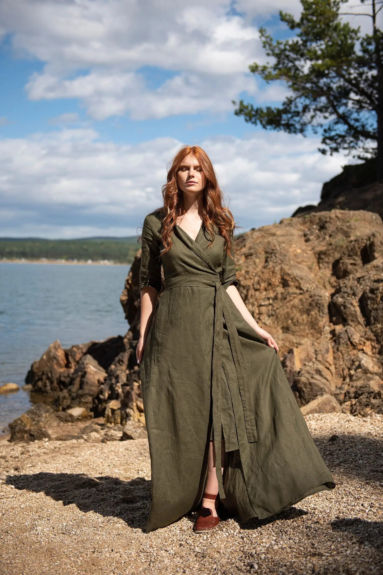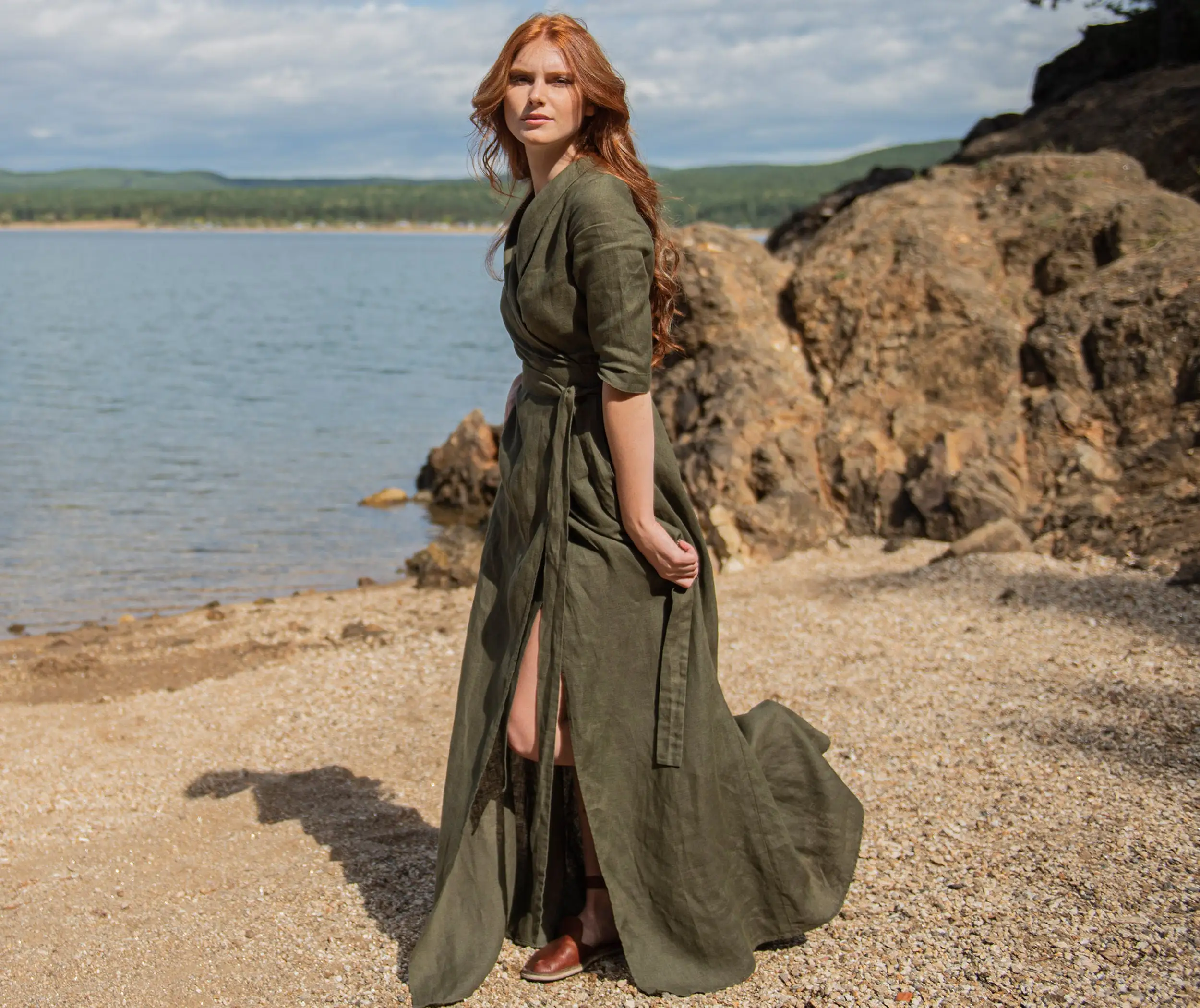 Linen Maxi Dress Green Women Linen Dress Linen Kaftan Long Wrap Linen Wrap Maxi Linen Summer Dress Linen Maxi Dress With Belt