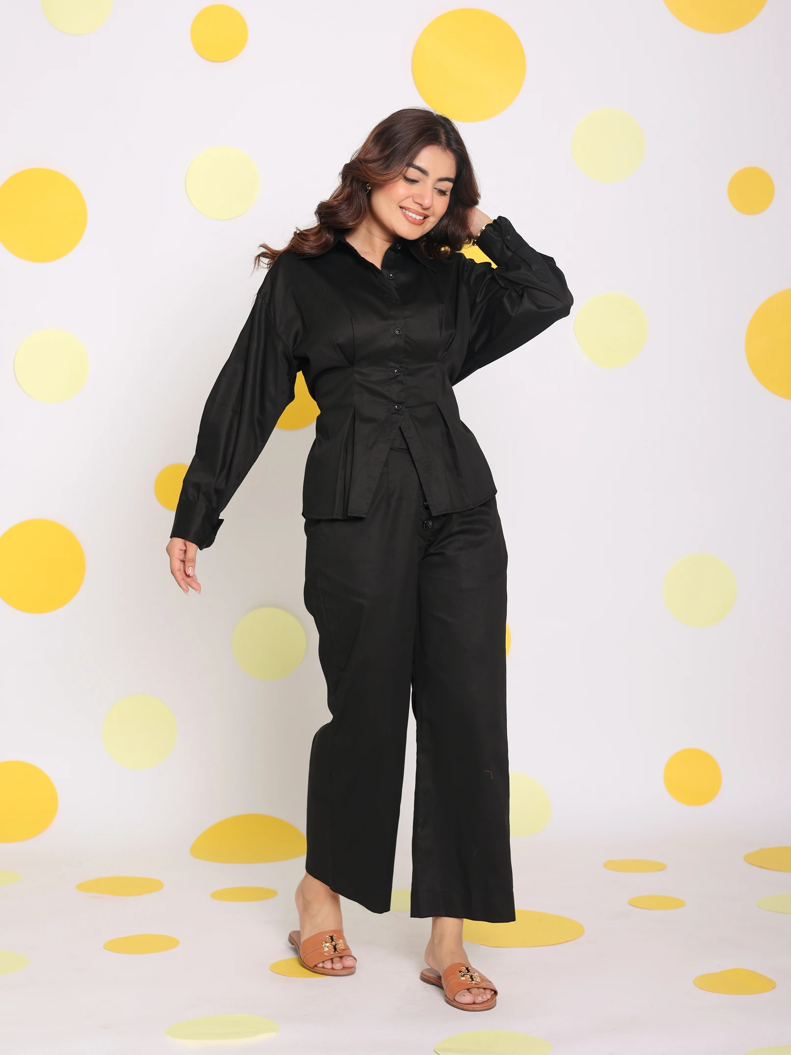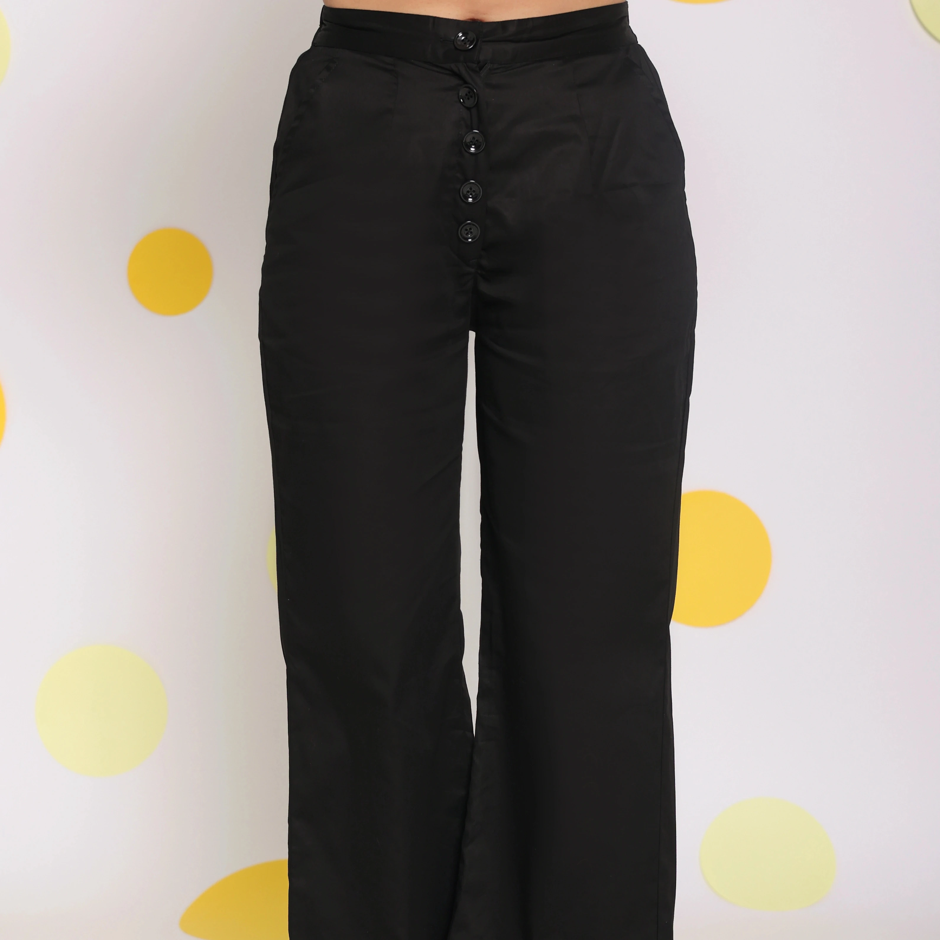 Women's Solid Stylish Black & White Pure Cotton Pant Long Western Pattern Casual Dresses with 2 Pockets One Piece Back Design