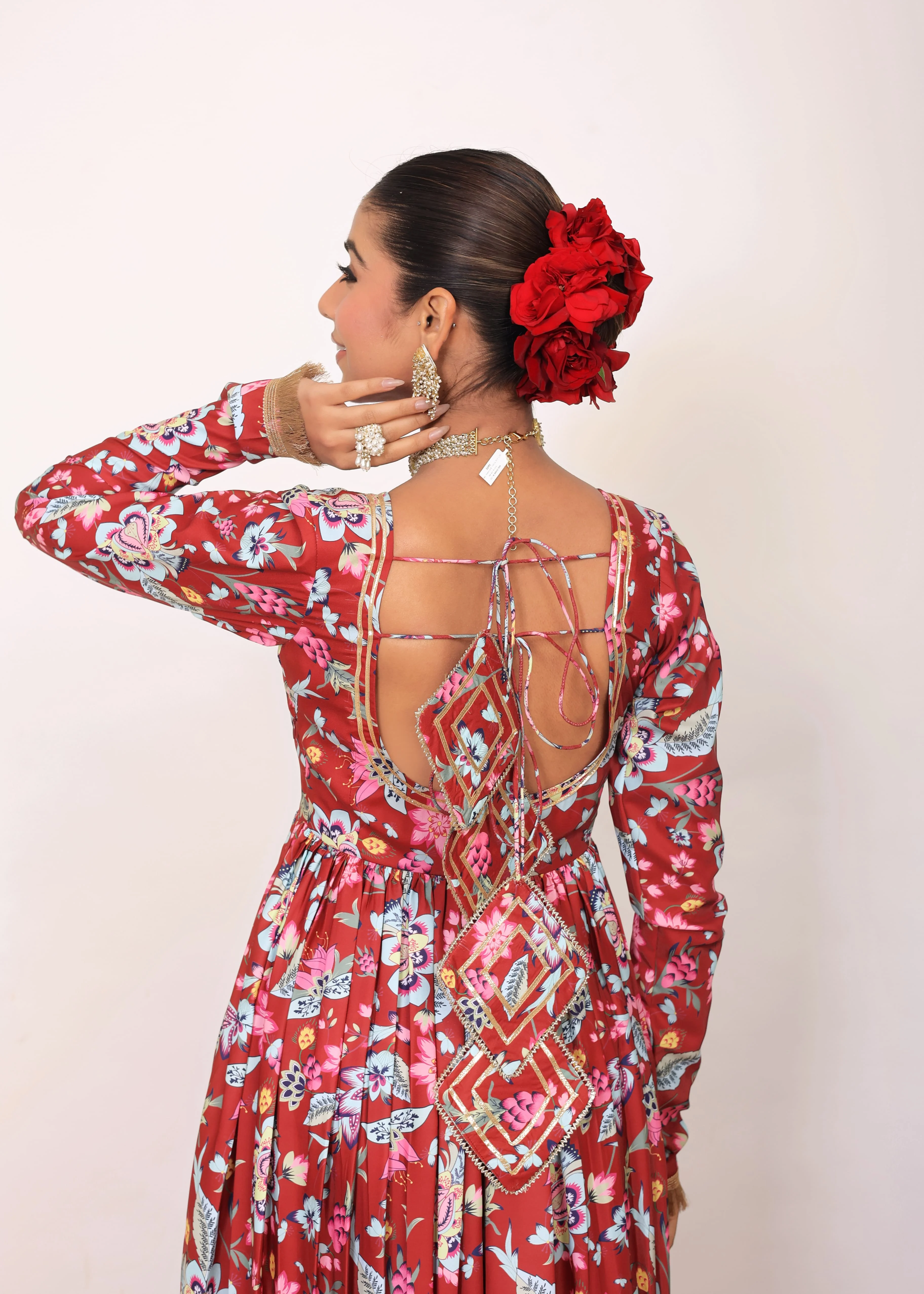 ZYHT 73906 Long Sleeve Deep V Neck High Slit Sexy Elegant Knot Long Floor Length 3D Flower Dark Green Purple Women Evening Dress