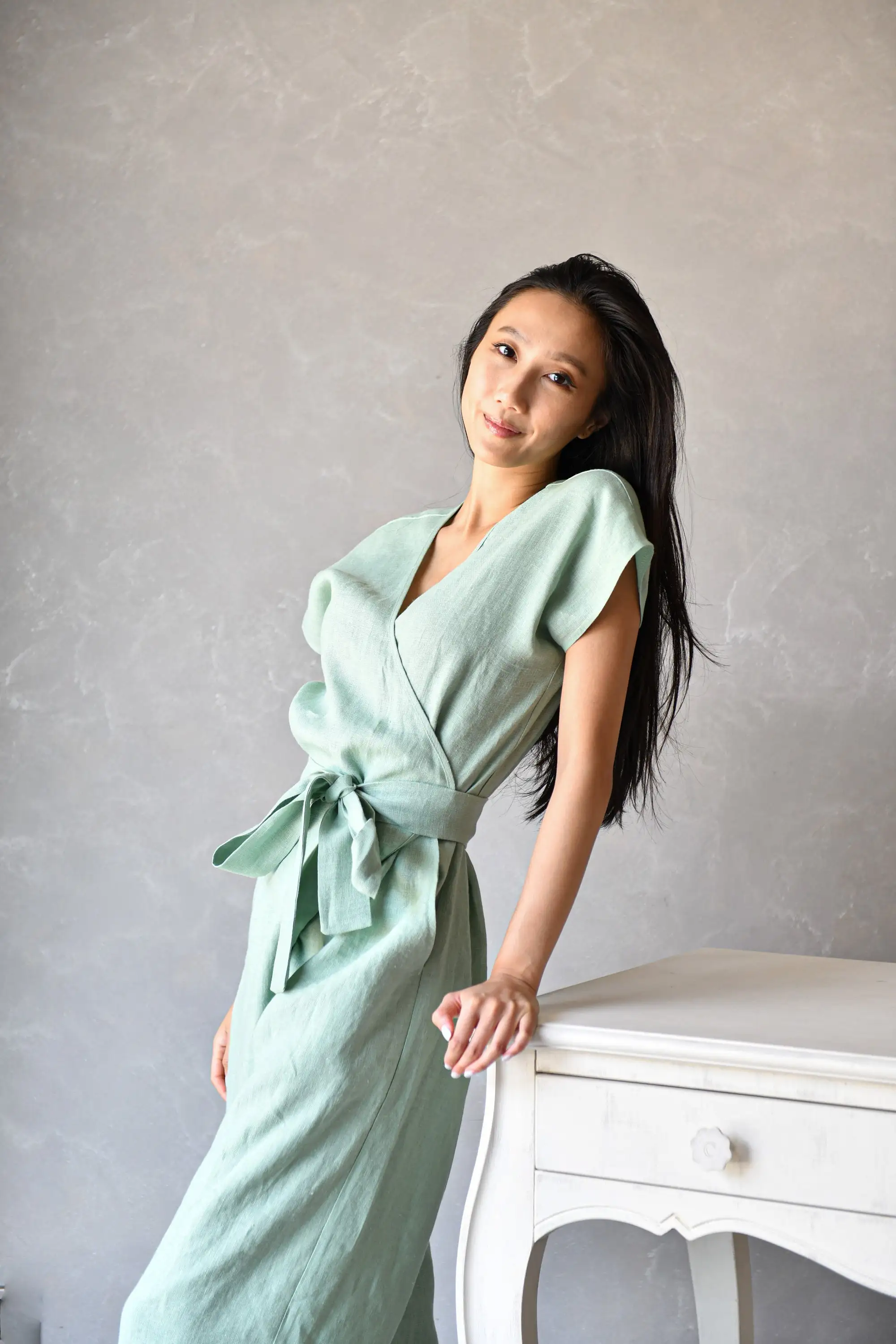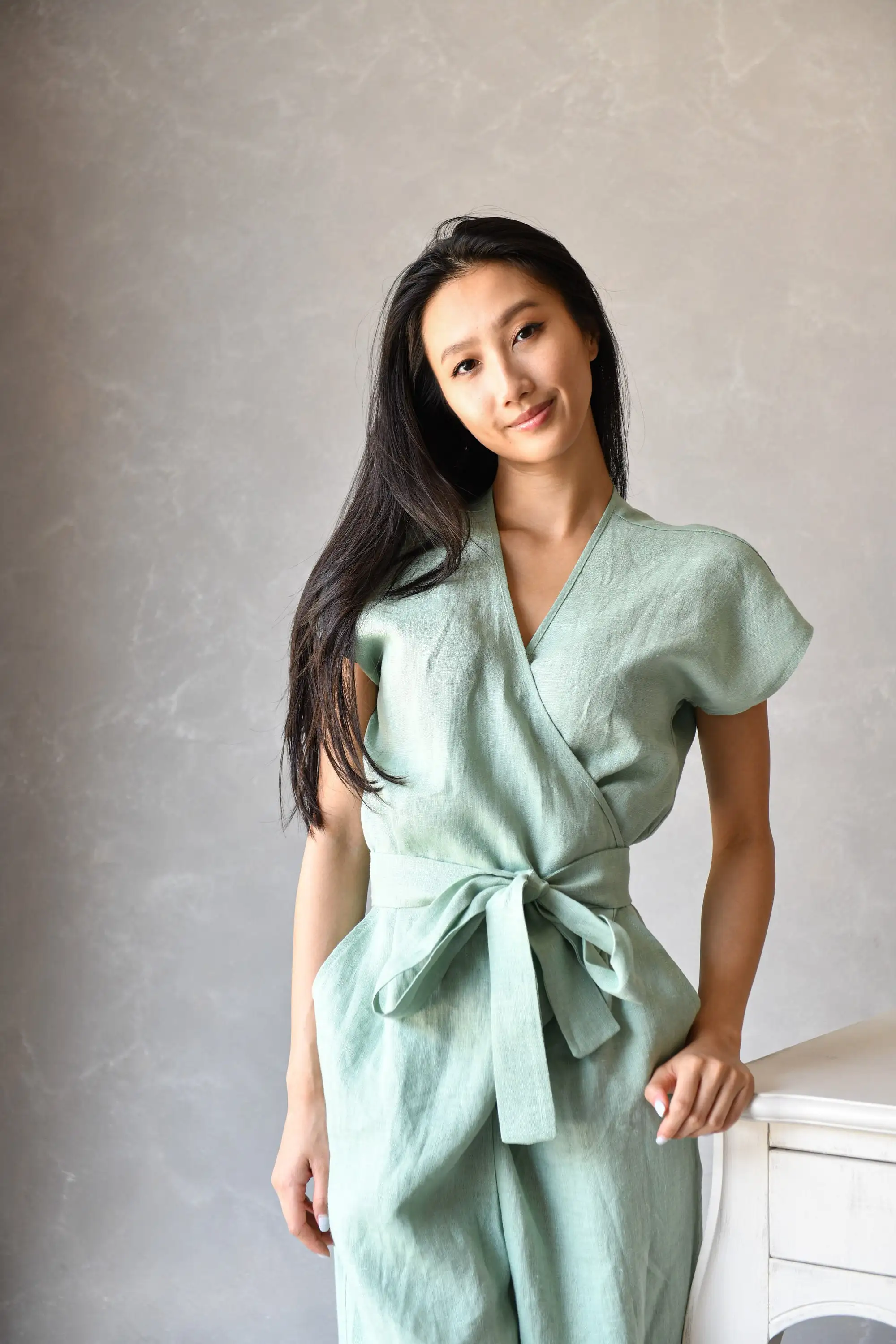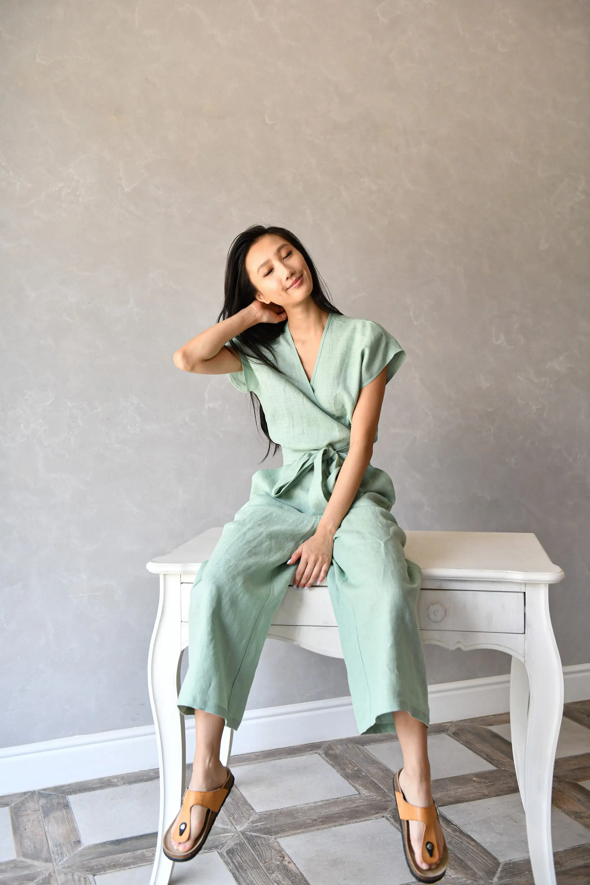 Summer Loose Overalls Rompers Best Quality Women's Linen Mid-belt Long Jumpsuit Summer Fashion Women's Solid Color Linen Cotton