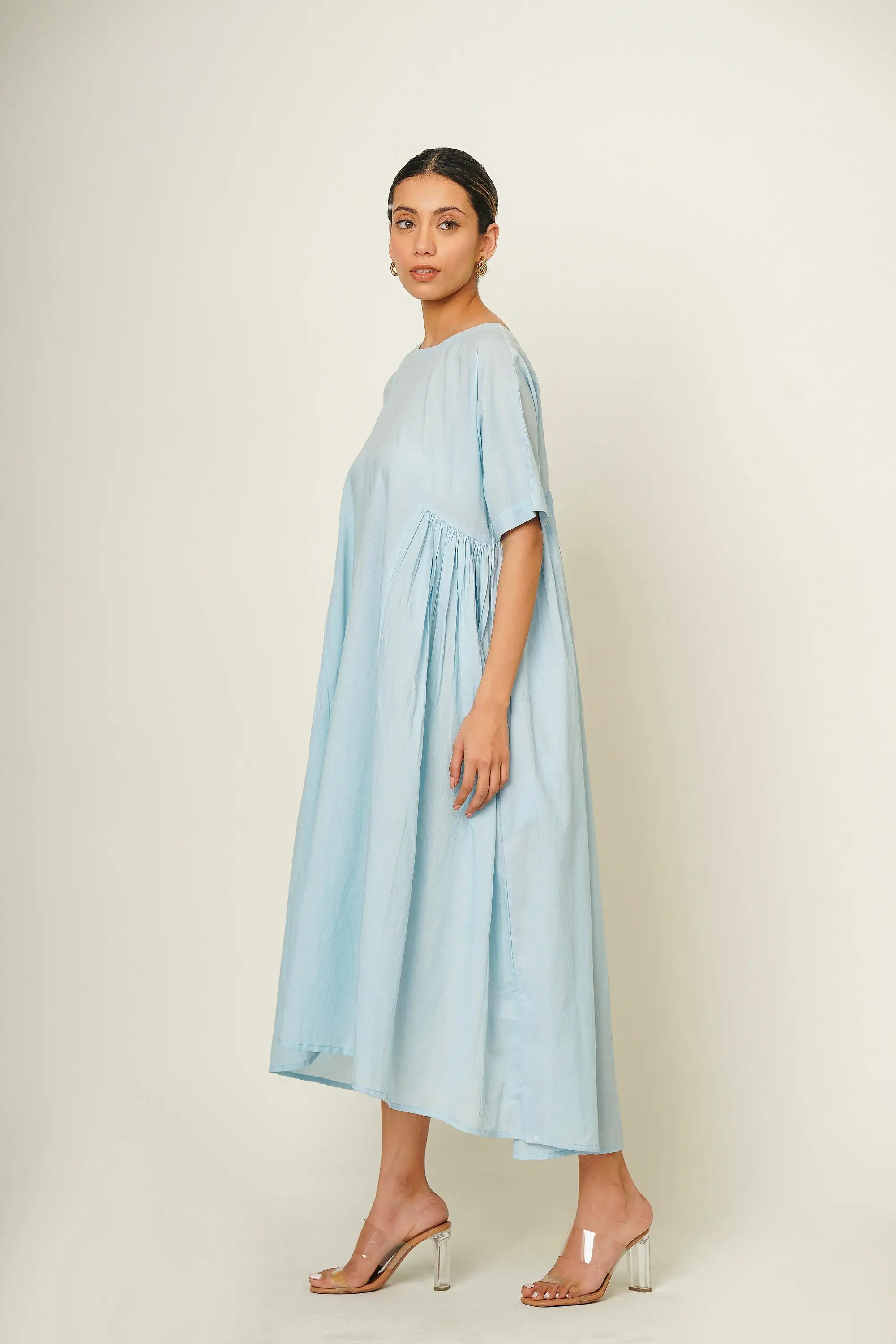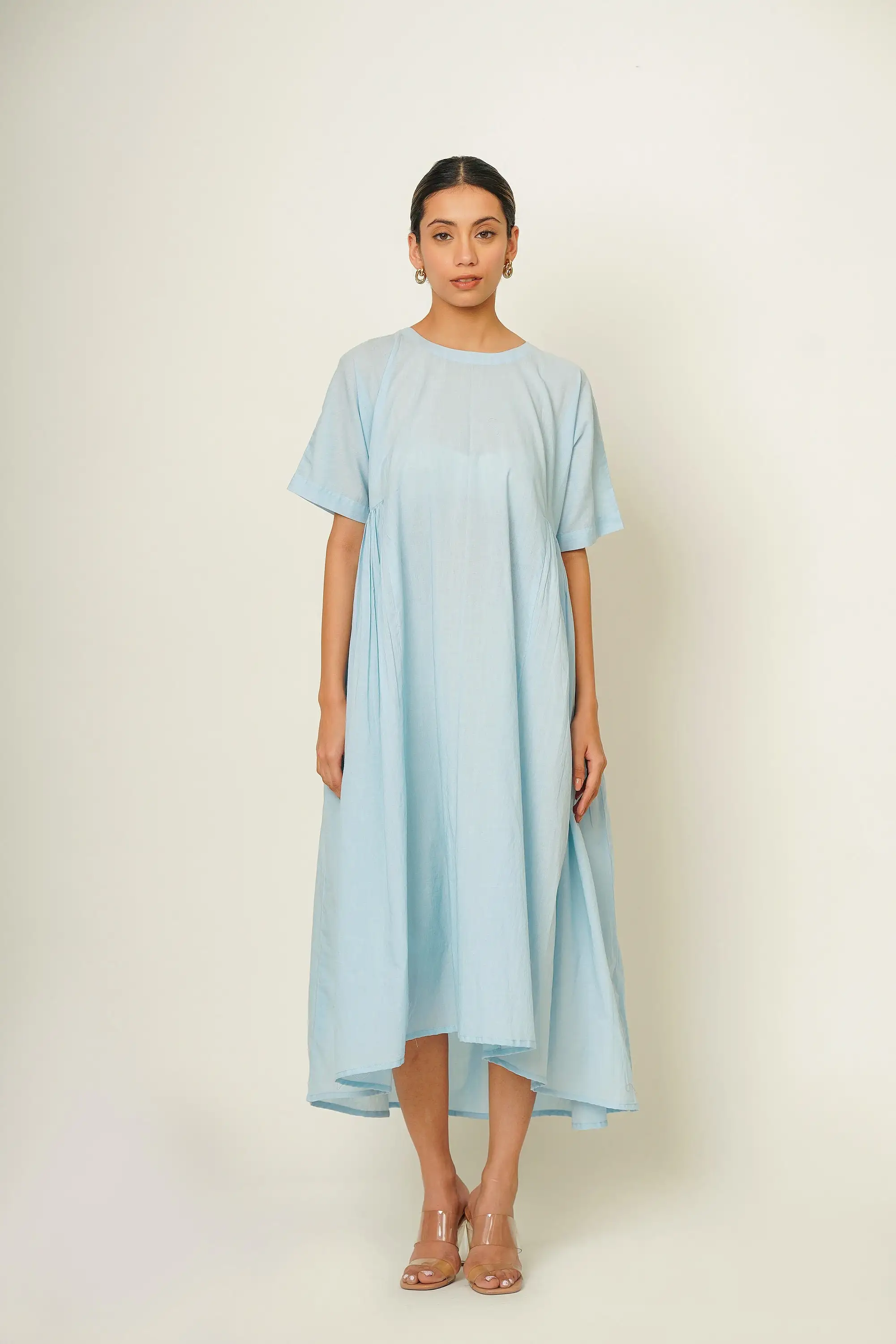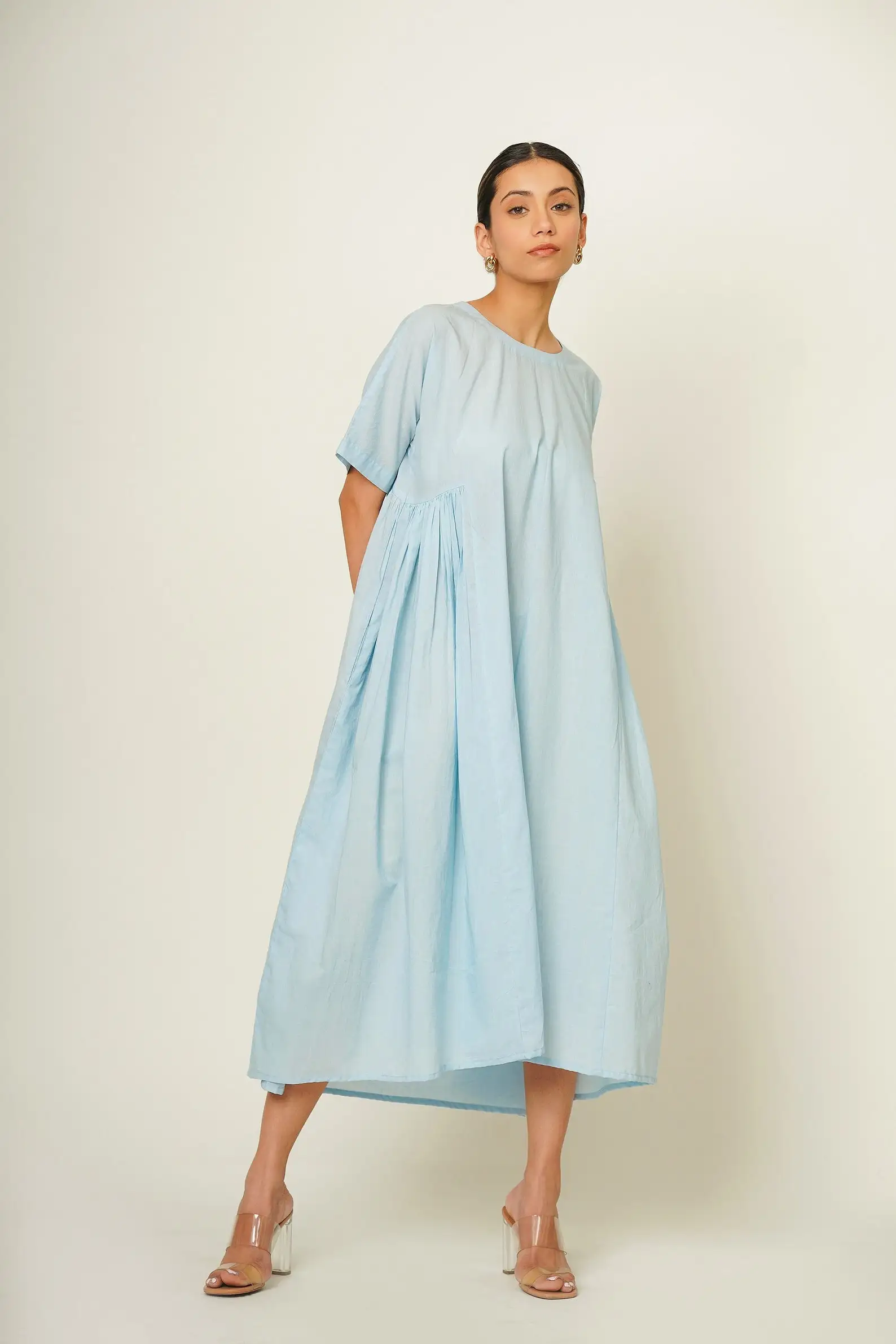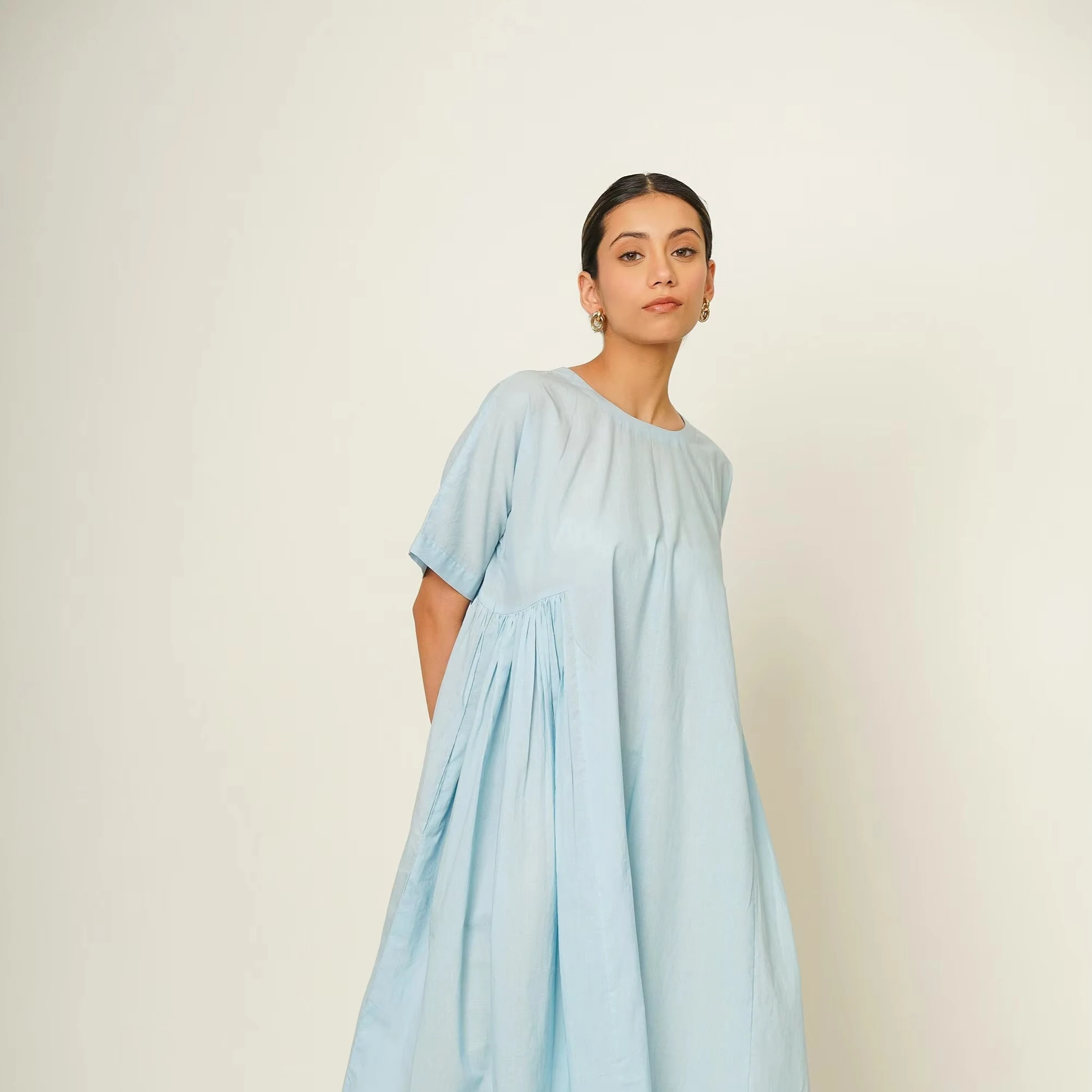 100% Natural Cotton Dress With Pockets Plus Size Cotton Light Blue Dress With Pockets Summer Comfortable Casual Daily Wear