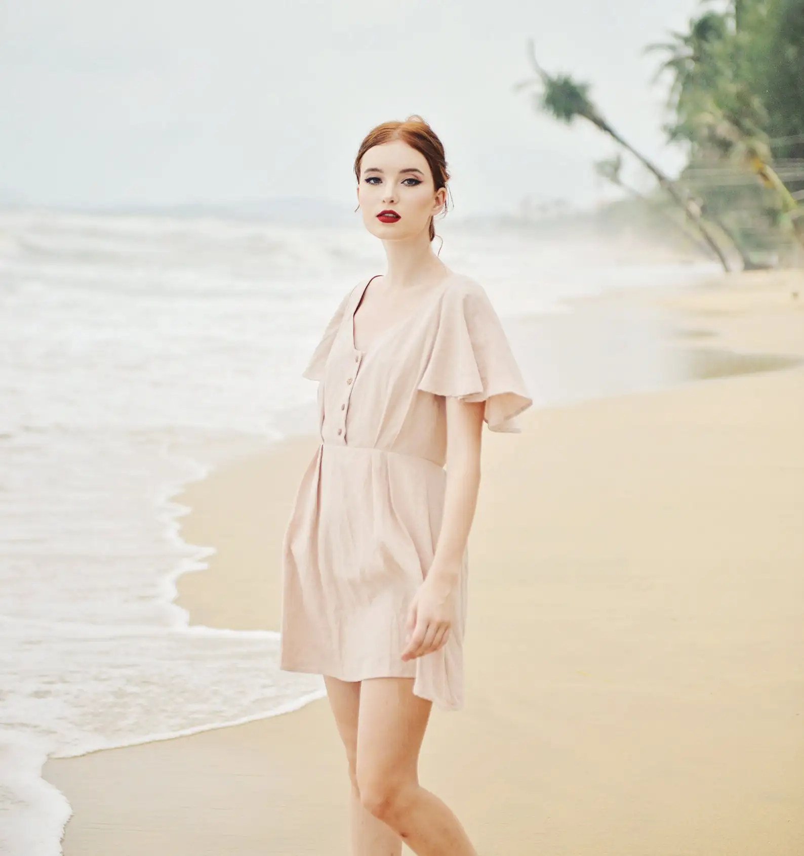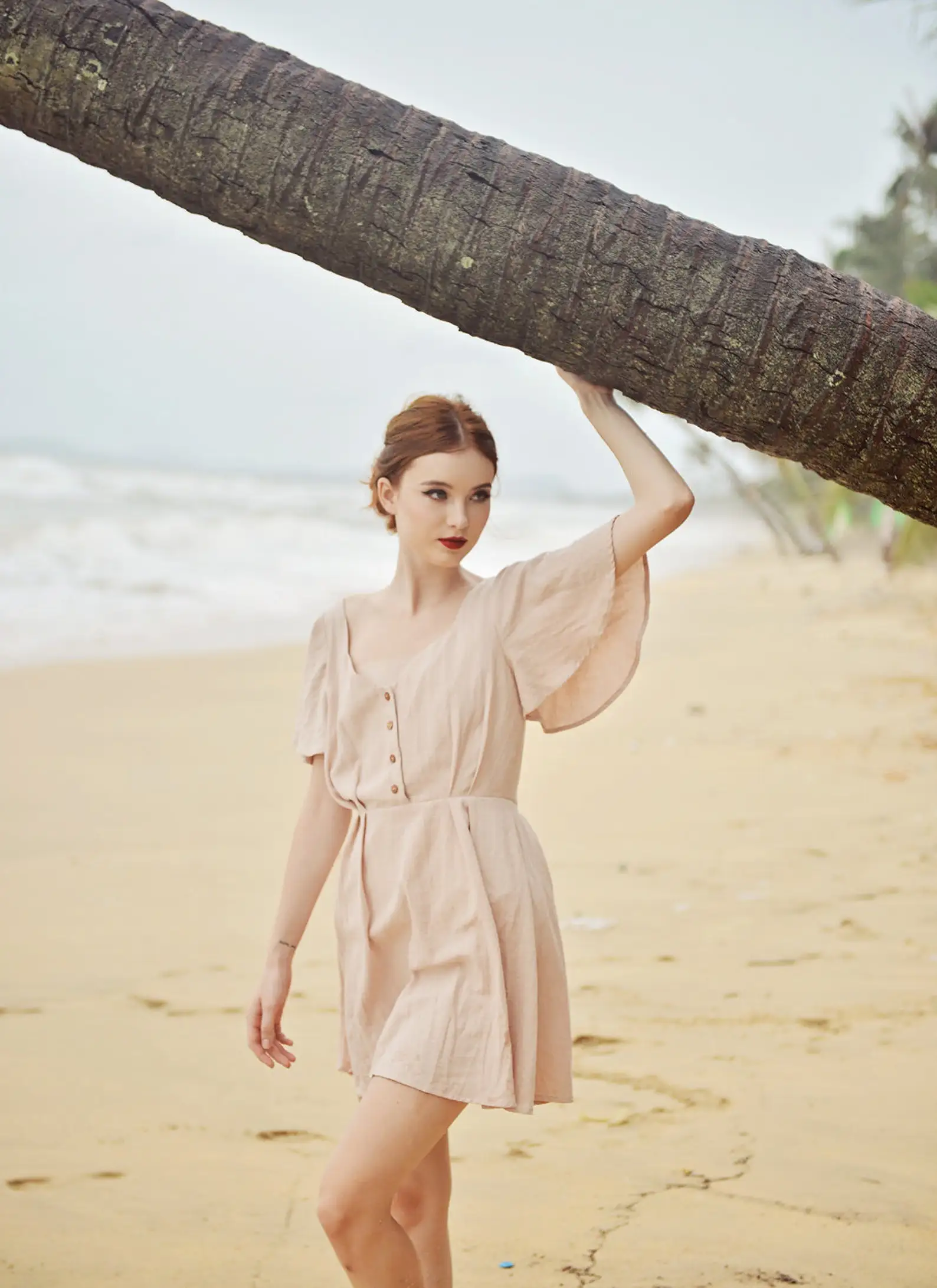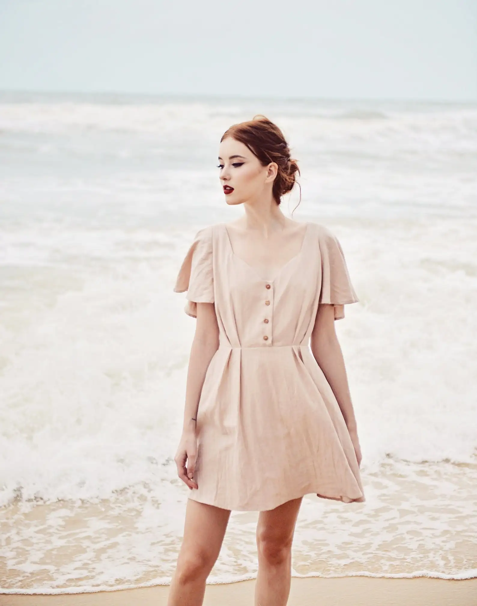 Beautiful Linen Mini Skater Dress Casual Style Short Sleeves Tunic Cut Plain Dyed Plus Size Eco-Friendly Breathable Woven