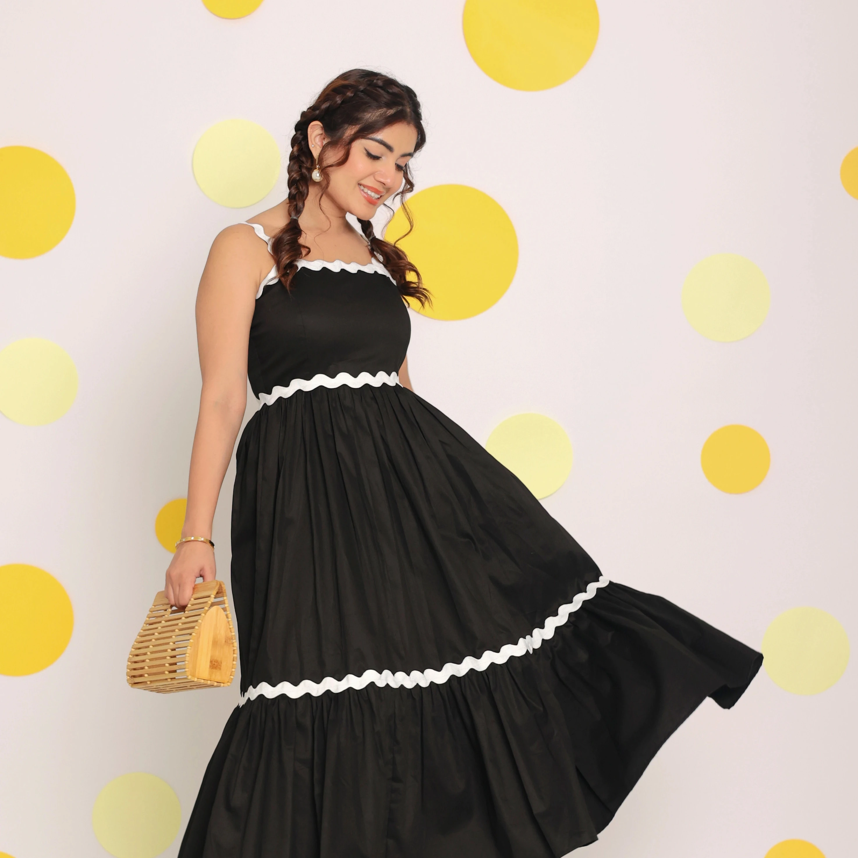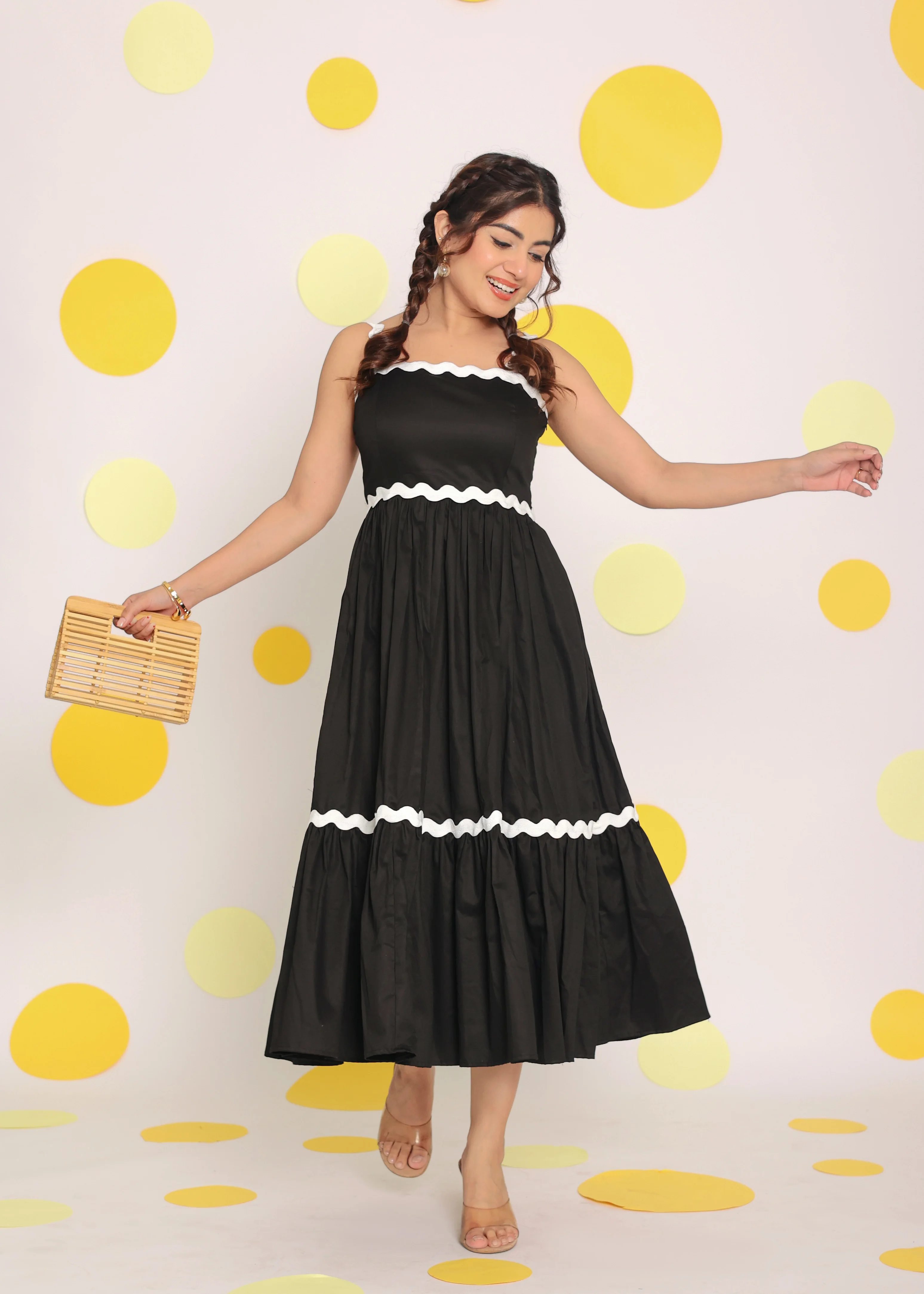 Black Cotton Midi Dress Summer Dress Fitted at Burst Dress Cotton Western Pattern Corset Fitted Midi at Available Big Size