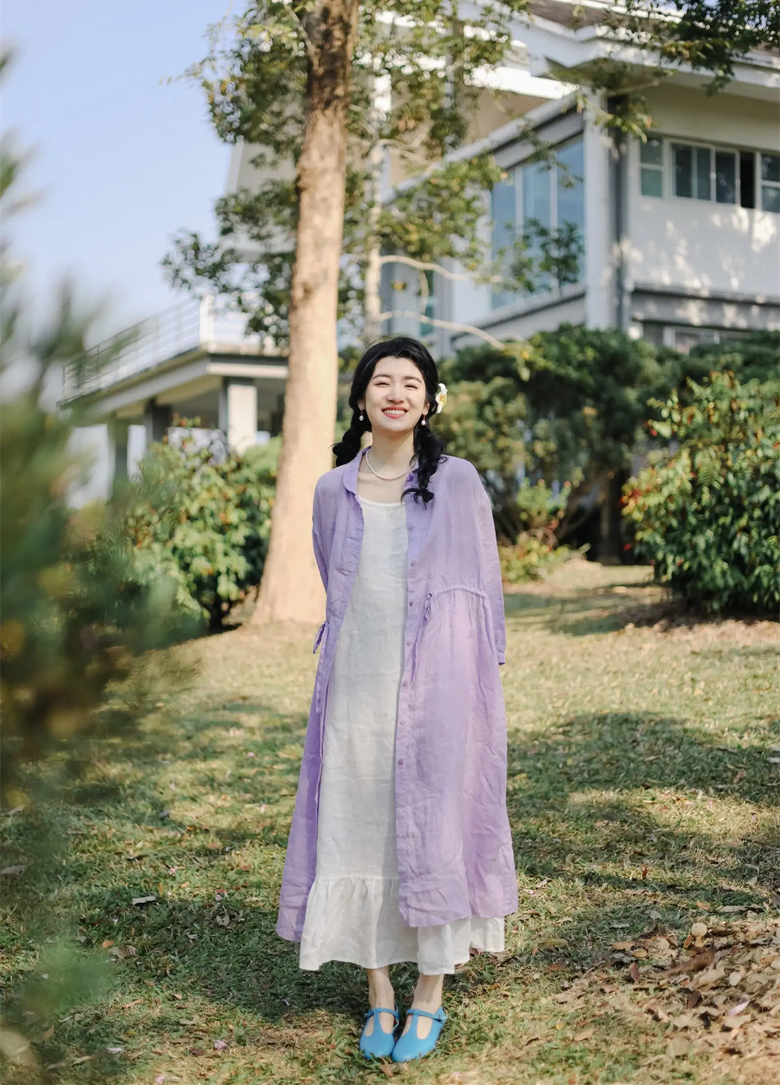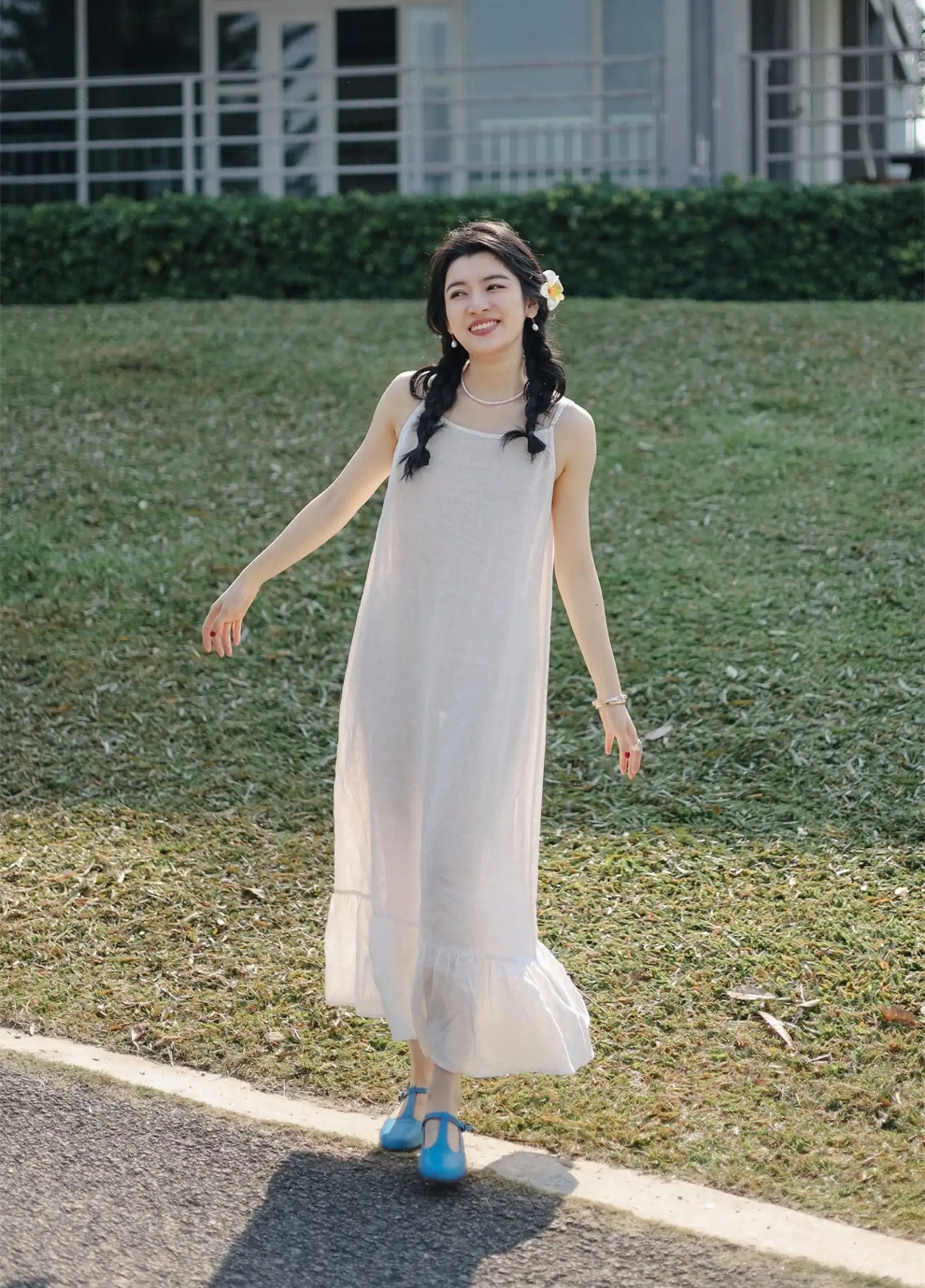 Summer Boho Midi Sundress Custom White Linen Strap Dress Plain Dyed Natural Sleeveless Straight Silhouette Cami Slip Solid