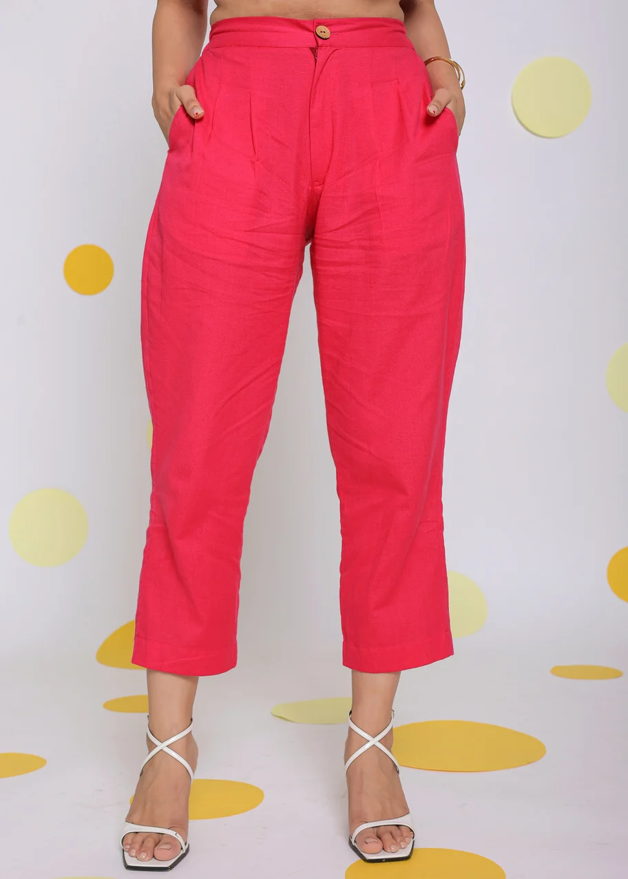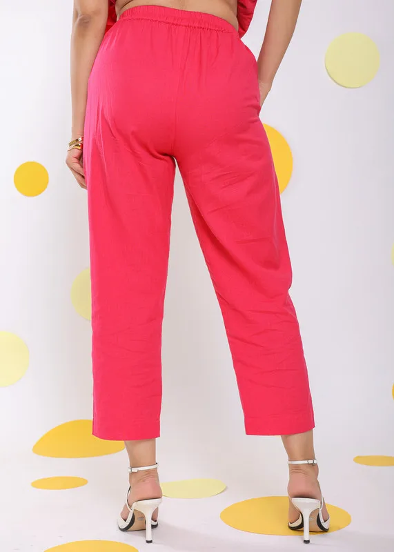 Summer Western Style Women's Linen Pant Hot Pink 2 Pockets Available Big Sizes Plain Dyed A-Line Natural Waistline Casual