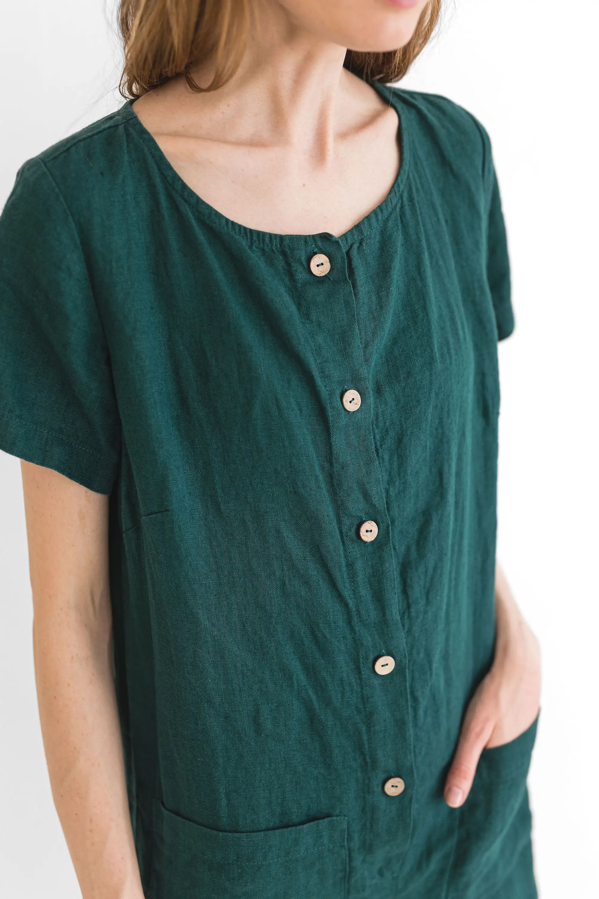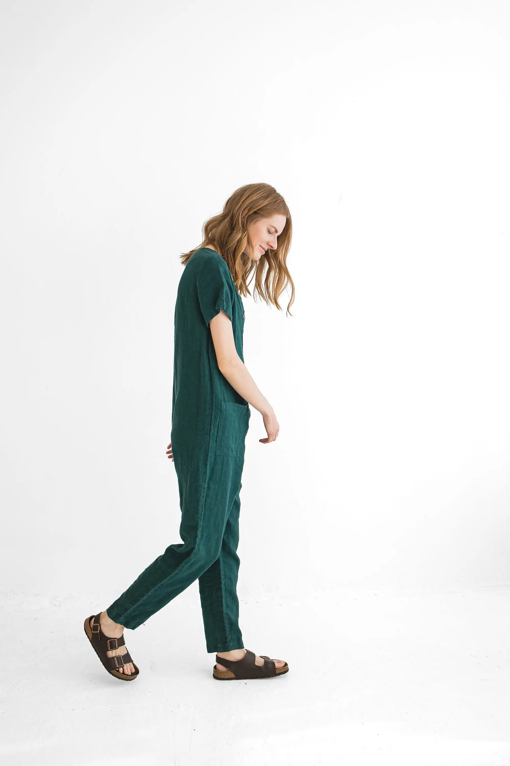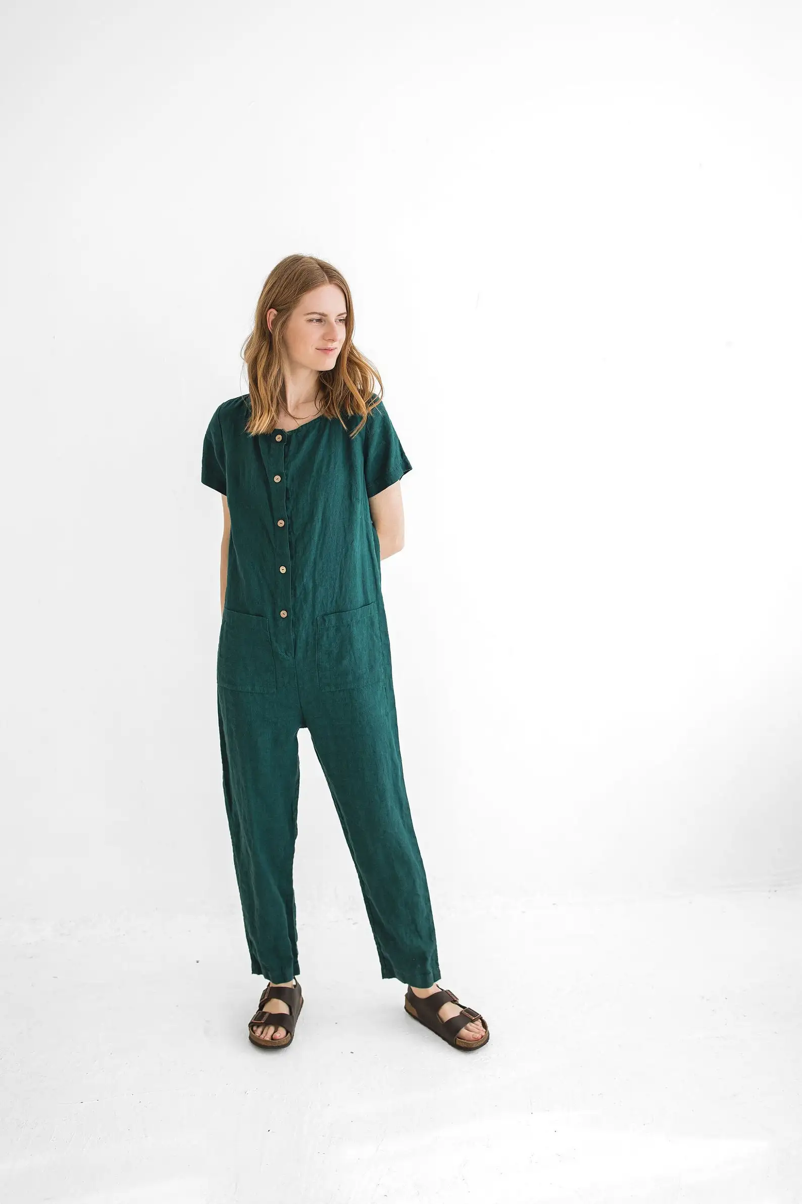 Women's Linen Casual Jumpsuit Solid Decoration Regular Elastic Waist Wide Pants Pockets Woven Bodysuit Sweet Plain Dyed