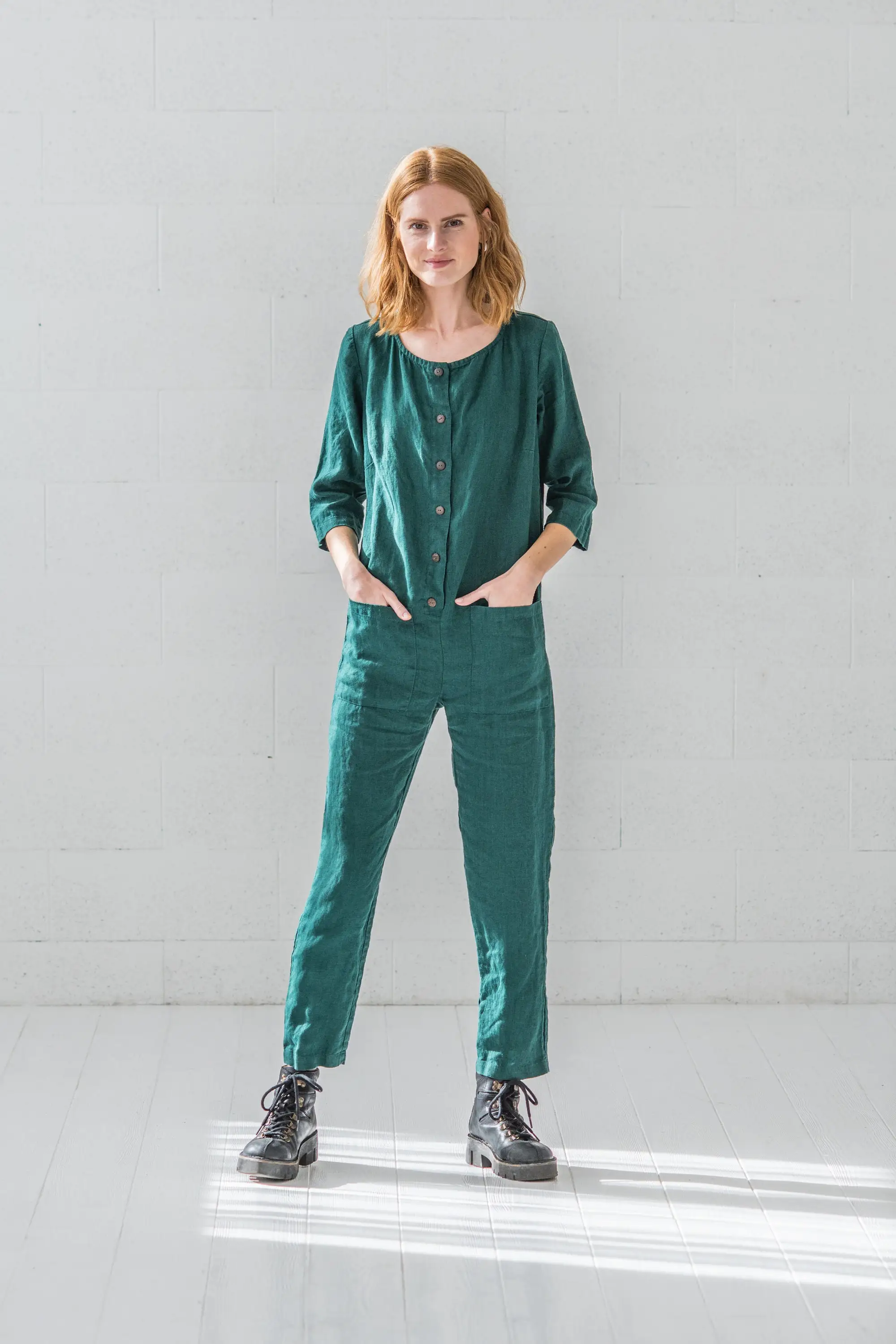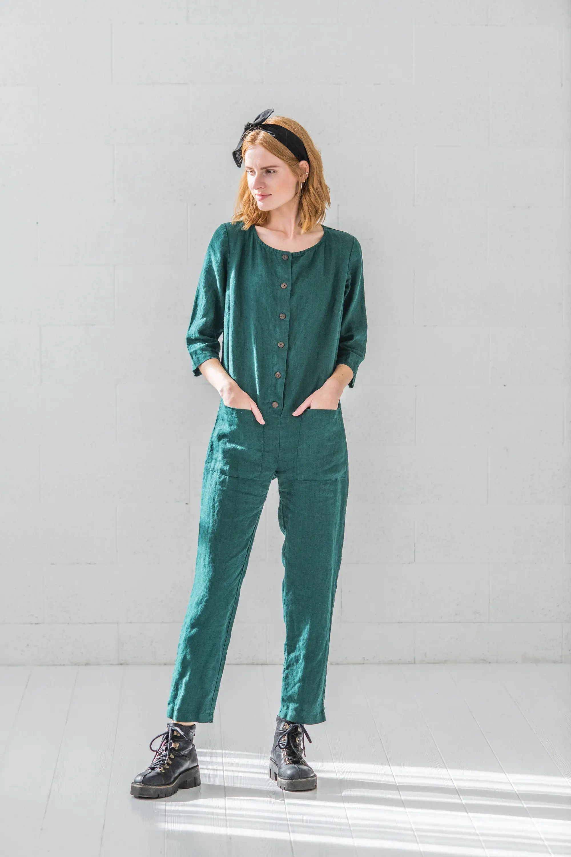 Women's Casual Linen Jumpsuit Romper Summer Overalls Wide Leg Natural Waistline Petite Sizes Sweet Plain Dyed Maxi O-Neck